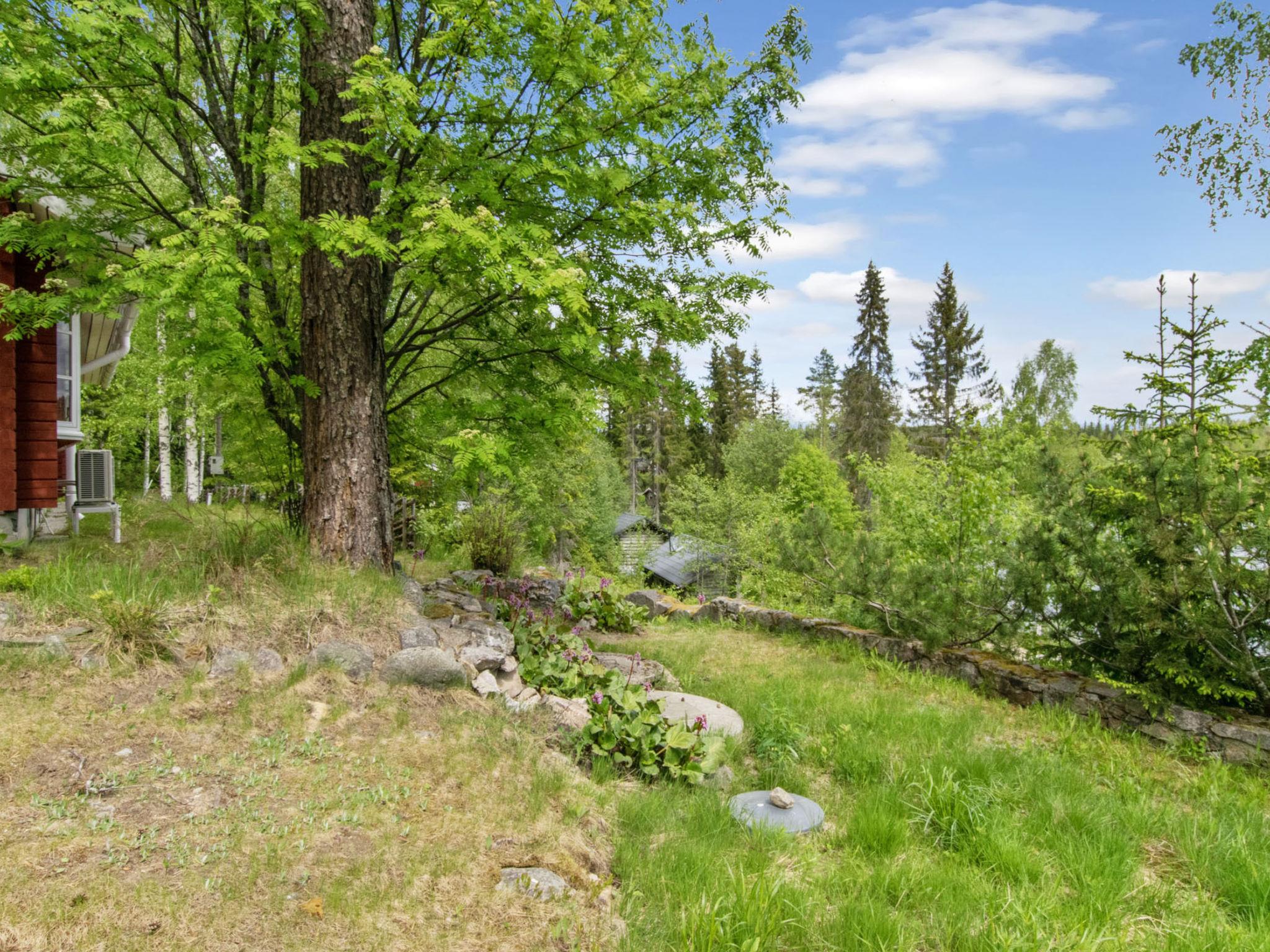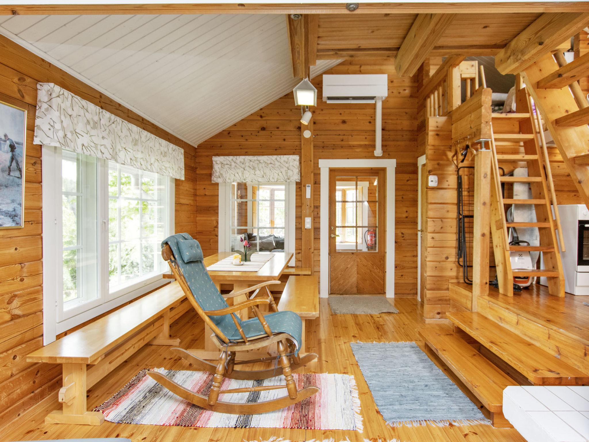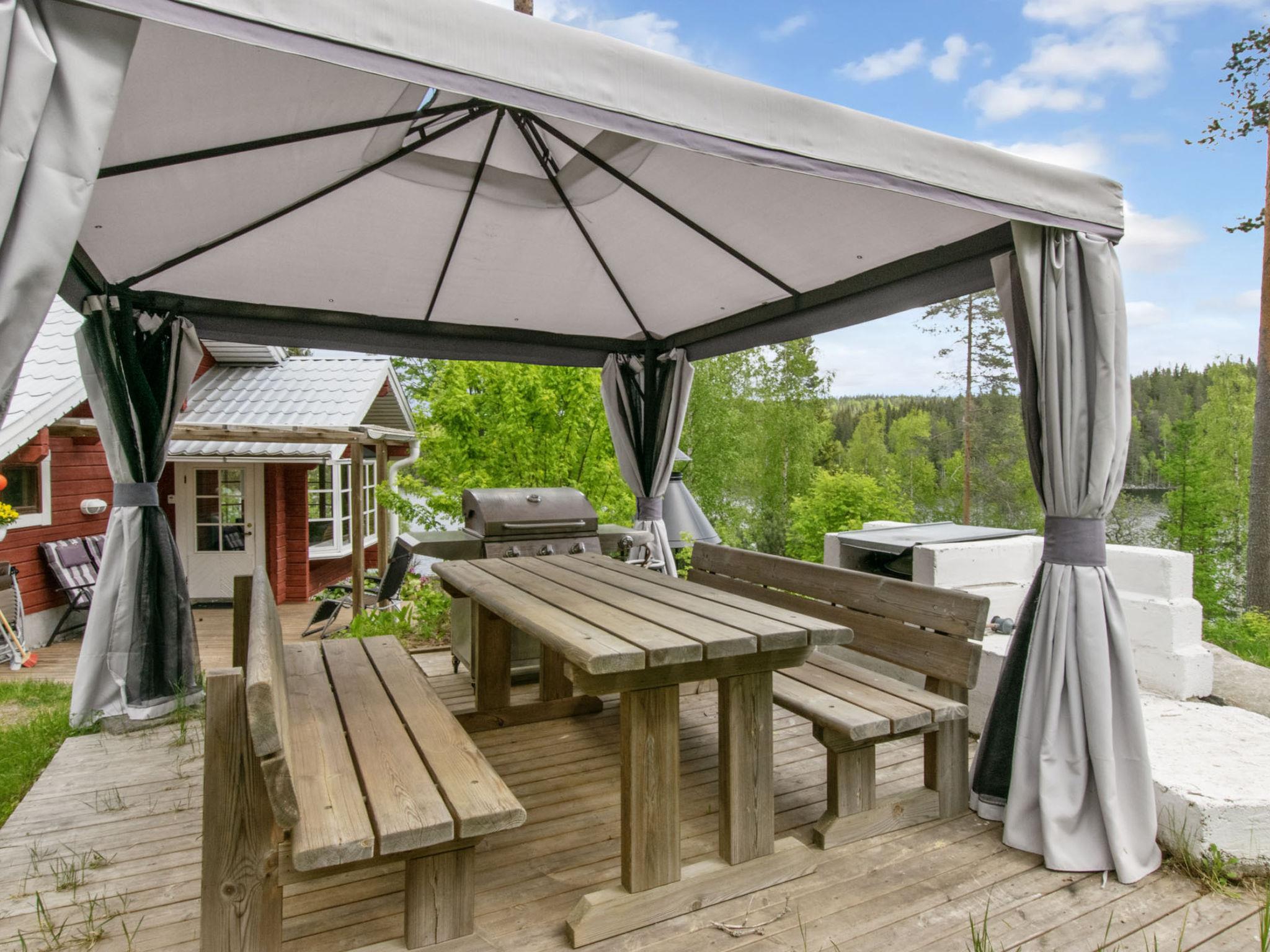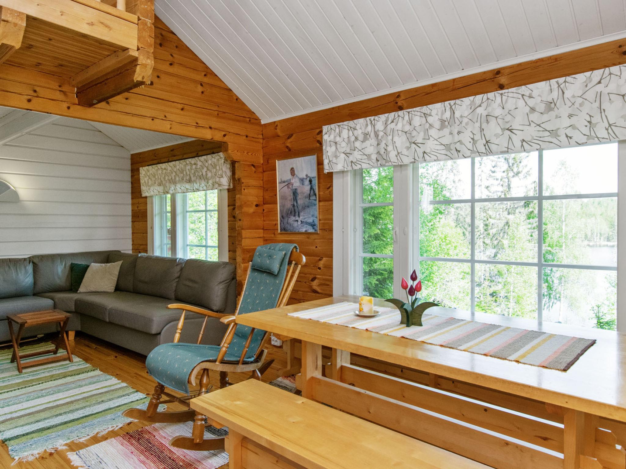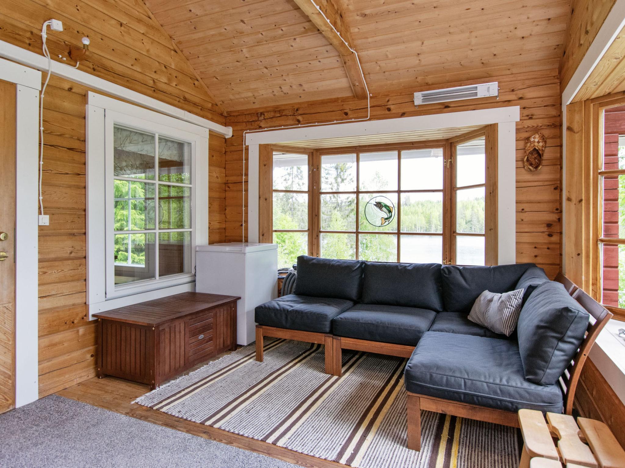 80 km southwest of Joensuu, Lake Pölläkkäjärvi 35 m (1,9 km²), shallow sanded mud and partly rocky bottom, own beach, rowing boat and jetty. Log cottage 1991, living room, kitchen, bedroom with double bed, sleeping gallery (9 m²) with 2 beds, sleeping gallery (4 m²) with 2 beds, bathroom, sauna (elec. stove), terrace. Own separate sauna building (10 m²) with wood heated stove (smoke sauna oven not in use), in sauna building a room with 2 beds, electricity and water supply.