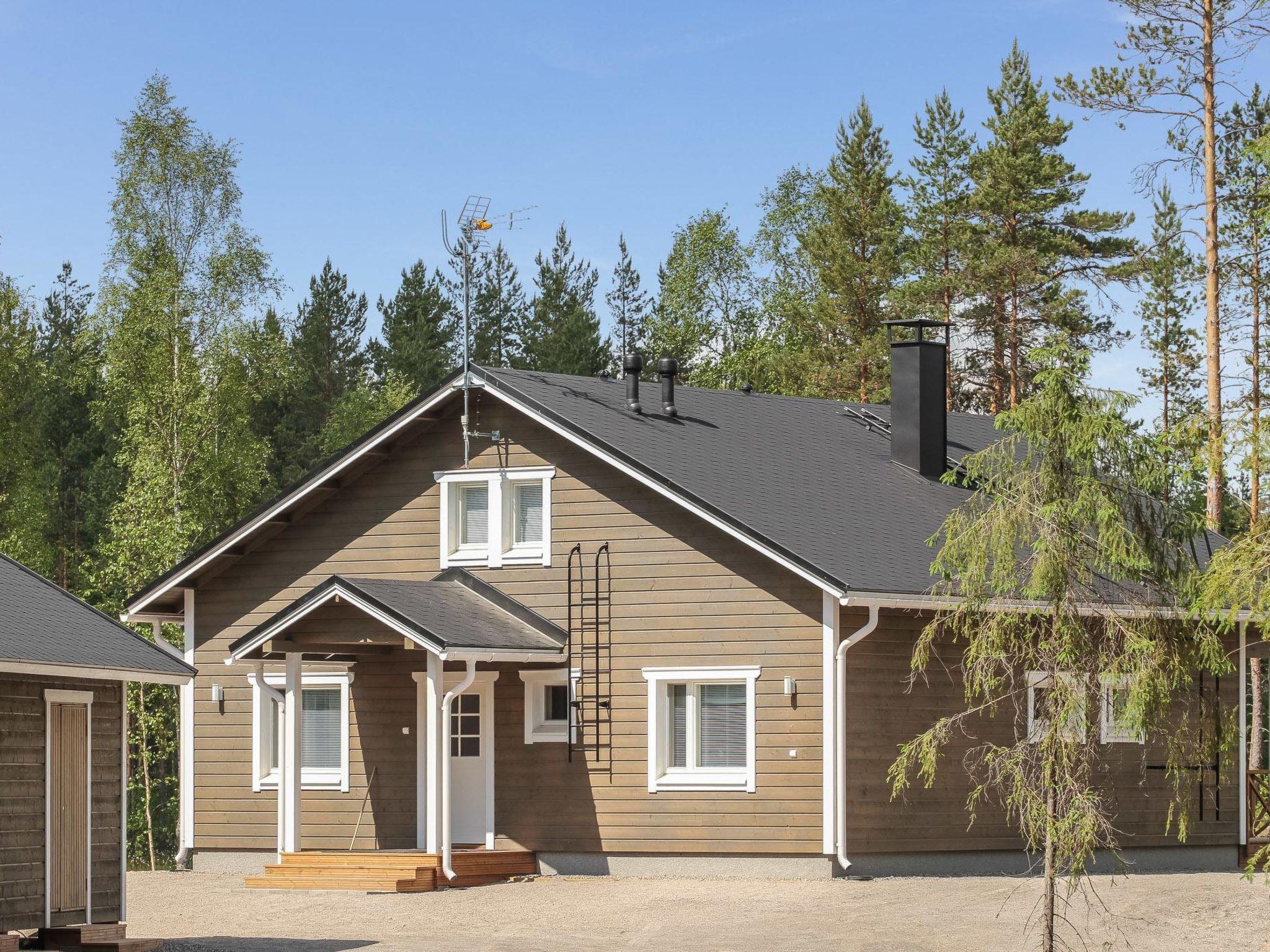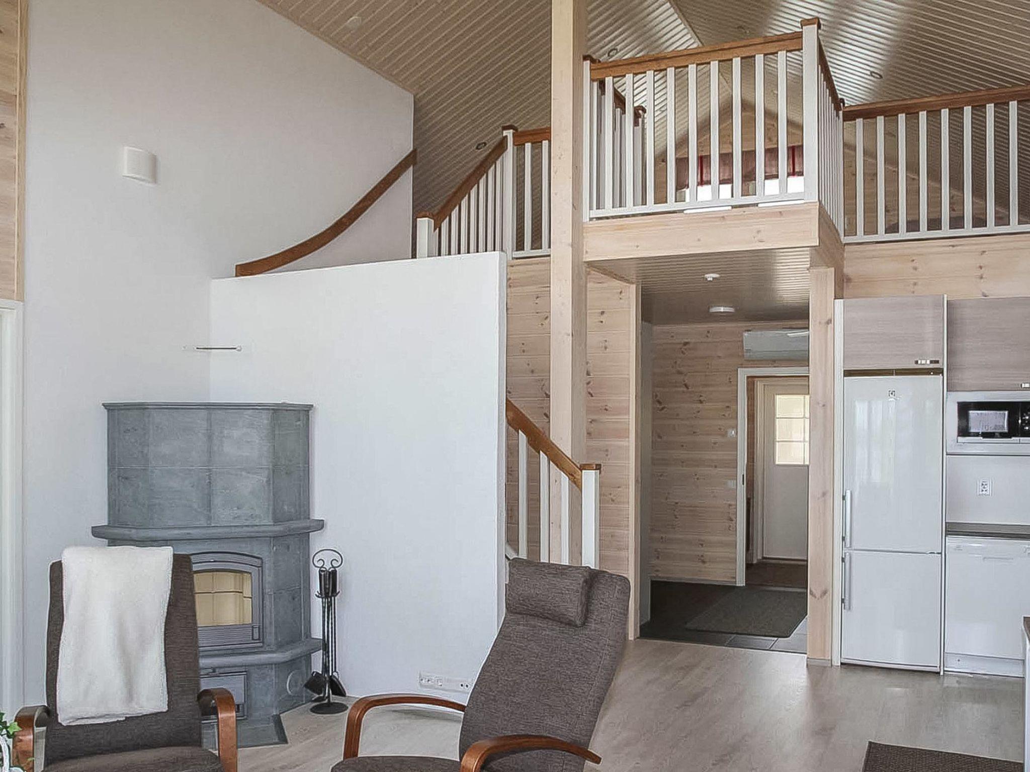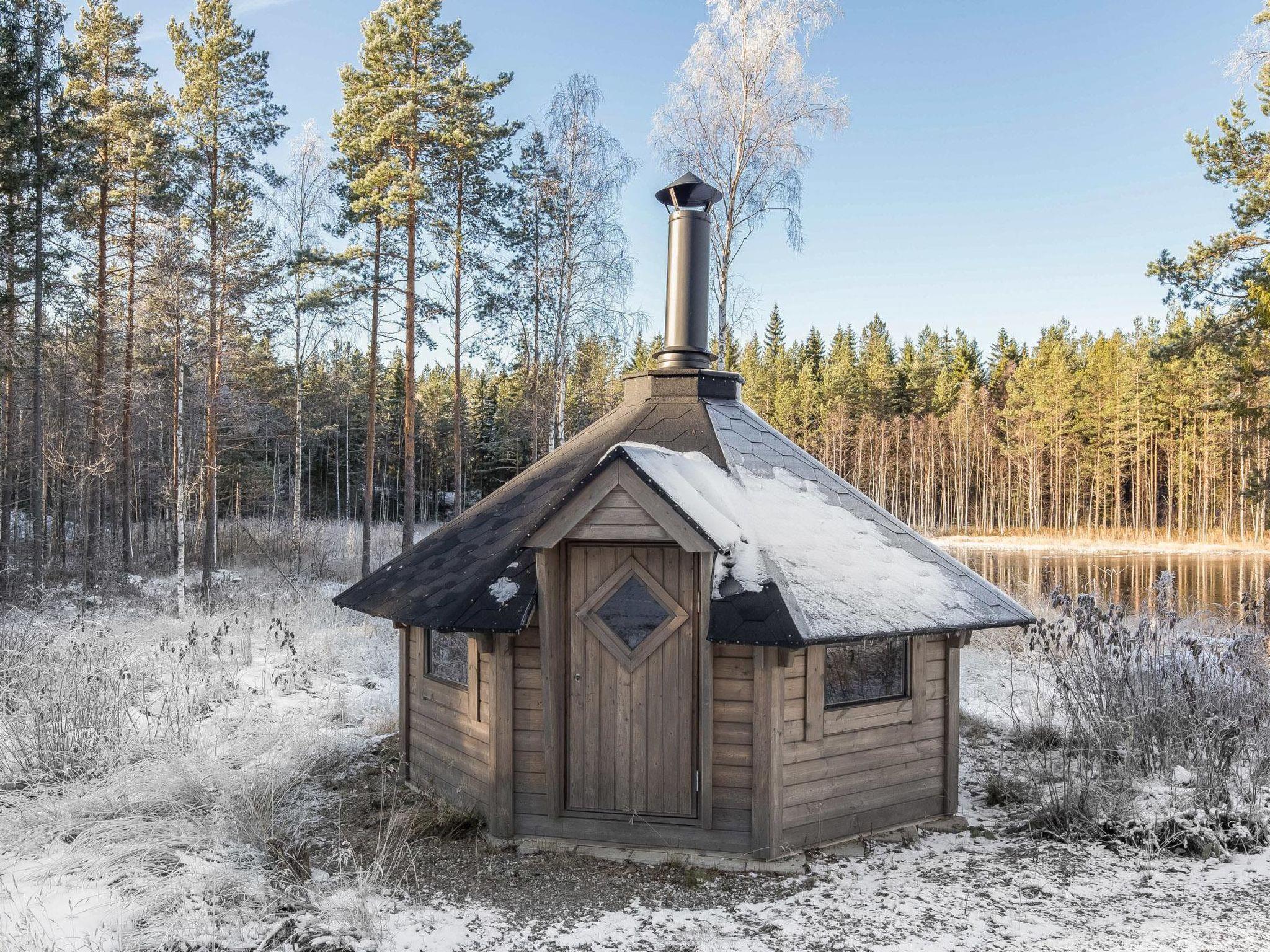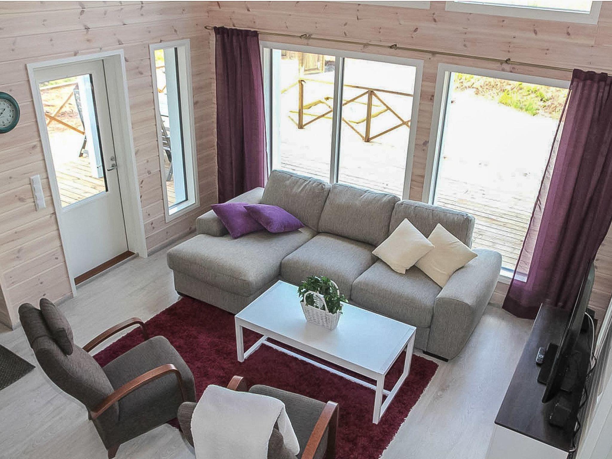 Wooden cabin 2014, living room/kitchen, bedroom (12 m²) two beds, bedroom (10 m²) two beds, sleeping loft (20 m², floor area approx. 40 m²) four beds, dressing room, washroom, sauna, separate WC.