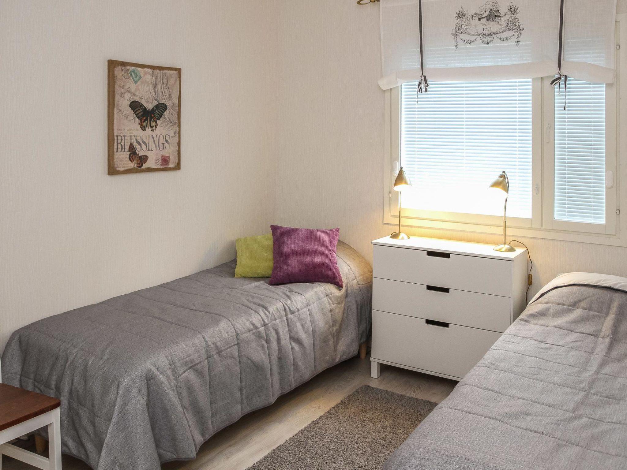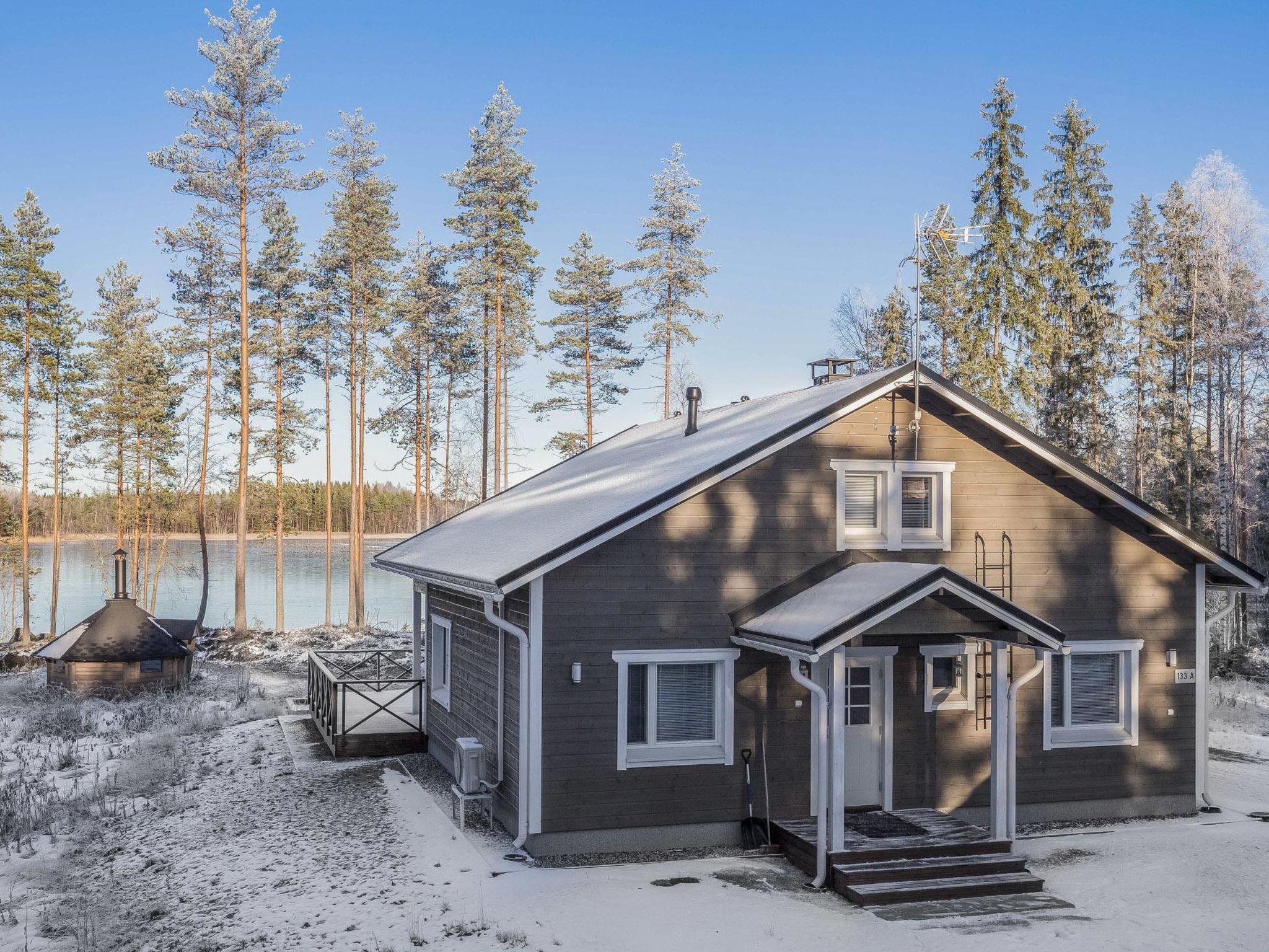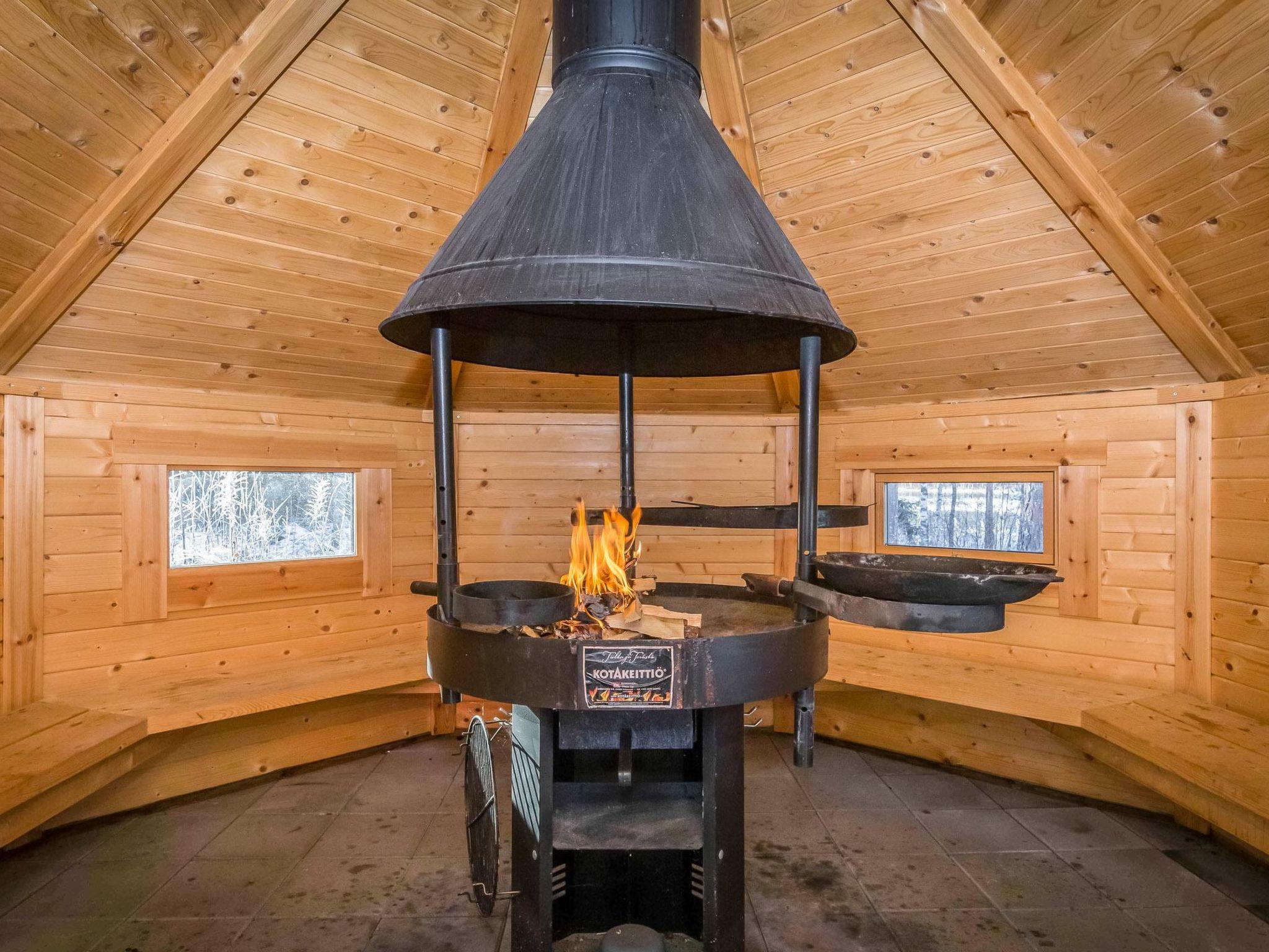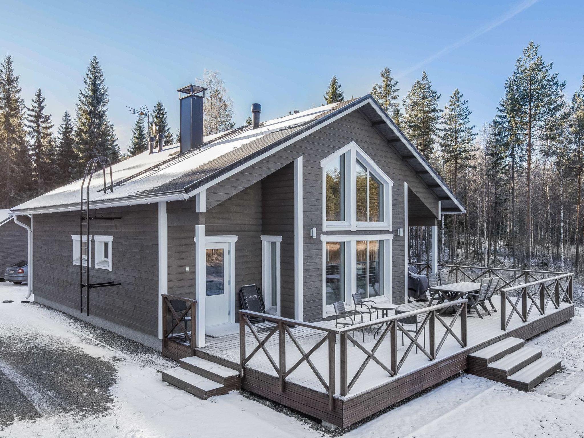 Wooden cabin 2014, living room/kitchen, bedroom (12 m²) two beds, bedroom (10 m²) two beds, sleeping loft (20 m², floor area approx. 40 m²) four beds, dressing room, washroom, sauna, separate WC.