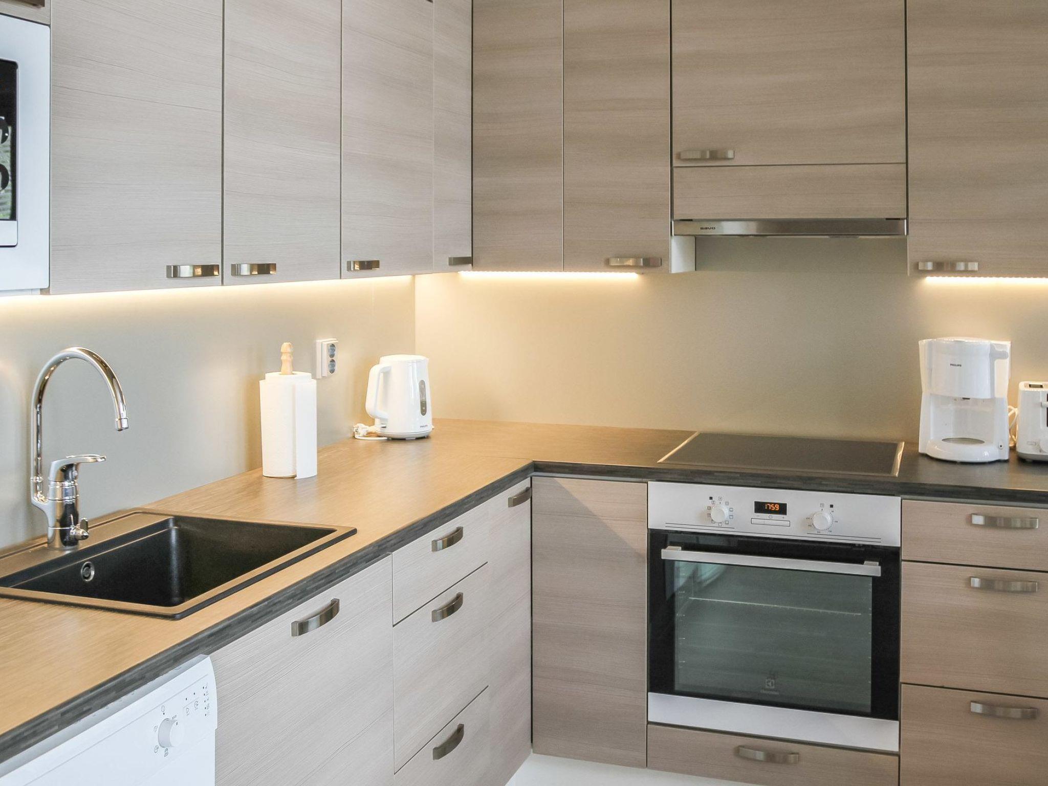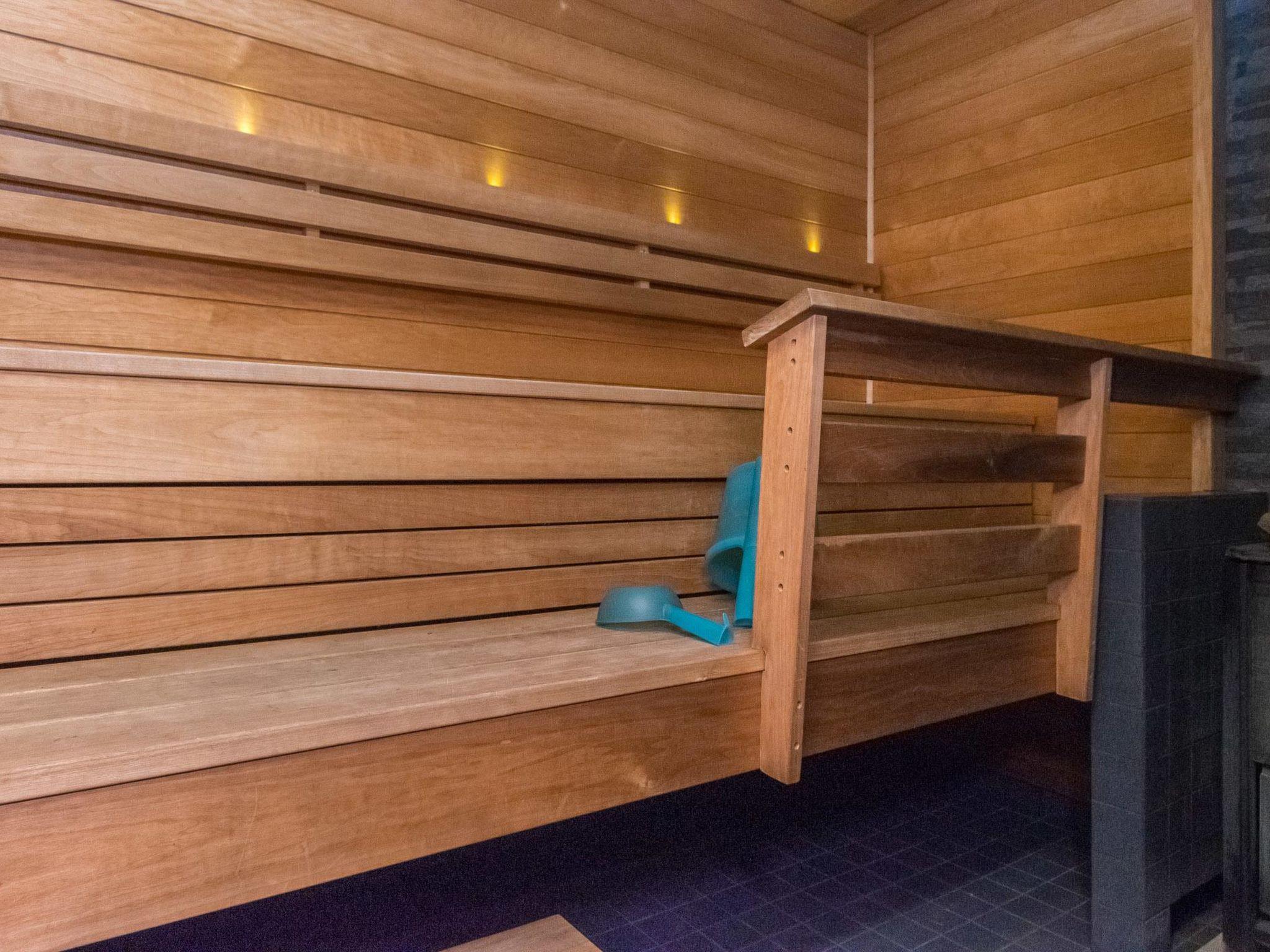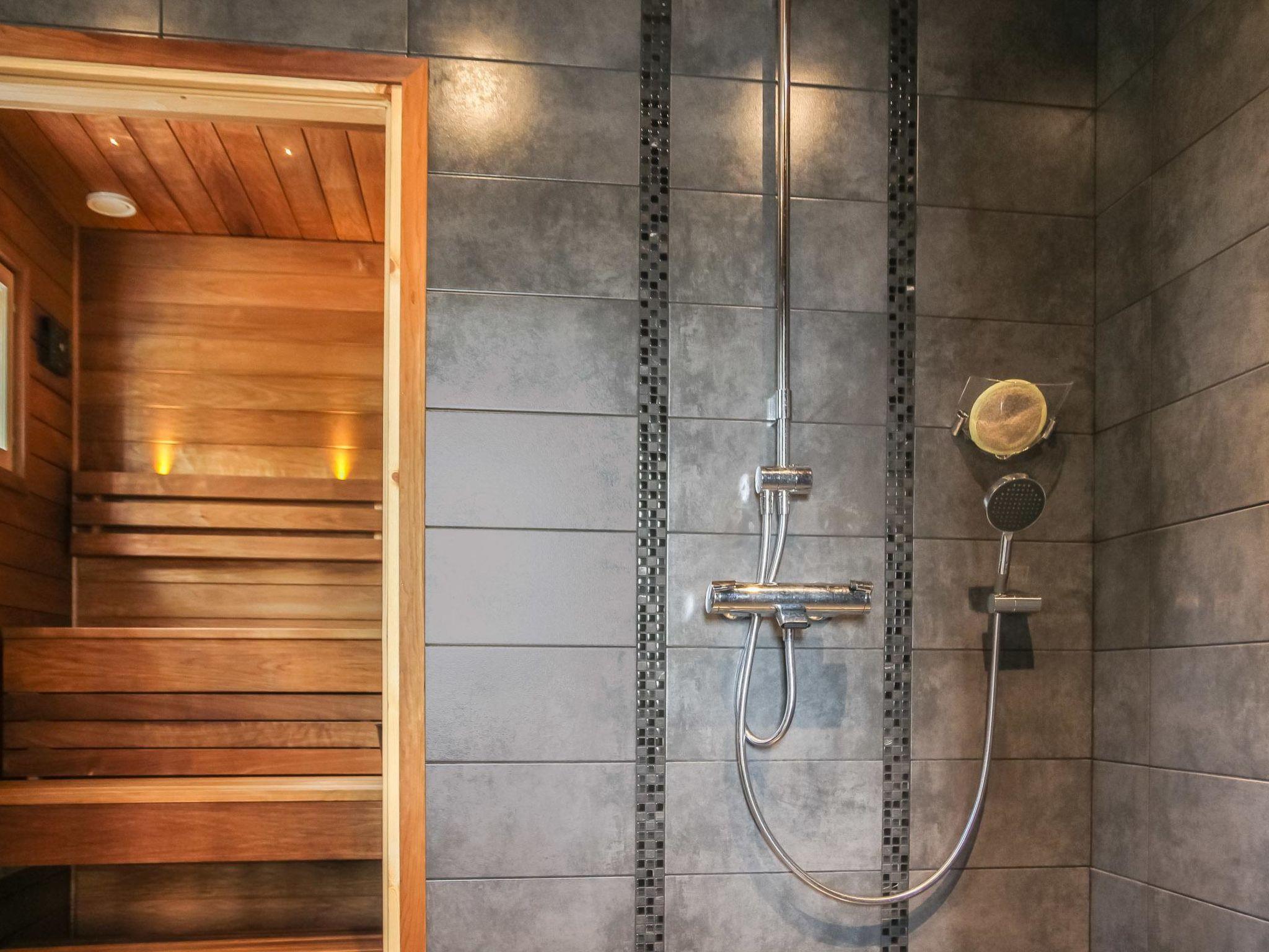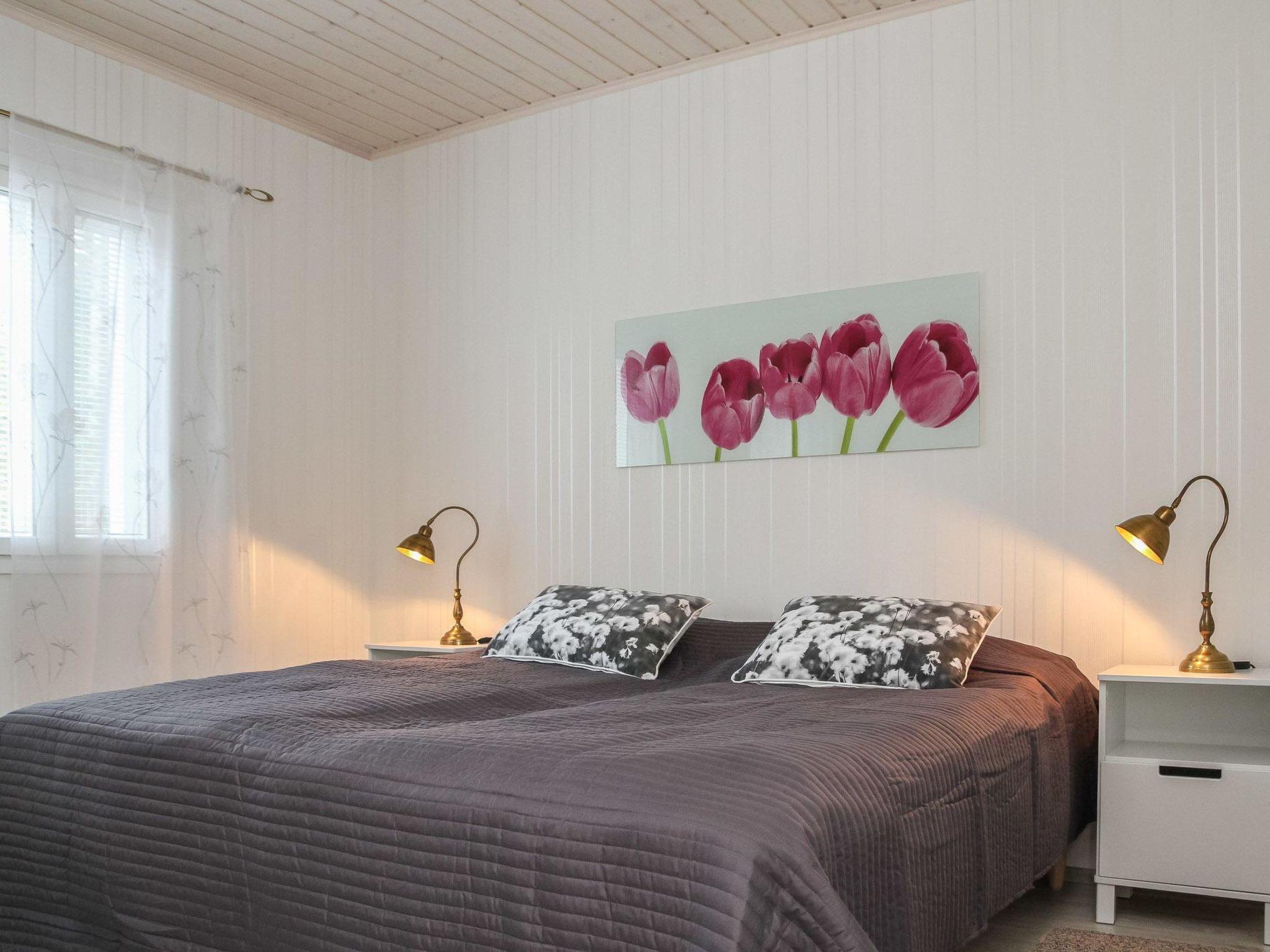 Wooden cabin 2014, living room/kitchen, bedroom (12 m²) two beds, bedroom (10 m²) two beds, sleeping loft (20 m², floor area approx. 40 m²) four beds, dressing room, washroom, sauna, separate WC.