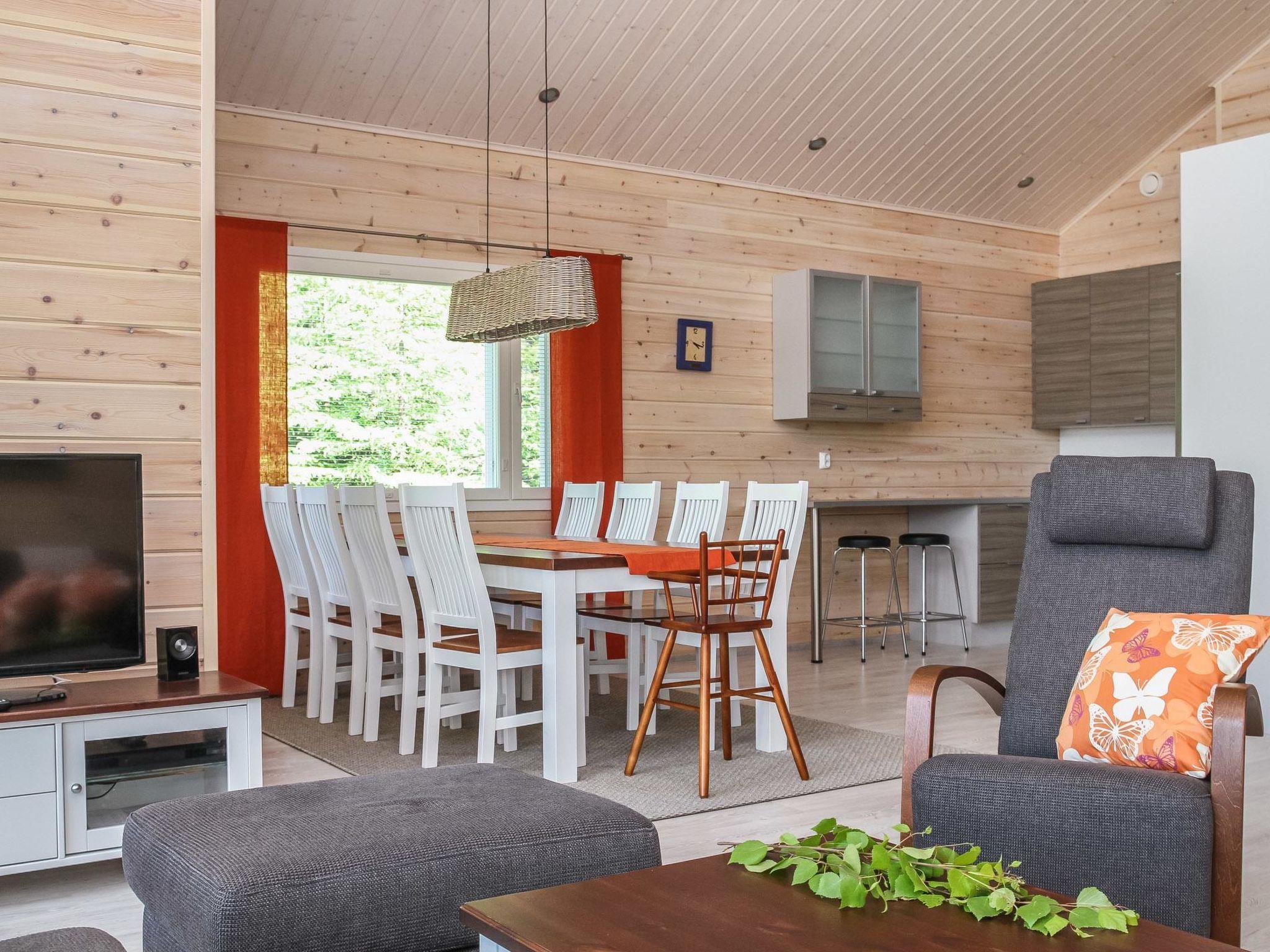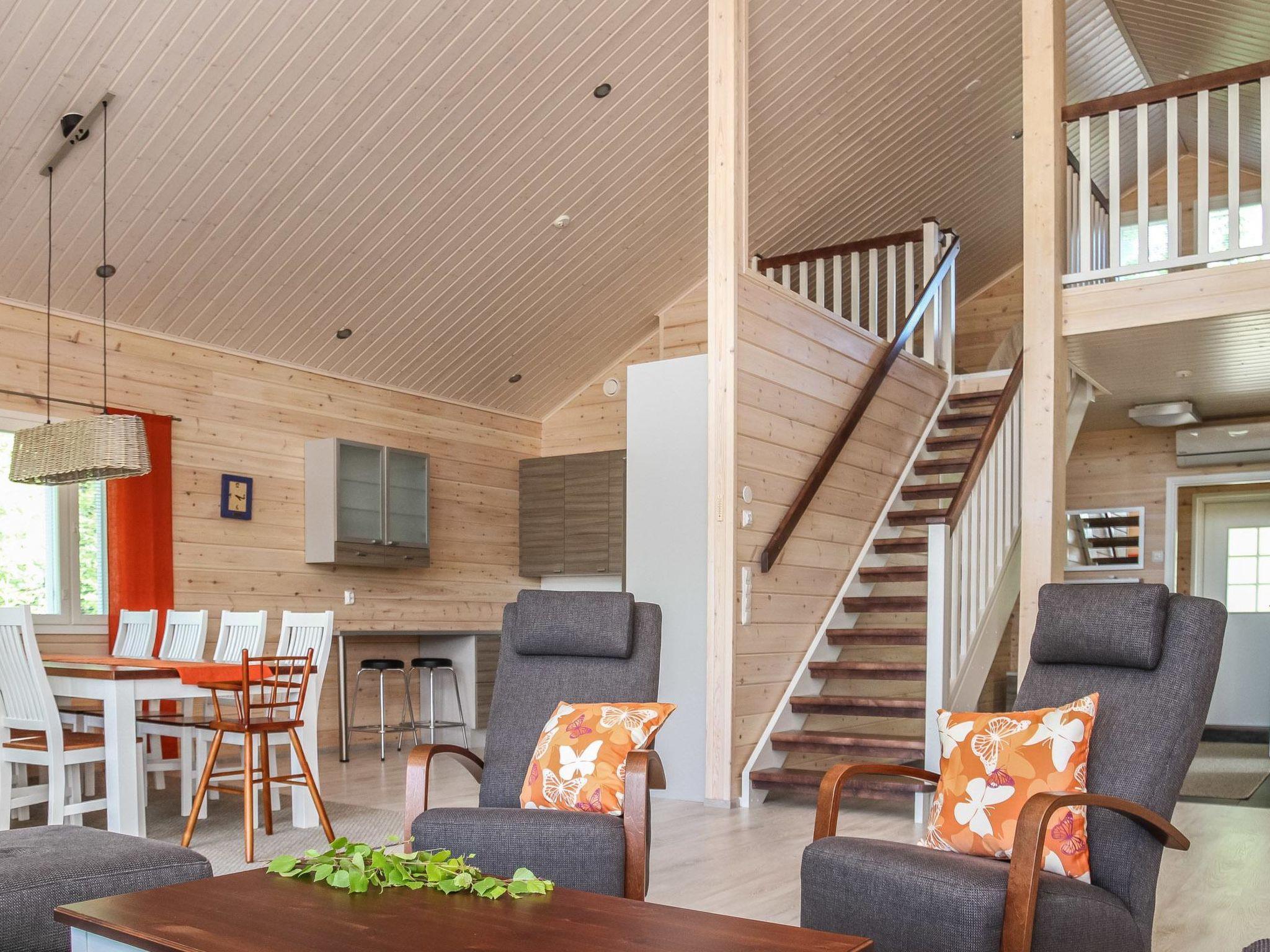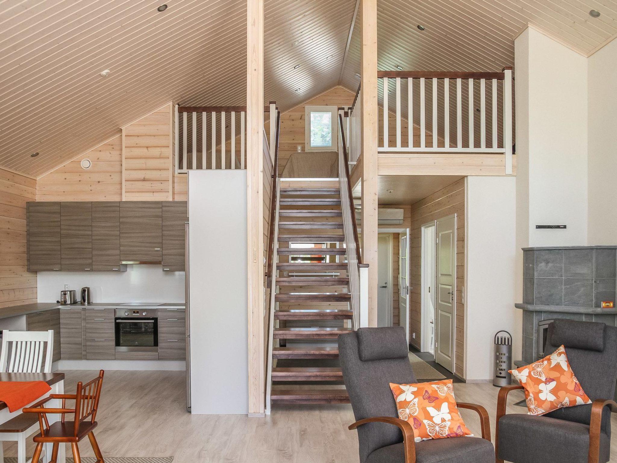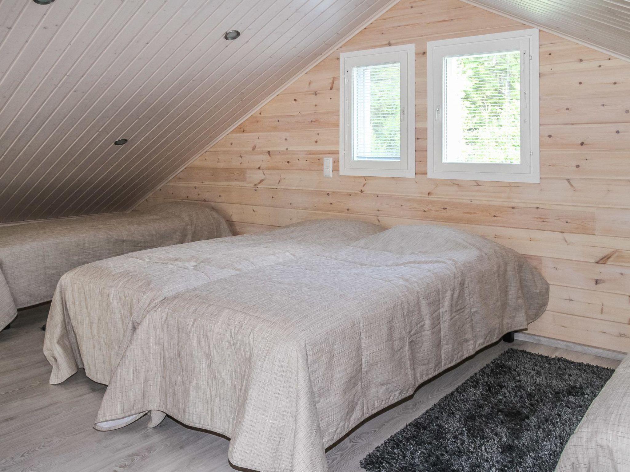 Wooden cabin 2013, living room/kitchen, bedroom (10 m²) two beds, bedroom (10 m²) two beds, sleeping loft (18 m², floor area approx. 40 m²) four beds, dressing room, washroom, sauna, separate WC.
