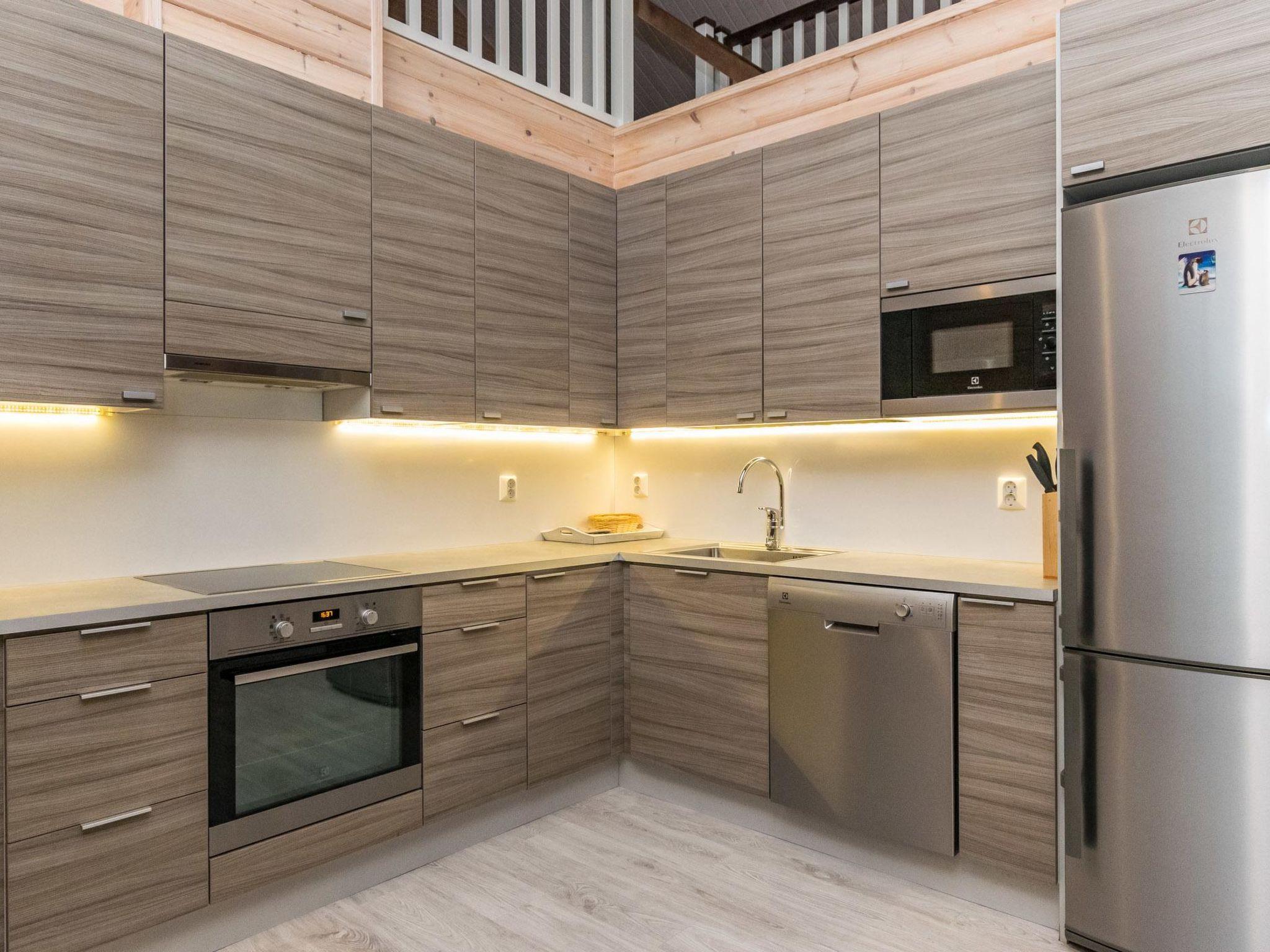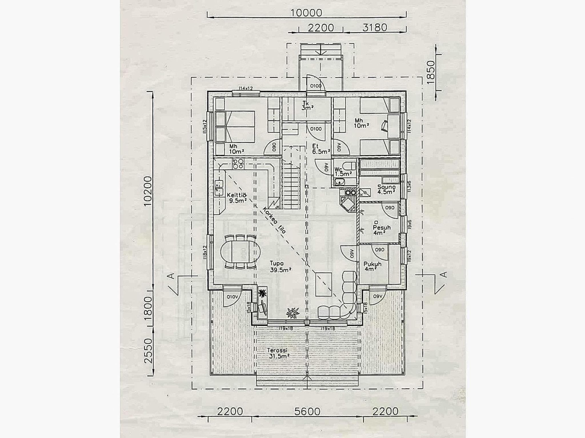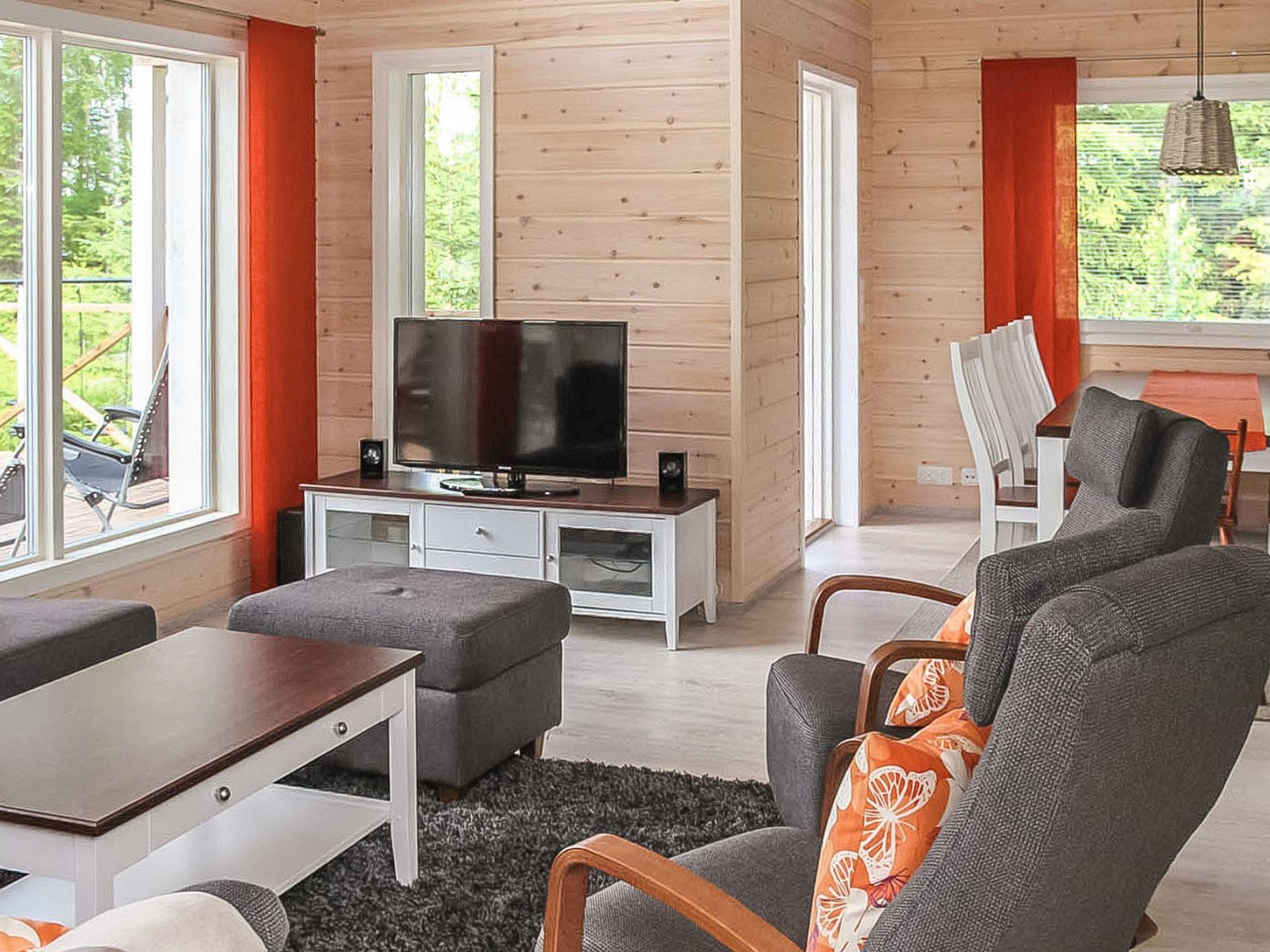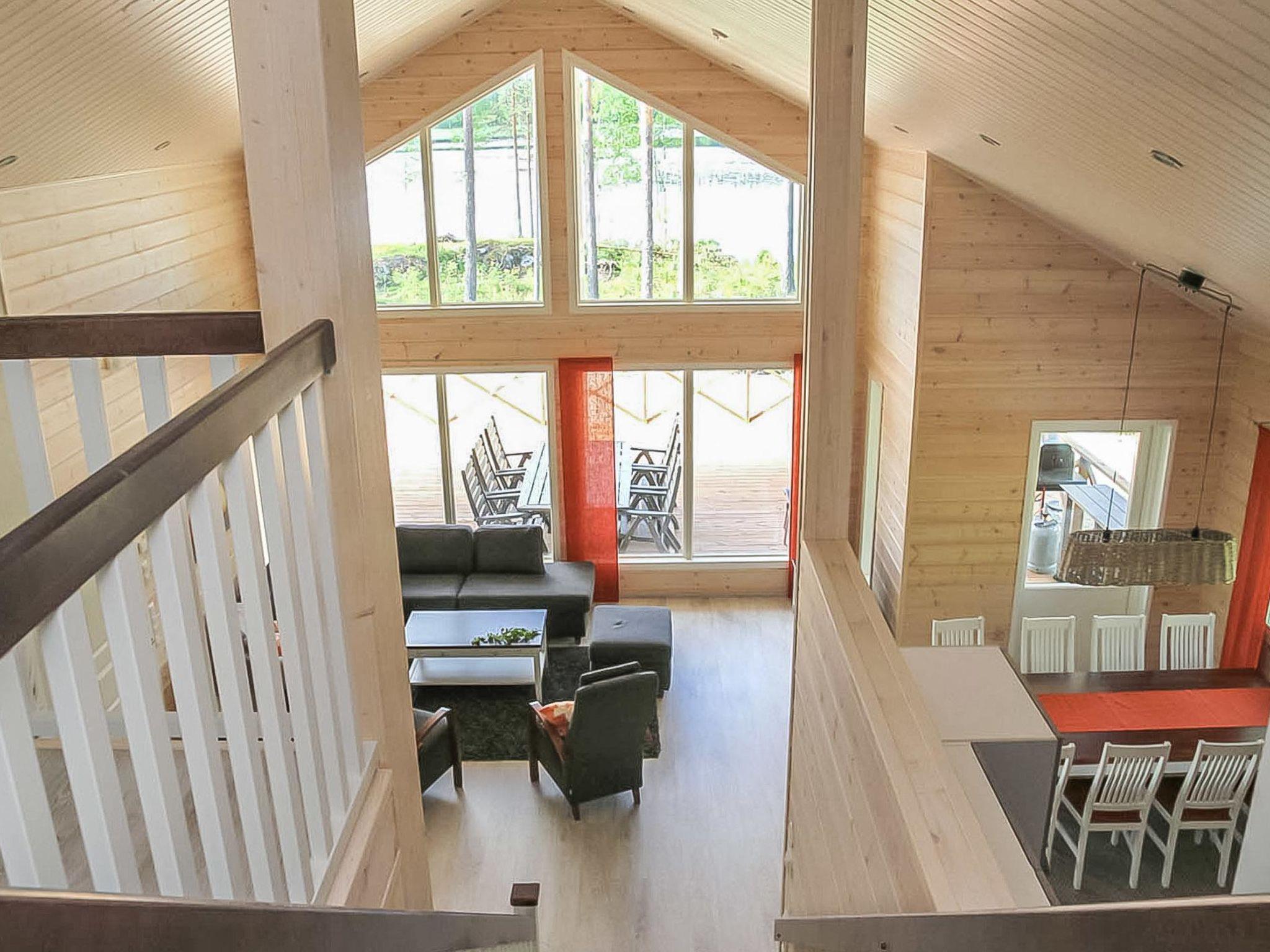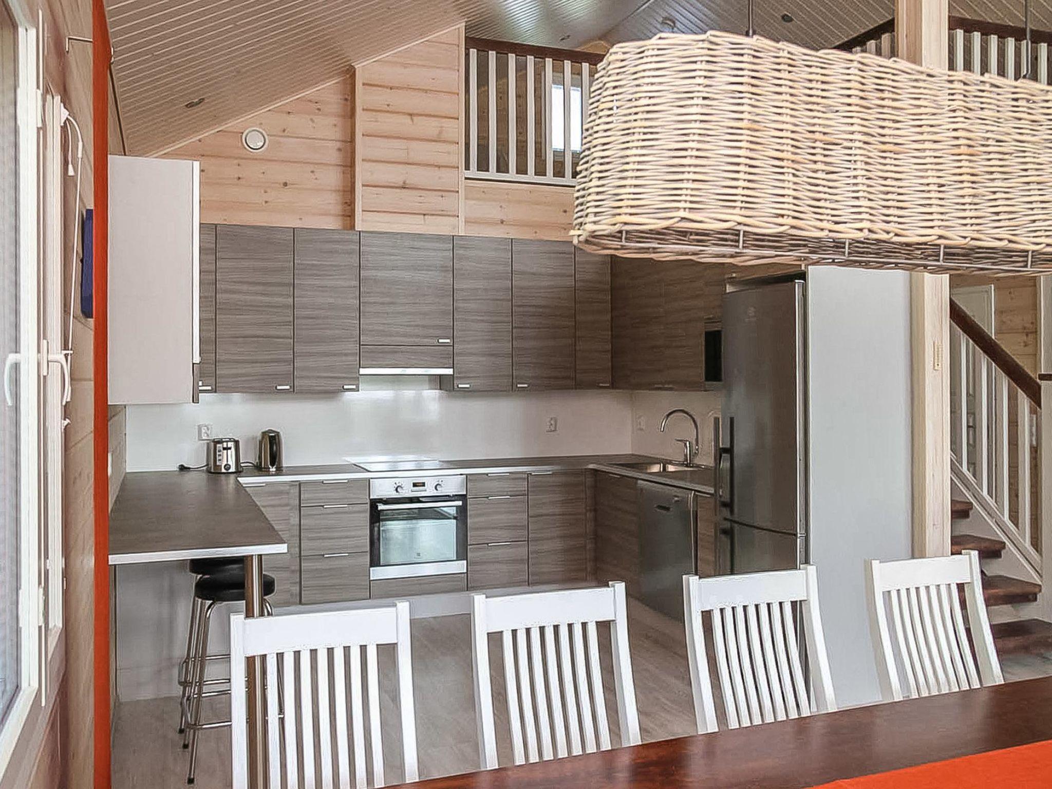 Wooden cabin 2013, living room/kitchen, bedroom (10 m²) two beds, bedroom (10 m²) two beds, sleeping loft (18 m², floor area approx. 40 m²) four beds, dressing room, washroom, sauna, separate WC.