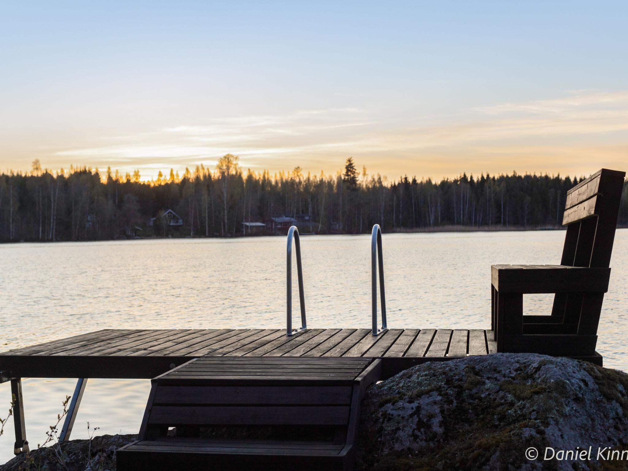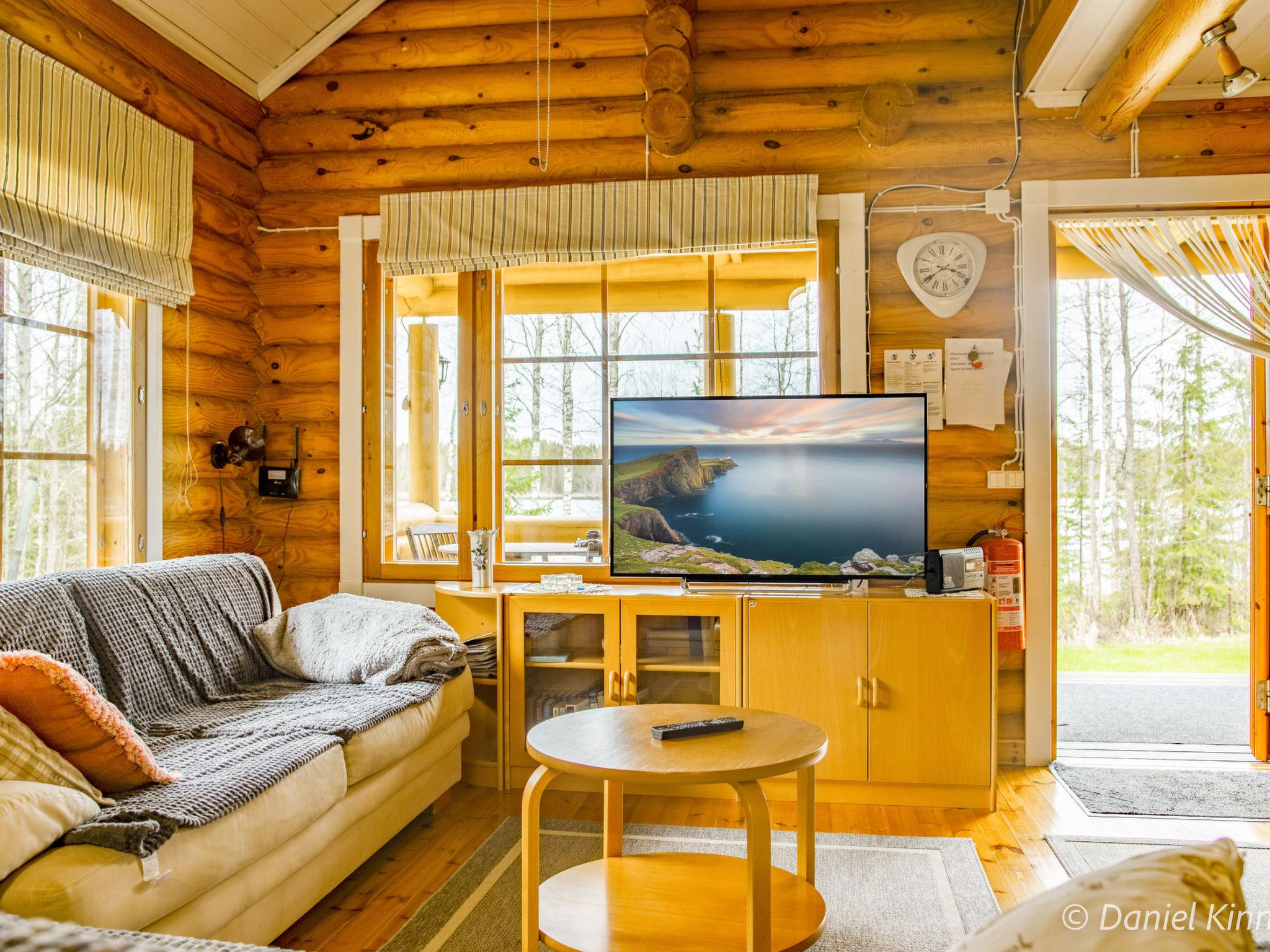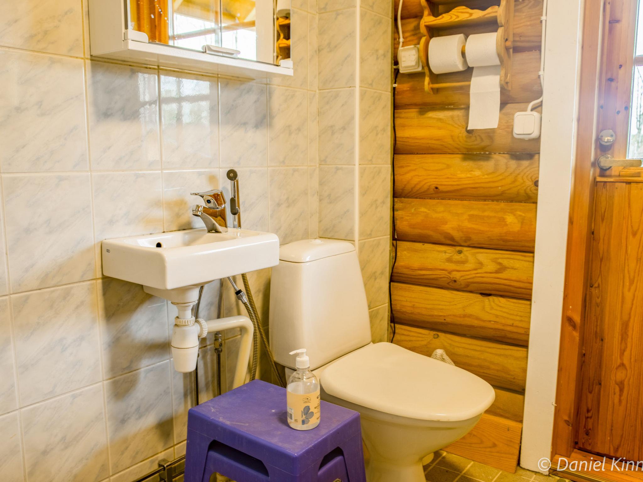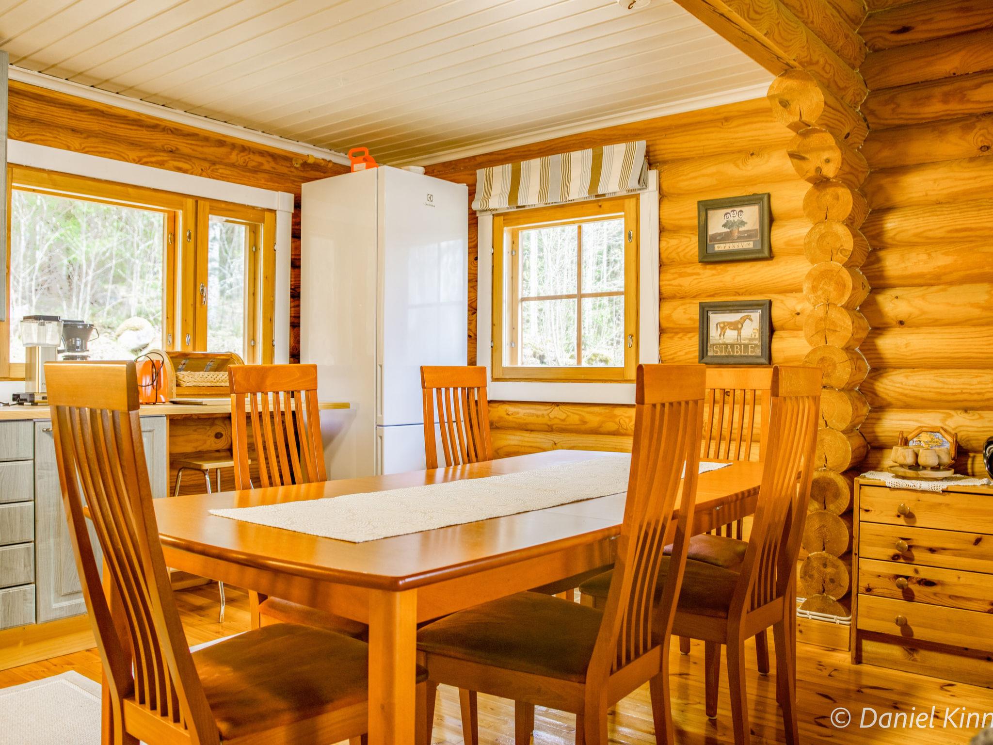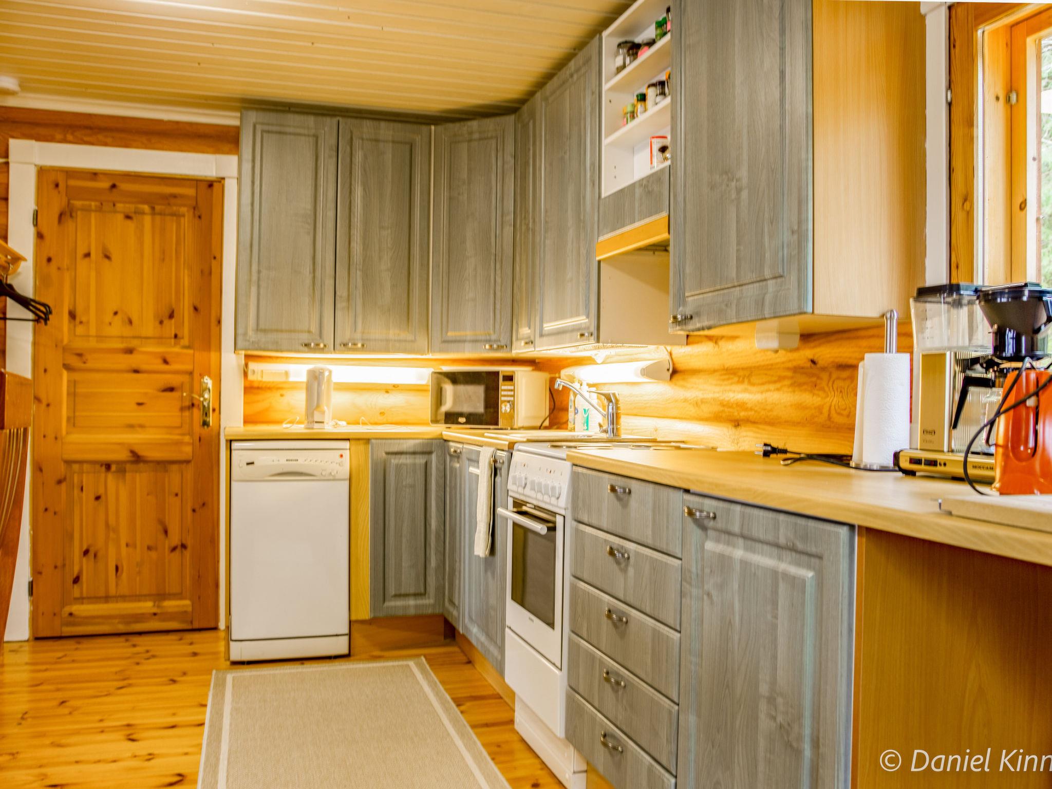 Log cottage 2003, living room/kitchen, alcove double bed (width 140 cm), sleeping loft double bed (width 140 cm), single bed (width 90 cm) and sofa bed (area 18 m², sloping ceilings, highest point 2 m, steep stairs to sleeping loft), dressing room, sauna, open porch and balcony. Access to sauna through porch.