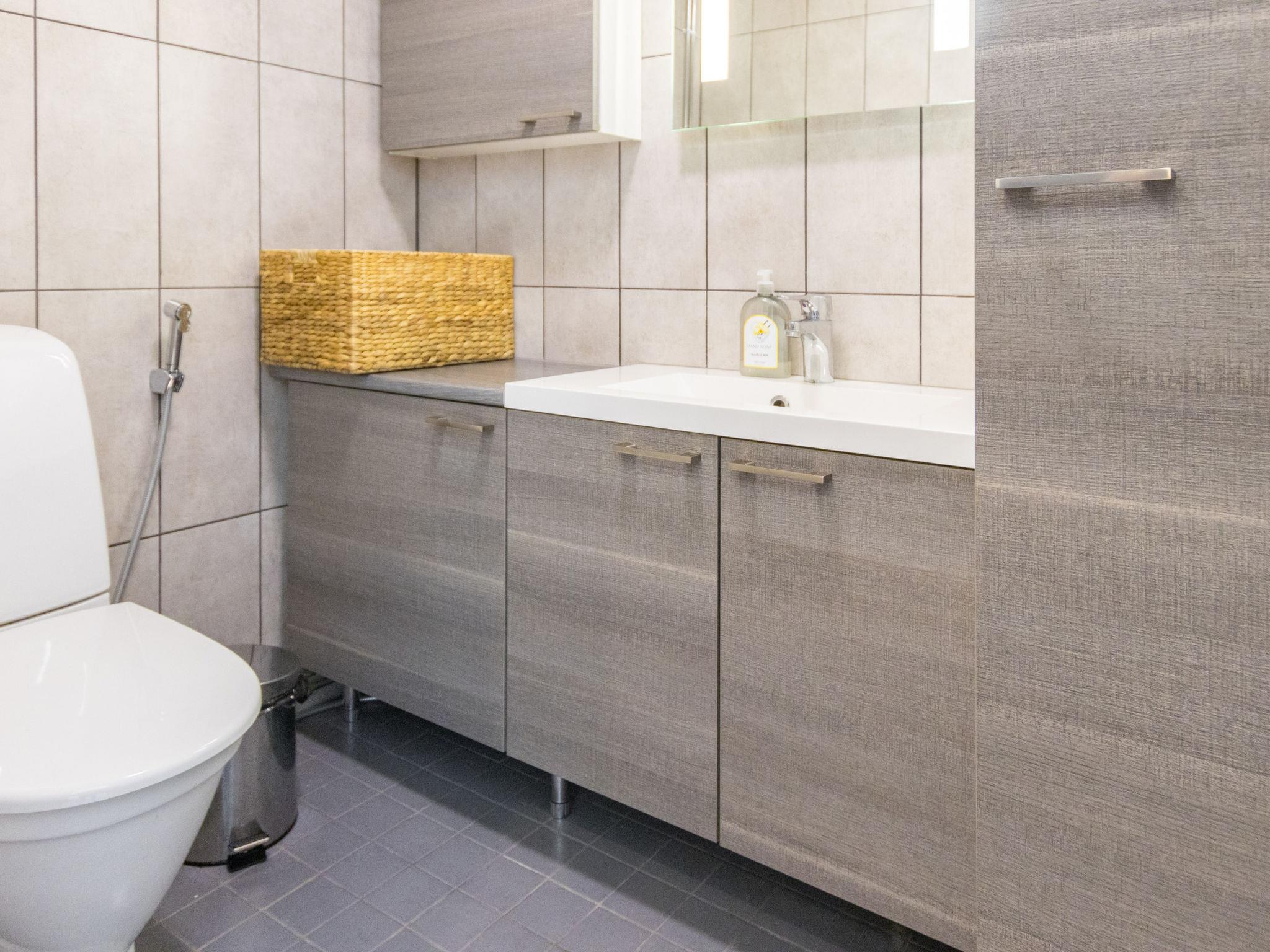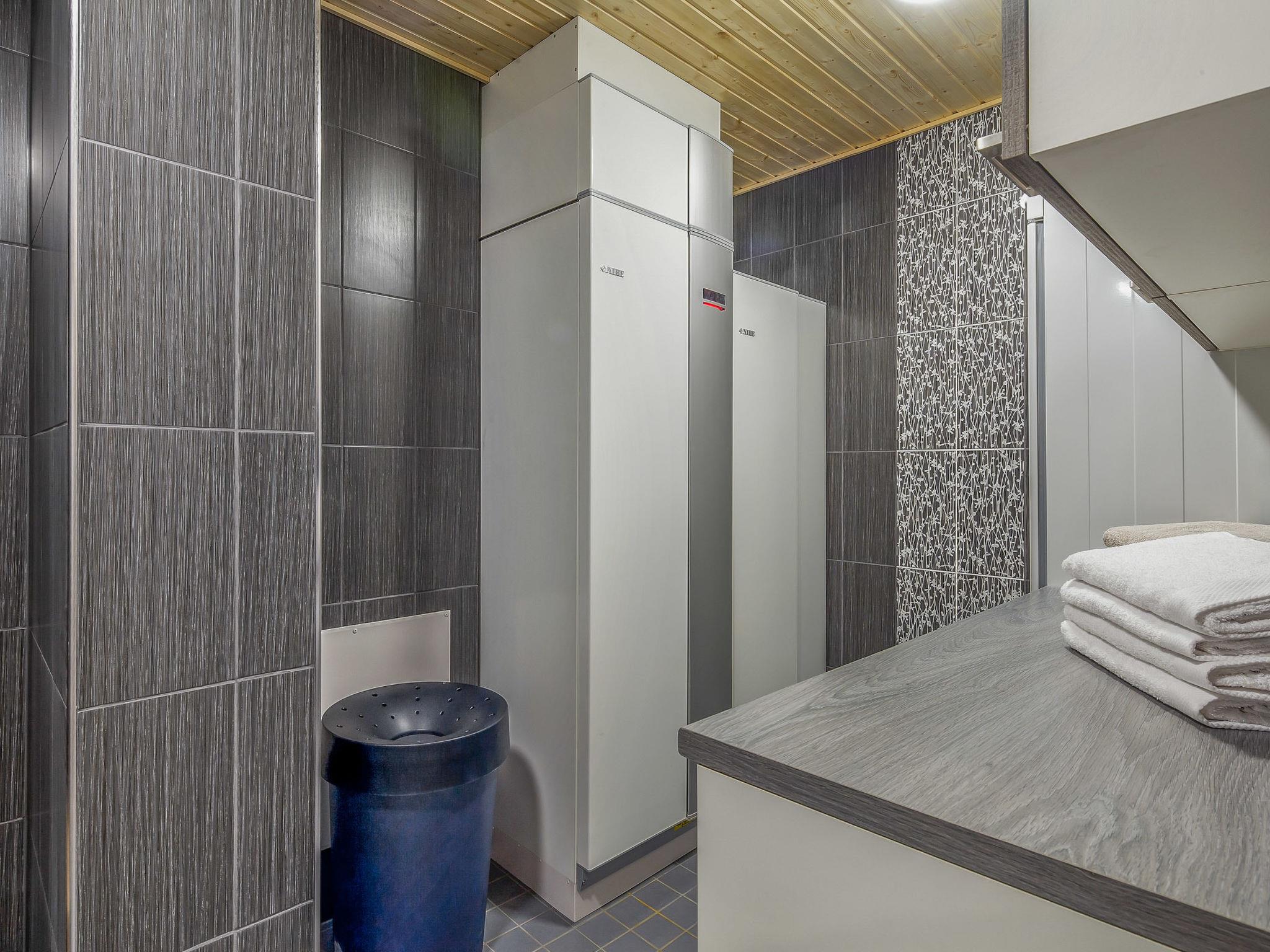 2-storey villa built of stone and log in 2014, in upstairs there are combined livingroom-kitchen, bedroom with double bed, bedroom with bunk bed (lower bed 120 cm, upper bed 80 cm) and bathroom with shower and toilet. In downstairs there are bedroom with 2 beds, livingroom, utility room, bathroom (2 showers), electric sauna and separate toilet.