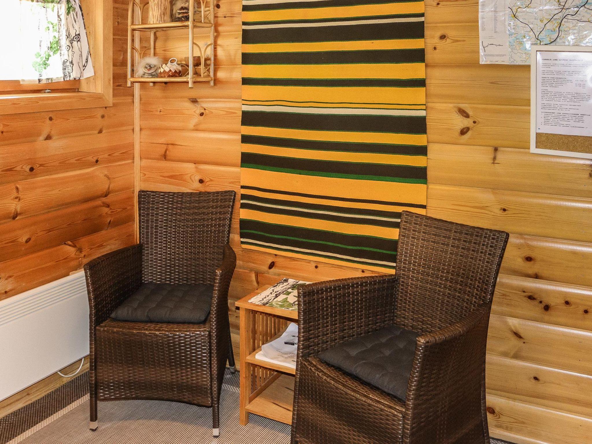 Combined kitchen-livingroom, 2 bedrooms, loft (steep stairs), sauna, shower room, separate toilet downstairs (steep stairs), dressing room, balcony, terrace, vestibule, storage, fireplace and firewood.