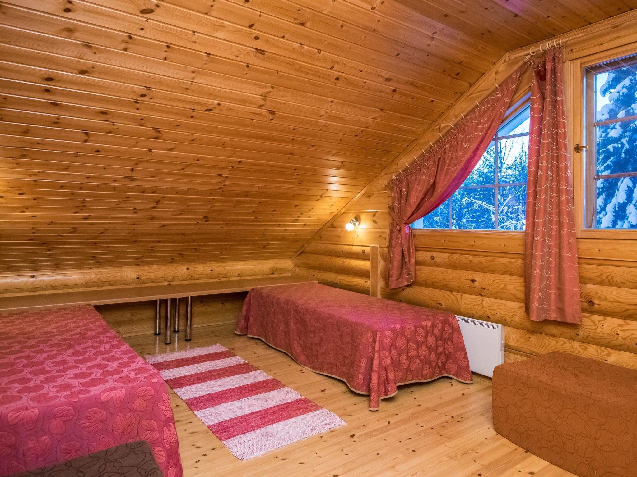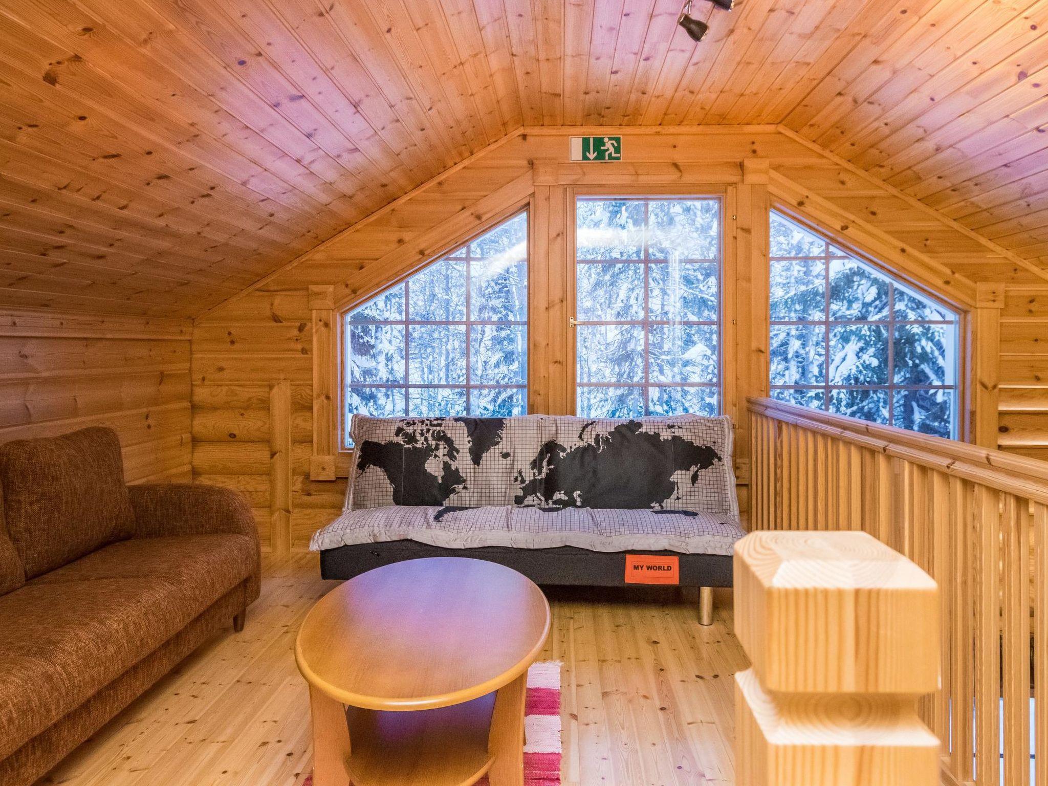 Cottage located in the Ukkohalla tourism centre, 6+ 2 persons, 114m², built in 2007, kitchen, 3 bedrooms (one on the loft), loft lobby, sauna, shower room/toilet and separate toilet upstairs, fireplace and firewood. 2 beds in the bedroom upstairs, a double bed in the other bedrooms.