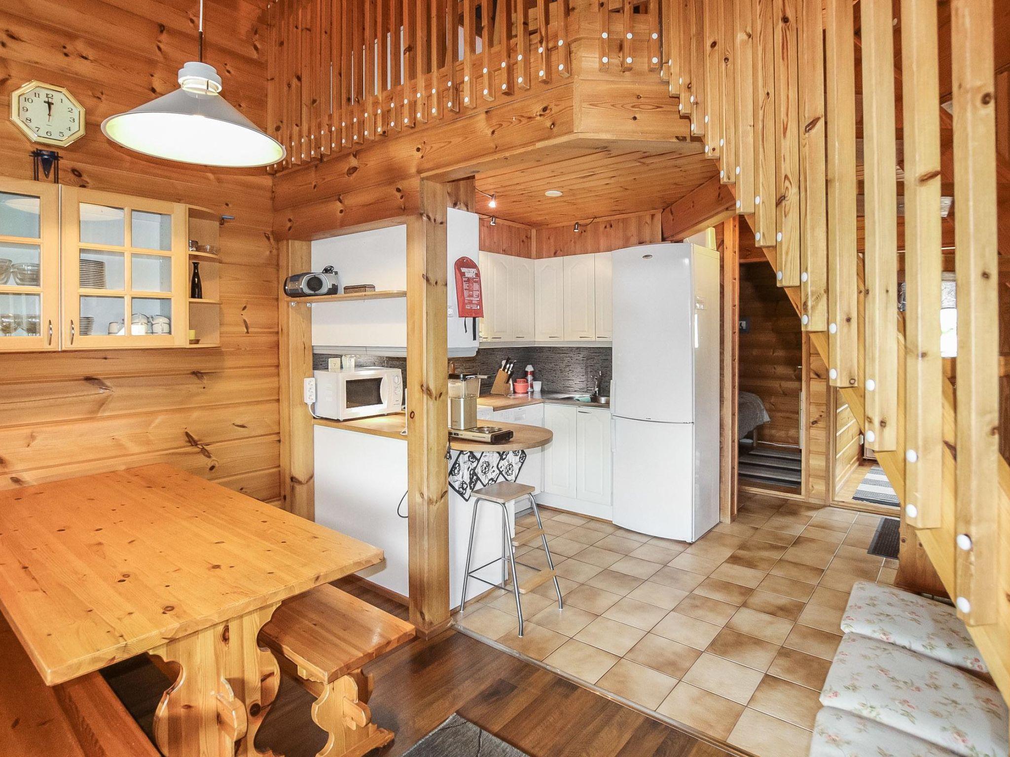 A semi-detached house located in the Ukkohalla tourism centre, 85m2 + loft 15m2, built in 1991, premises on 3 floors. Kitchen, 3 bedrooms, loft, sauna downstairs, shower room/toilet, dressing room, toilet, terrace, balcony, vestibule, fireplace and firewood. First floor; lounge area. Bed and bunk bed in the second floor bedrooms. a sofa-bed in living room. Double bed and bed in the third floor bedroom, an opening bed plus mattress on the loft, child safety gates on the second and third floor.