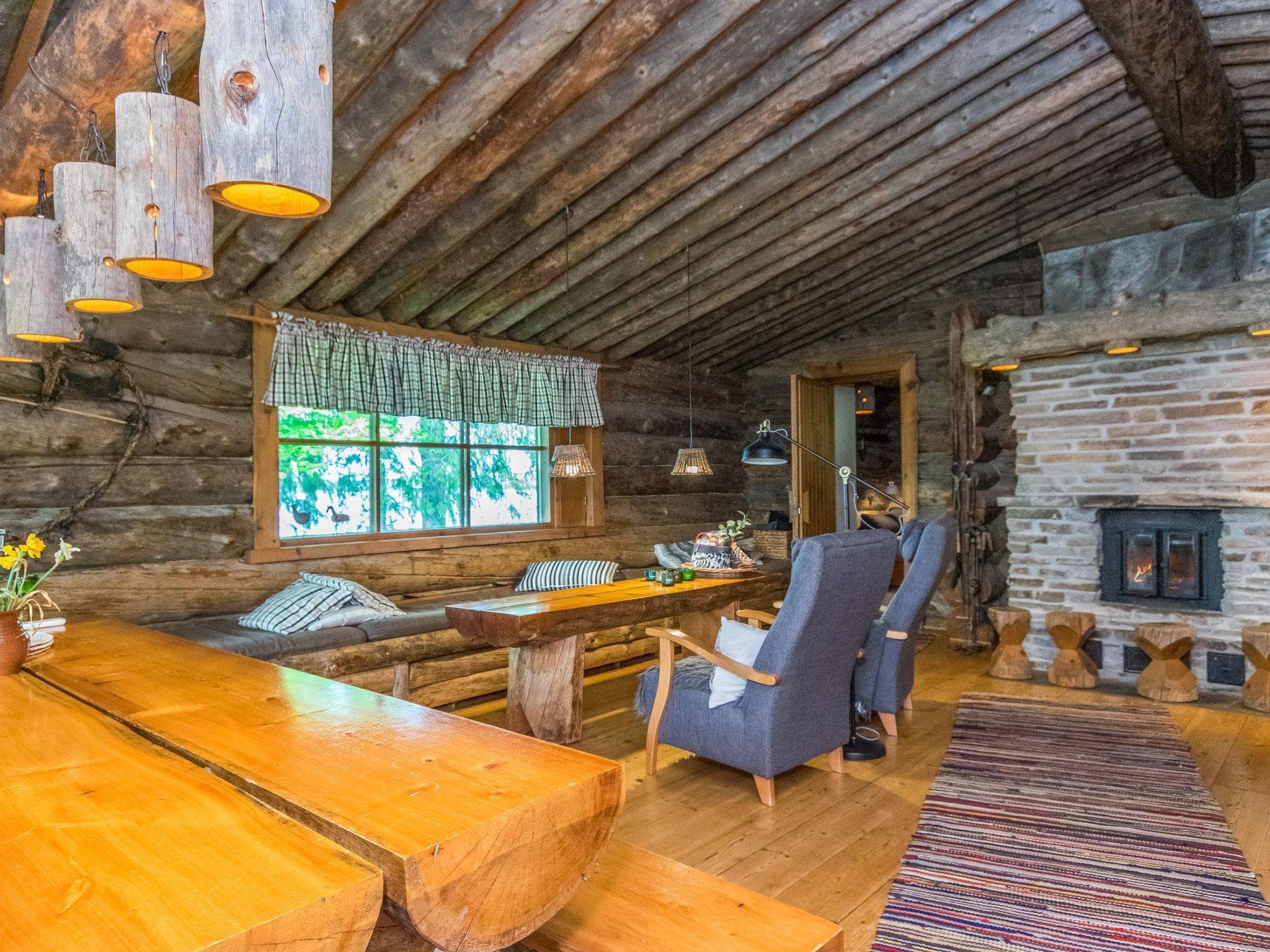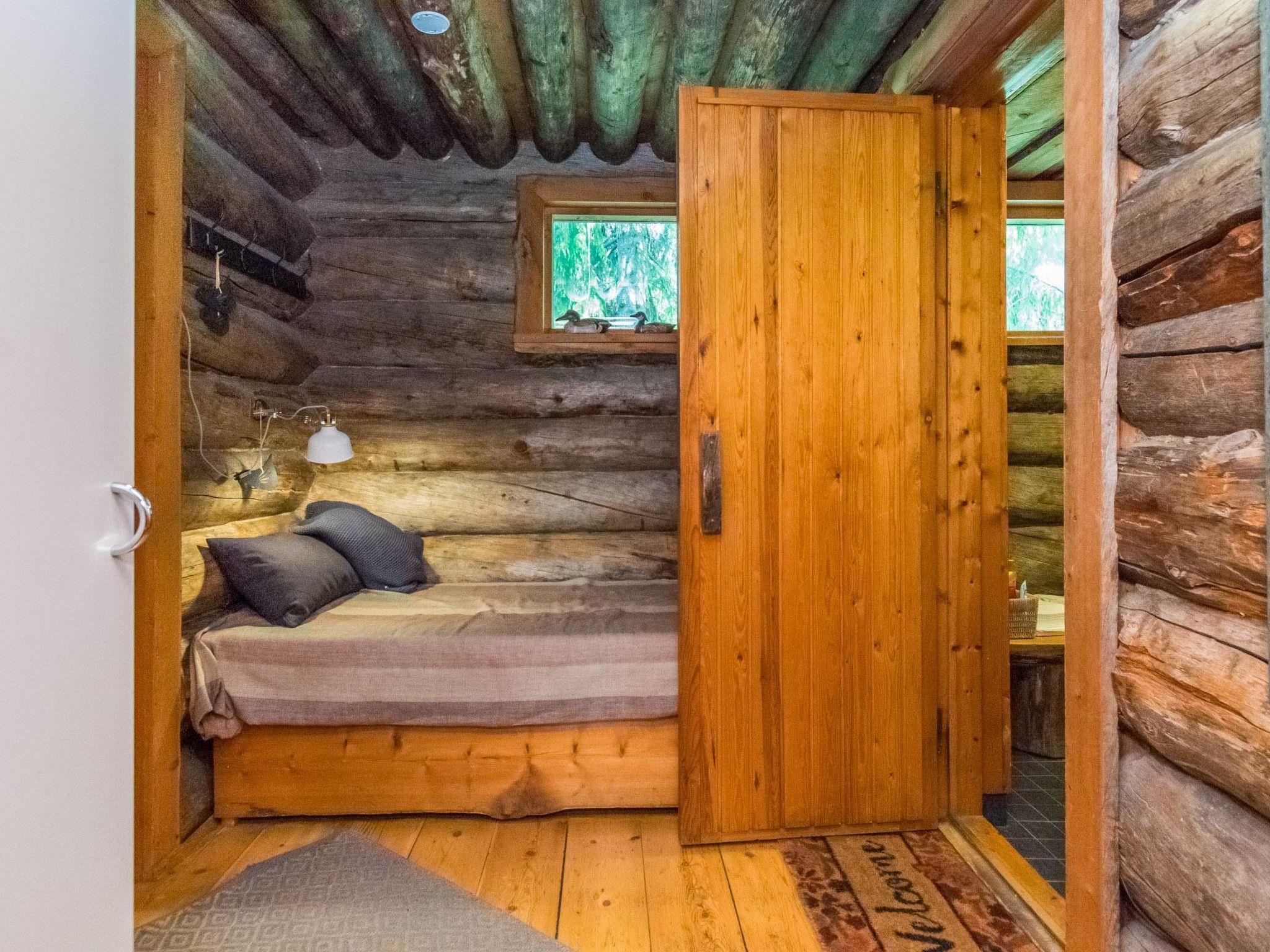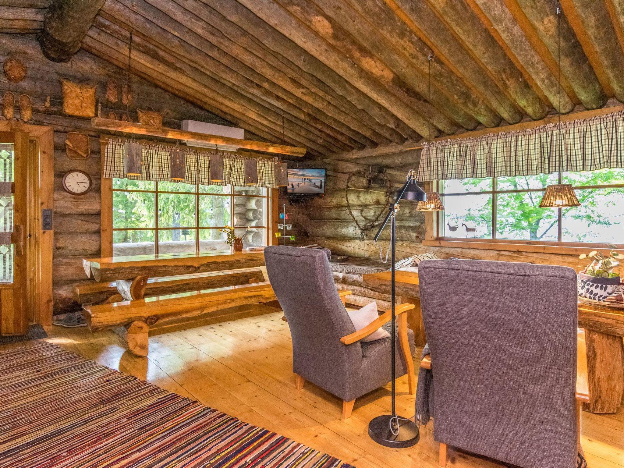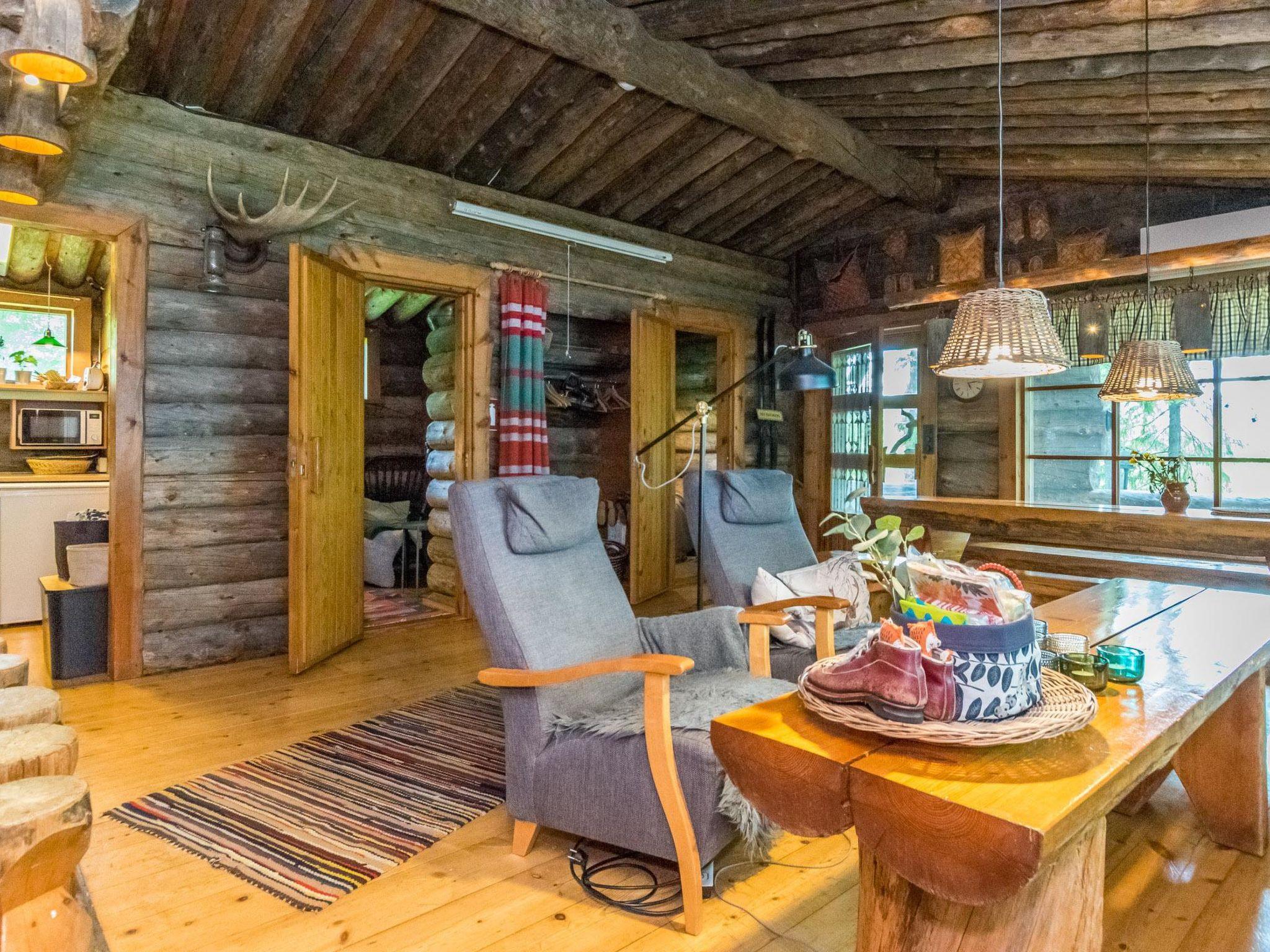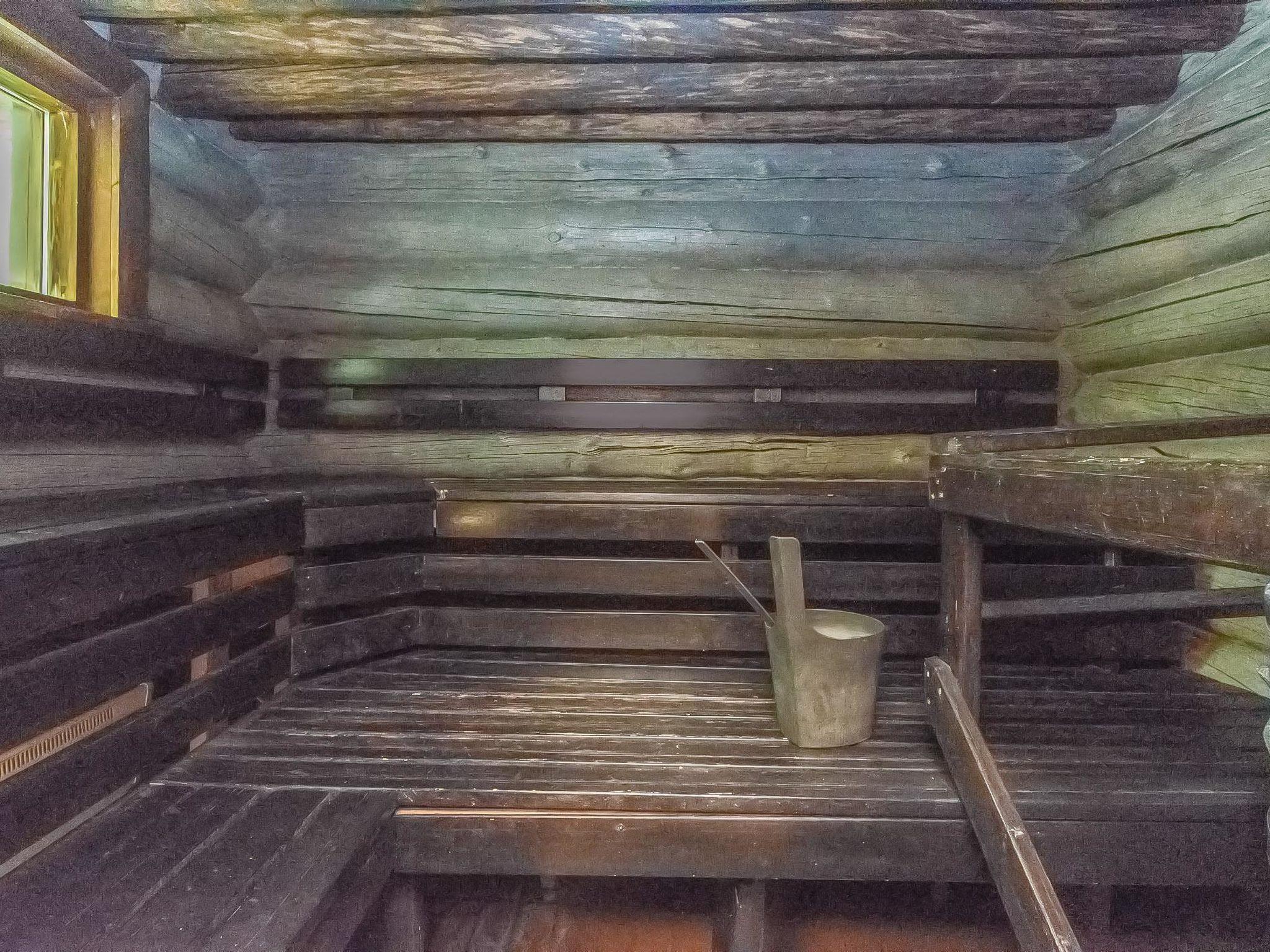 Silver log cottage built in 1976, kitchen, spacious living room, three extra beds in wide wall seats, a small bedroom with a bunk bed, a small bedroom with a double bed, shower room with two showers, dressing room, sauna (electric stove), a covered terrace.