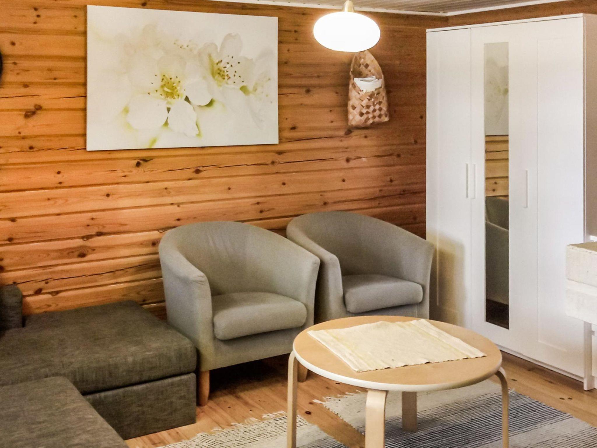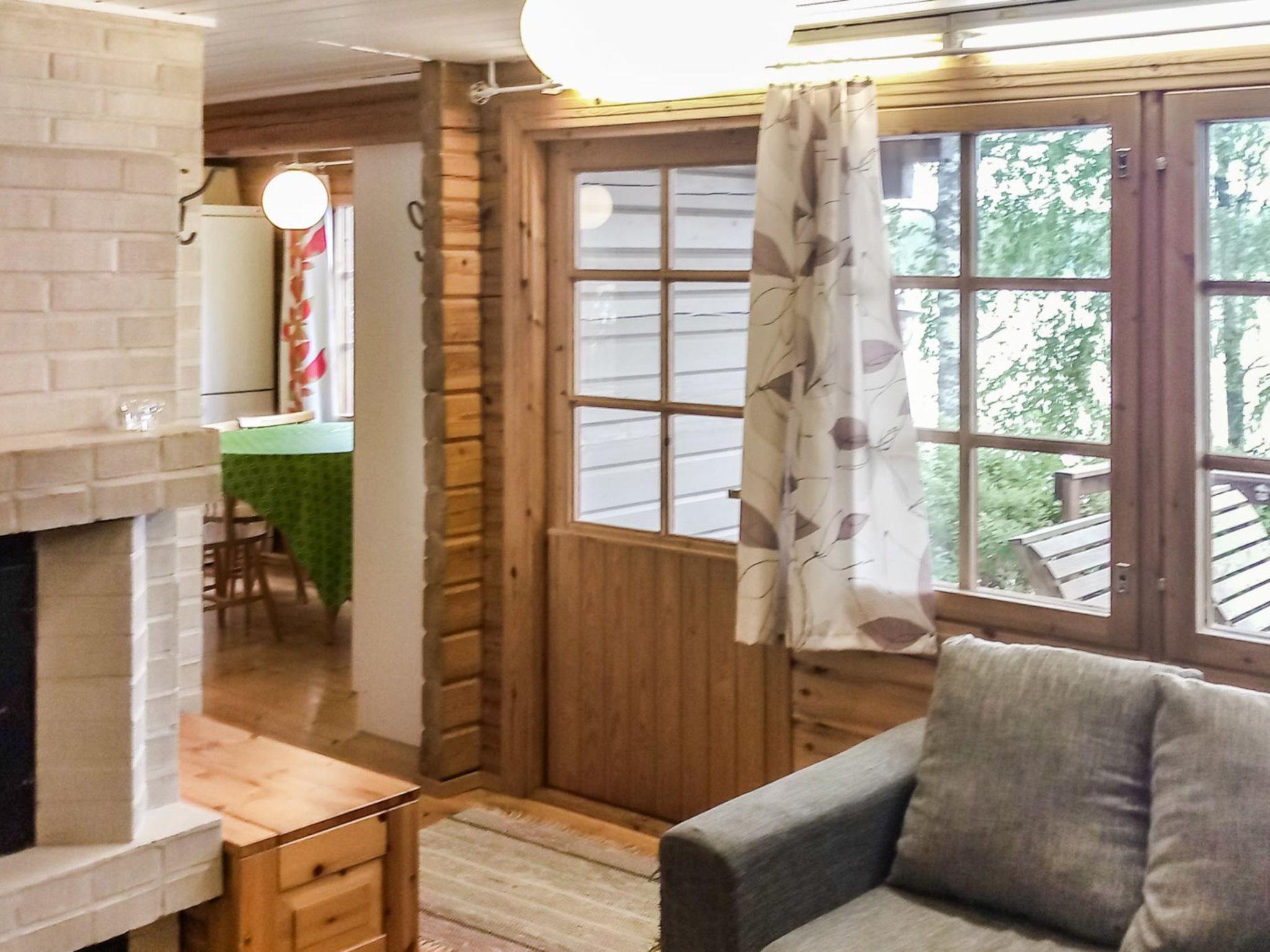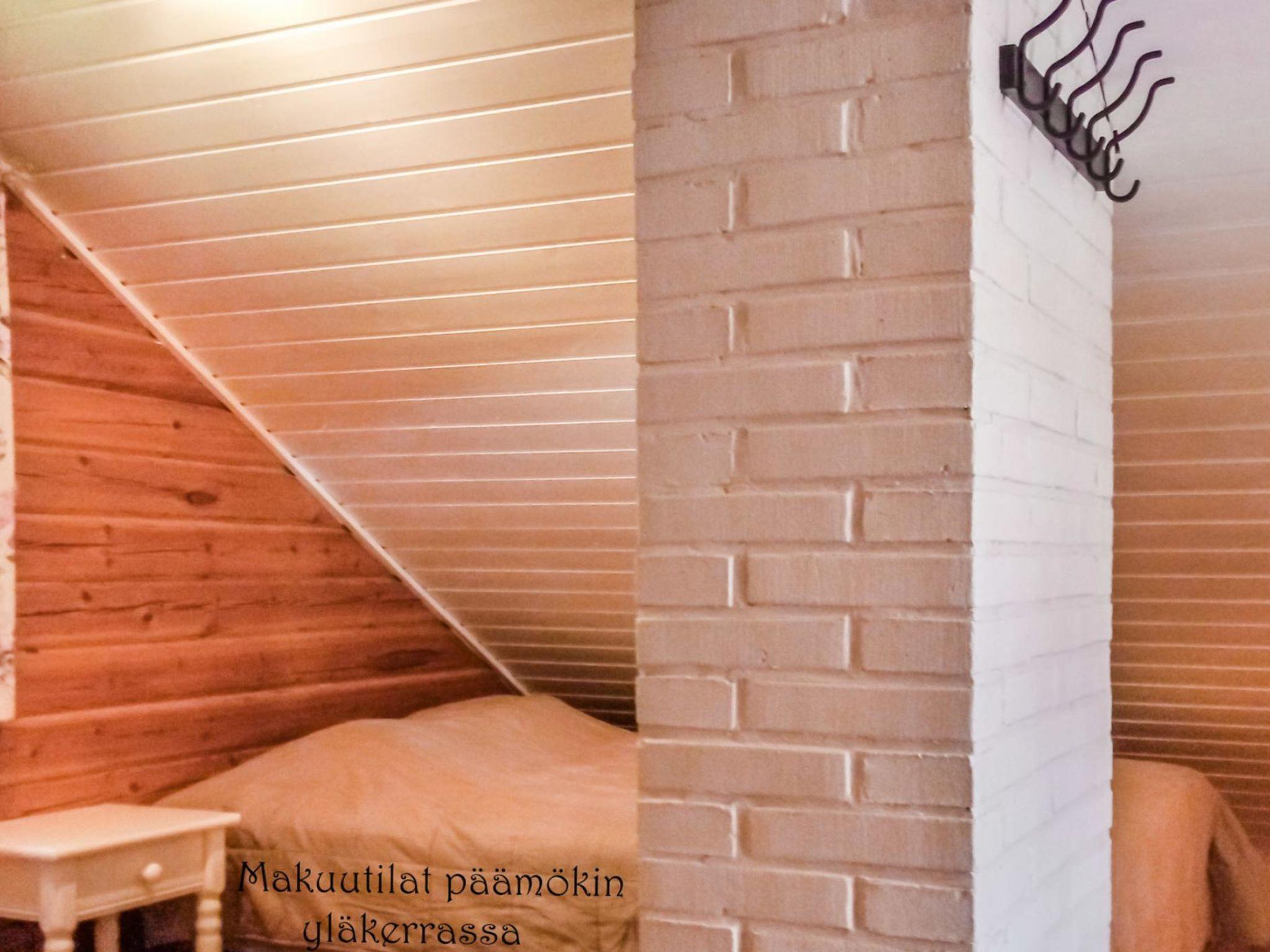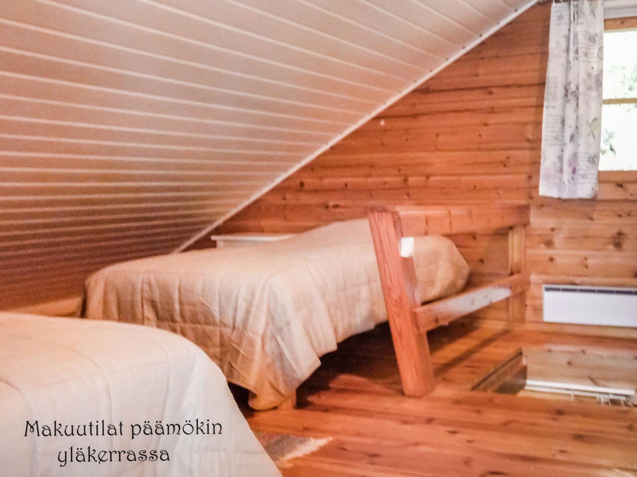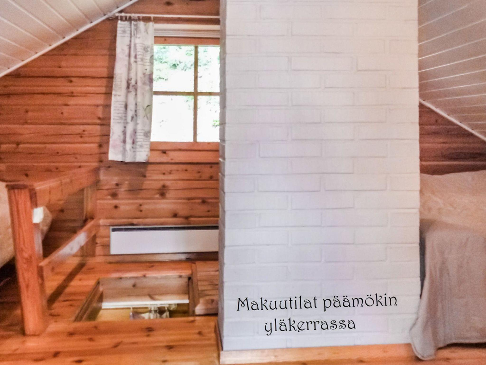 Log cabin, built 1988, located on a hillside plot. Kitchen, living room, bedrooms with double bed, sleeping loft (height on it's highest point 1,7 m, steep stairs) with double bed and 2 single beds, glassed-in porch.
