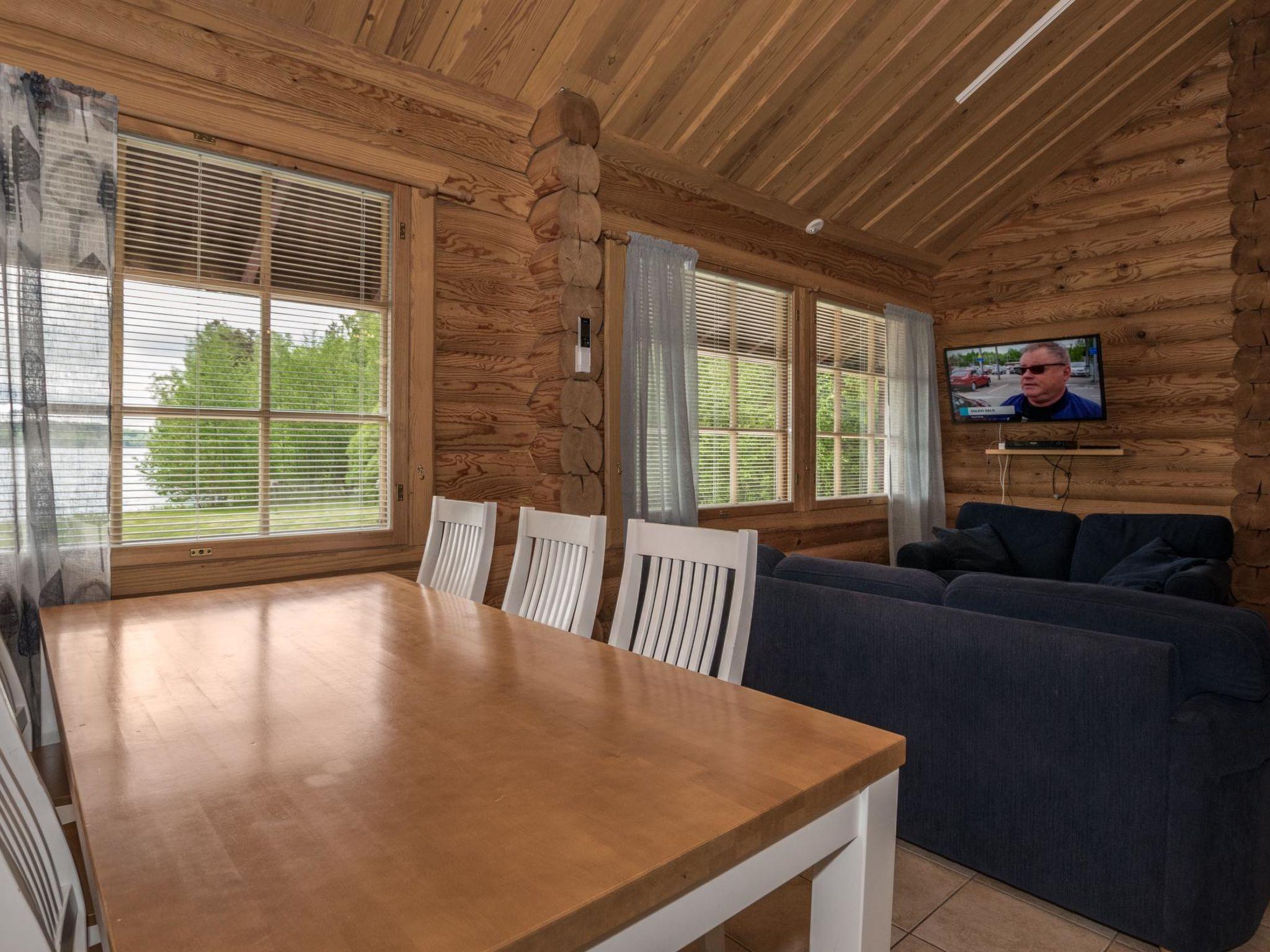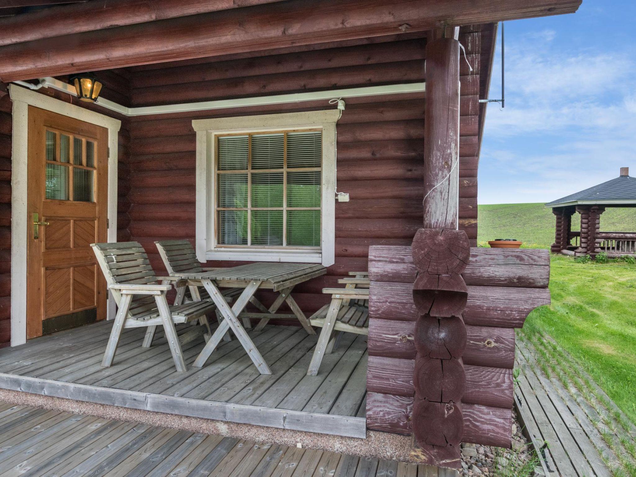 Log building 2002, living room/ kitchen convertible sofa, 2 bedrooms with 2 beds in each, sleeping loft 2 beds, sauna, washroom, dressing room, open porch. Air source heat pump.