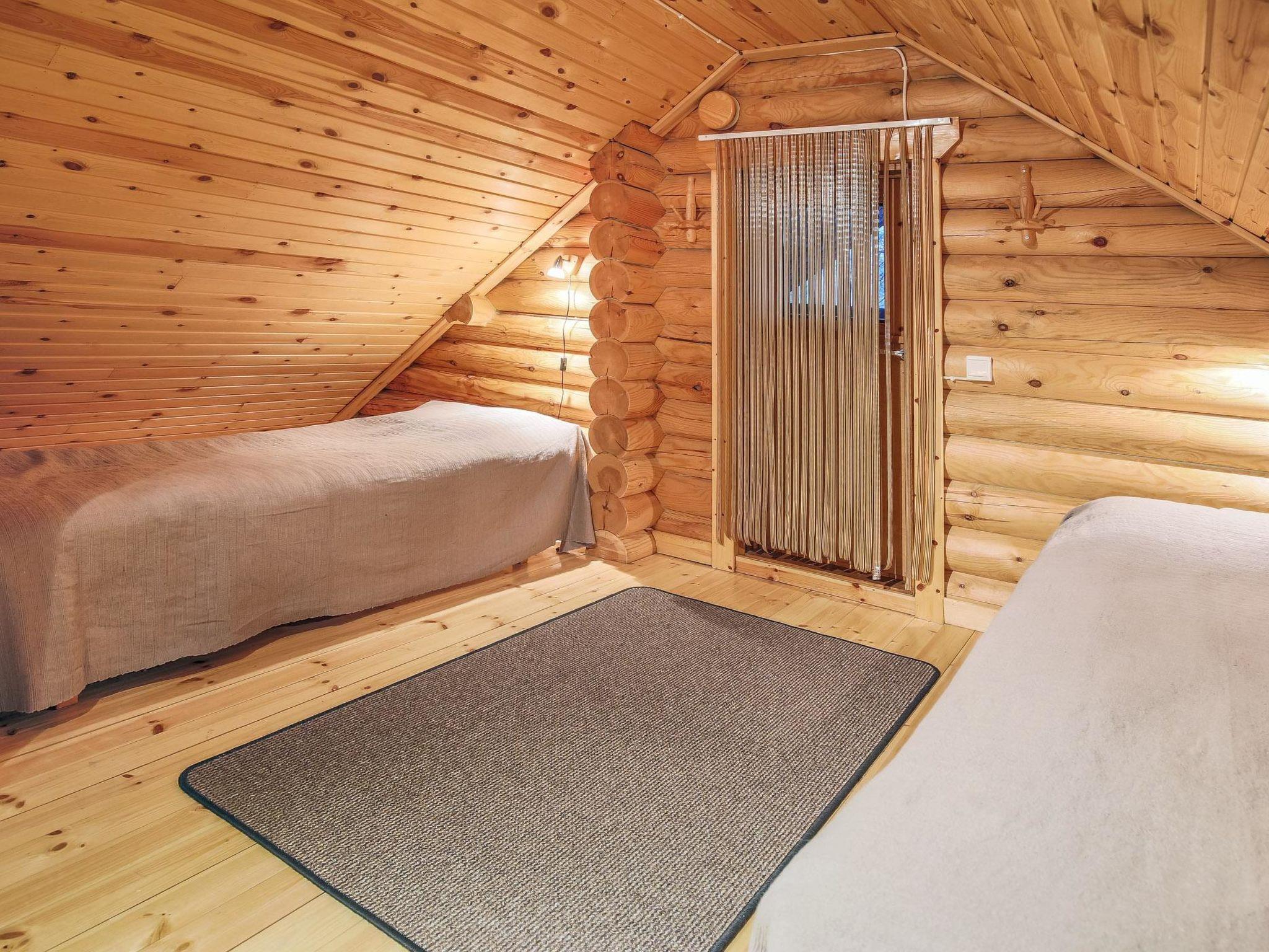 Log chalet 2009, living room/kitchen, bedroom twin bed, washroom, WC in dressing room, roofed open porch and large terrace. Upstairs: 4 beds and balcony. In sleeping hut (in summer use): convertible sofa for 2 persons, electricity and electric panel heating. Porch has gas-fired barbecue grill, water pipe from well.