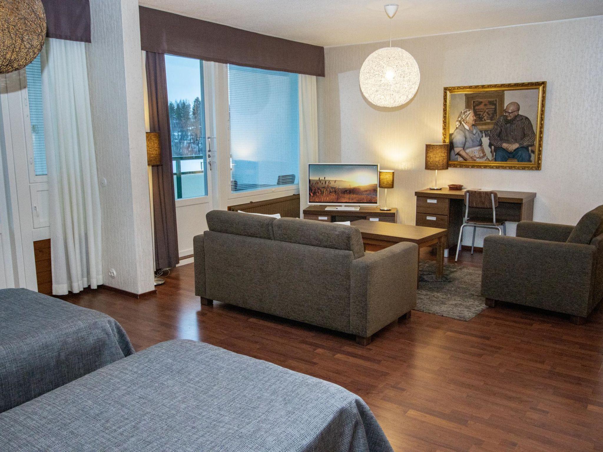 Room 431 in the Spa Hotel (Kekkonen Suite) is a cozy, bright, and spacious studio located on the 4th floor of the building. The apartment features two beds and a sofa bed as an extra sleeping option. The services of Ikaalinen Spa are just 300 meters away. The apartment has a private balcony with beautiful views of Lake Kyrösjärvi, and the public beach is approx. 100 meters away. The distance to Tampere is only 55 km.