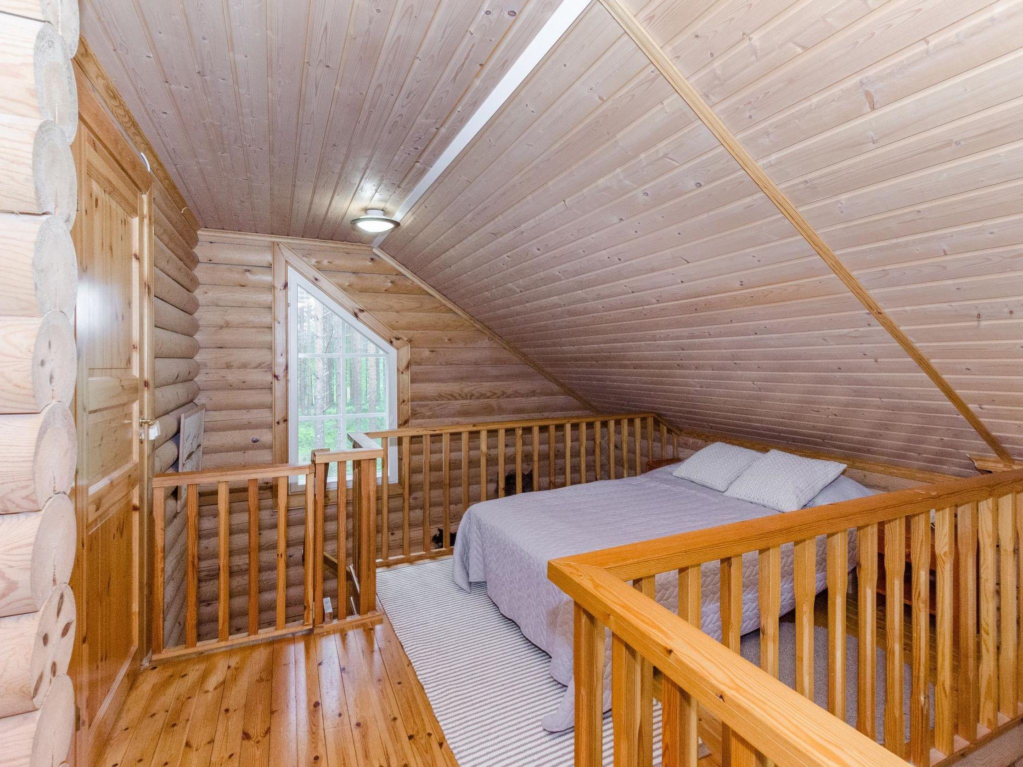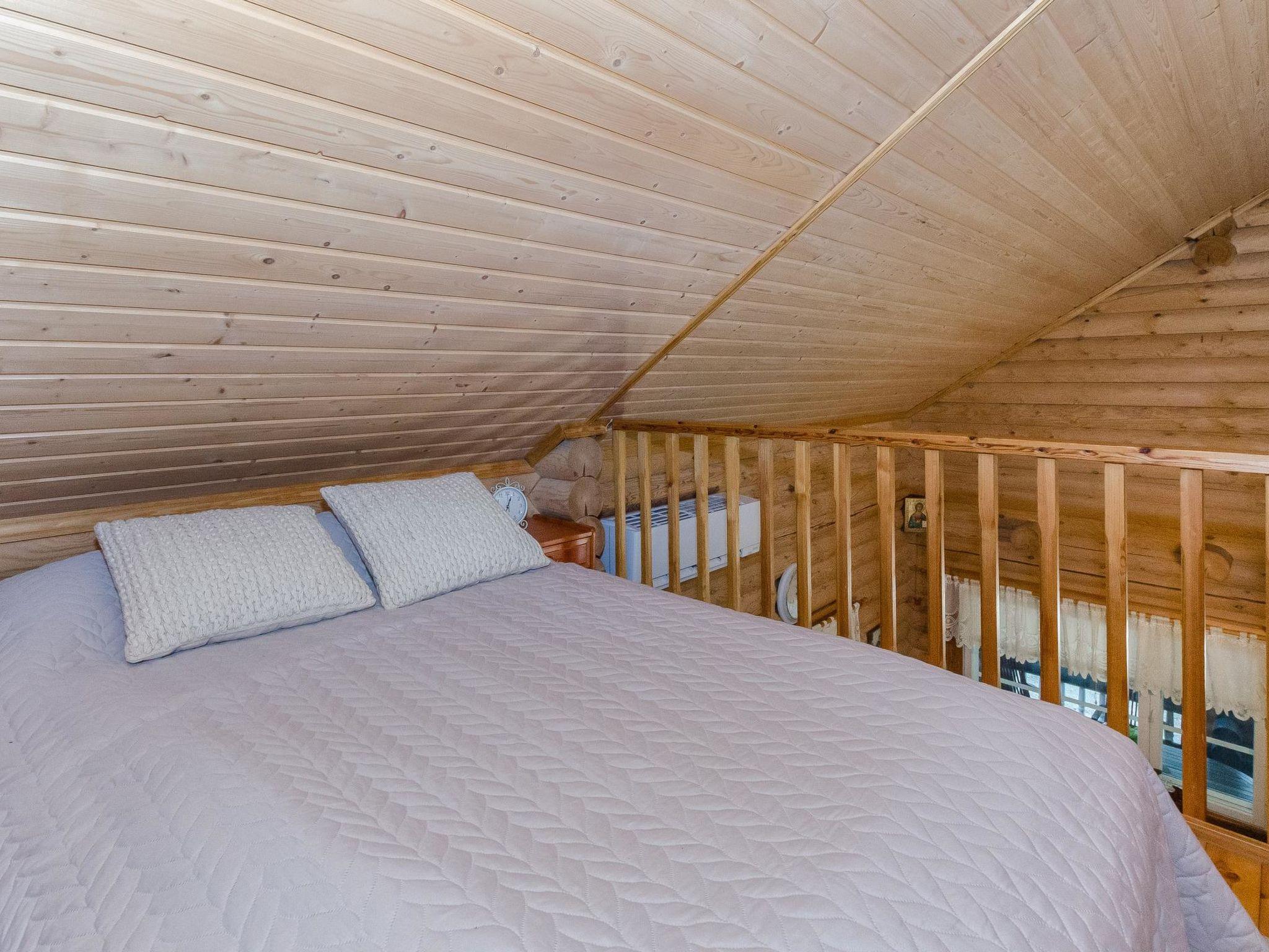 120 km northeast of Joensuu, L.Hattujärvi 40 m, own shore, deep bottom, own boat and jetty. Log cottage with two floors 2001, kitchen-livingroom, downstairs bedroom with double bed, upstairs bedroom with two beds and hallway with one bed, one bed (120 cm) and convertible sofa, glazed terrace and balcony. Own, separate sauna (wood heated stove). Available 2 fatbikes.