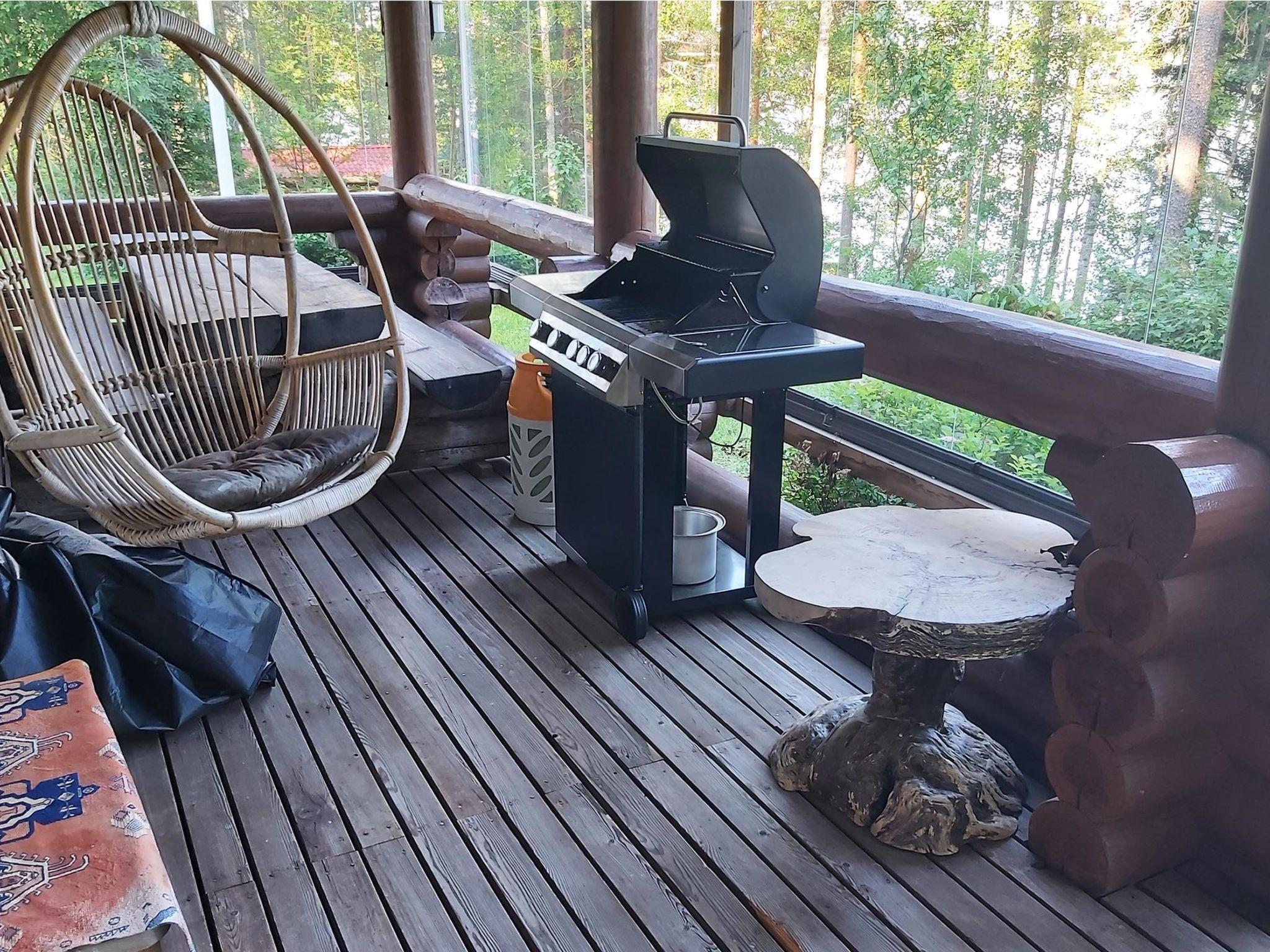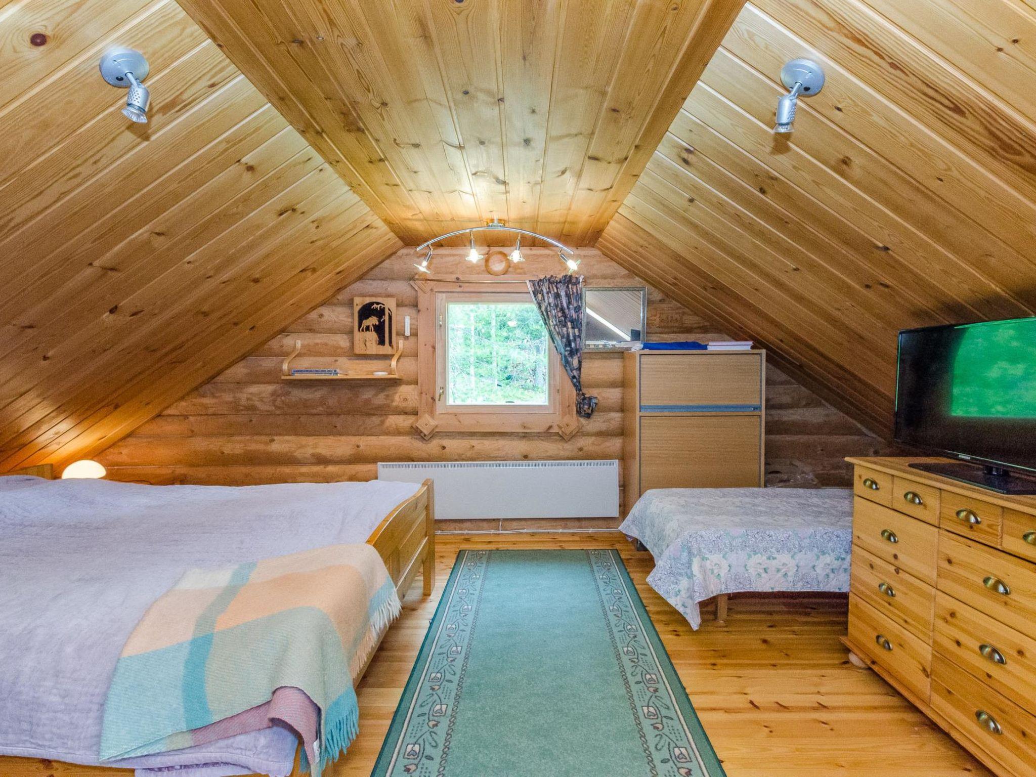 Log cabin 1997. Living room/kitchen, double bed in the bedroom, double bed and 3 beds in the spacious loft (50 m²), wood-heated sauna, glazed porch, balcony. Child gates at the top of the loft stairs. Airfryer in the kitchen. Wi-Fi 4G.