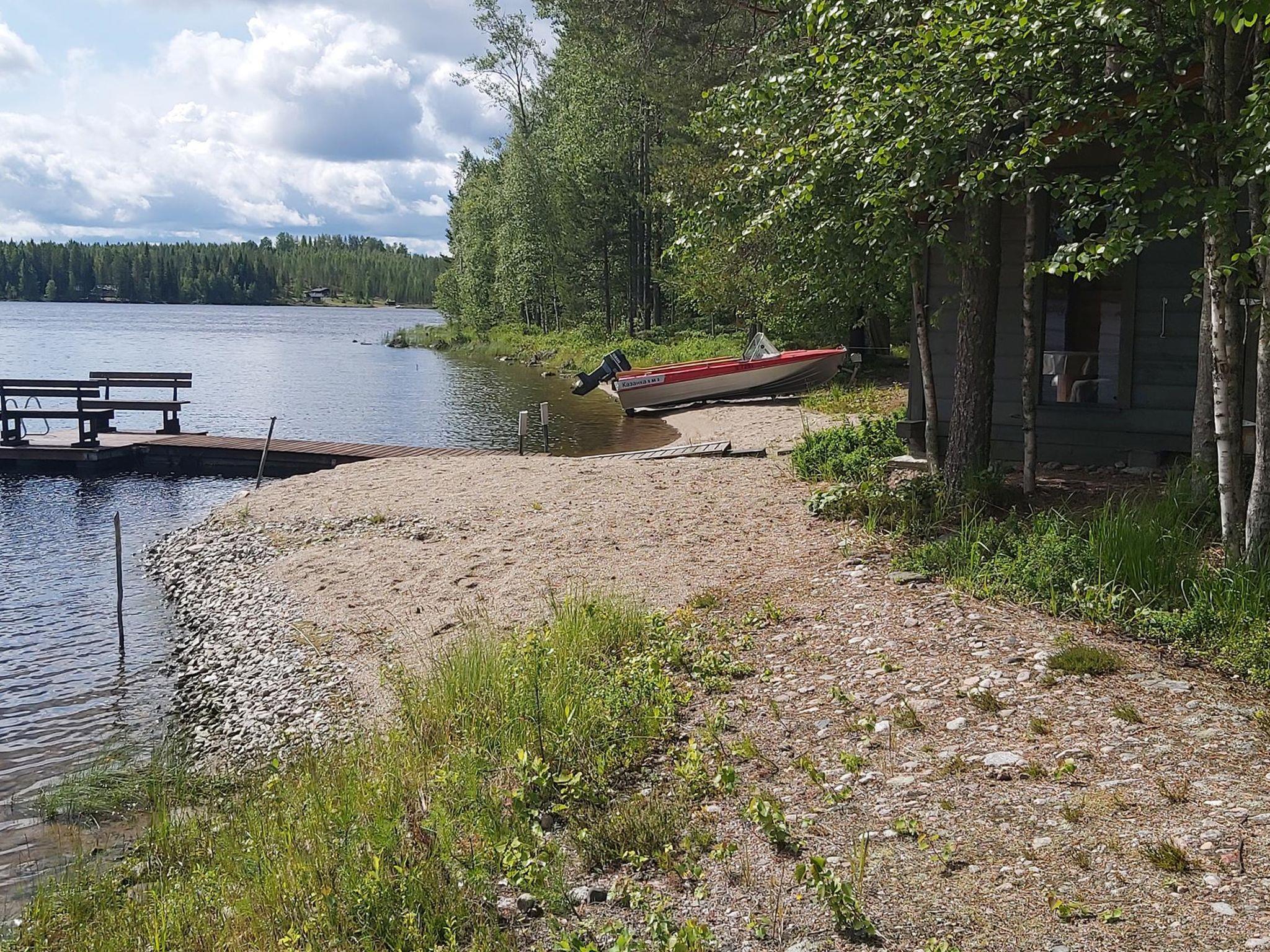 76 km to the northeast from Joensuu, lake Koitere 25 m (163.667 km²), a low gently sloping child friendly beach. At the end of the pier approx. 2 m, private beach, pier, and boat with an electric motor. In addition, there is a wooden boat shared with the neighbor. The boat is located on the border of the plots and can be used whenever it is free. The owner rents a motorboat with a 30 hp engine for an additional price.