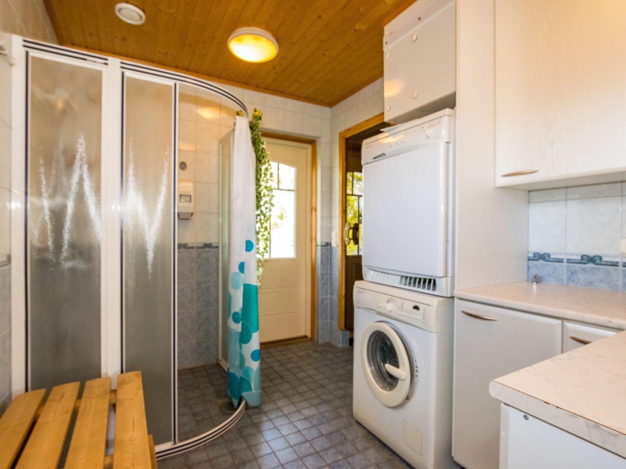 Yard building 35 m², with wood-burning sauna, dressing room, living room, sauna has elec. light and cold water. There is an air source heat pump with cooling and warming functionality on the cabin.