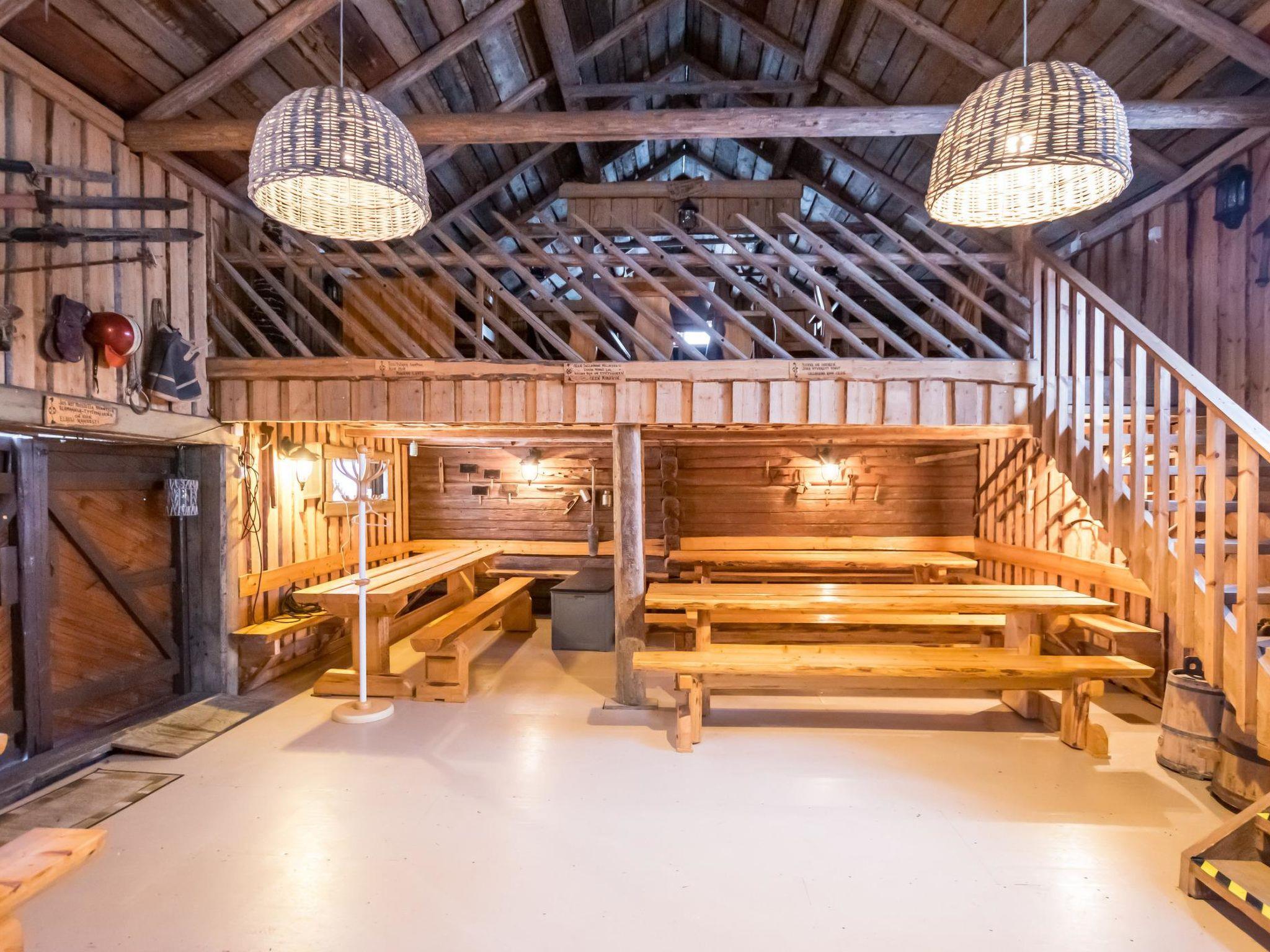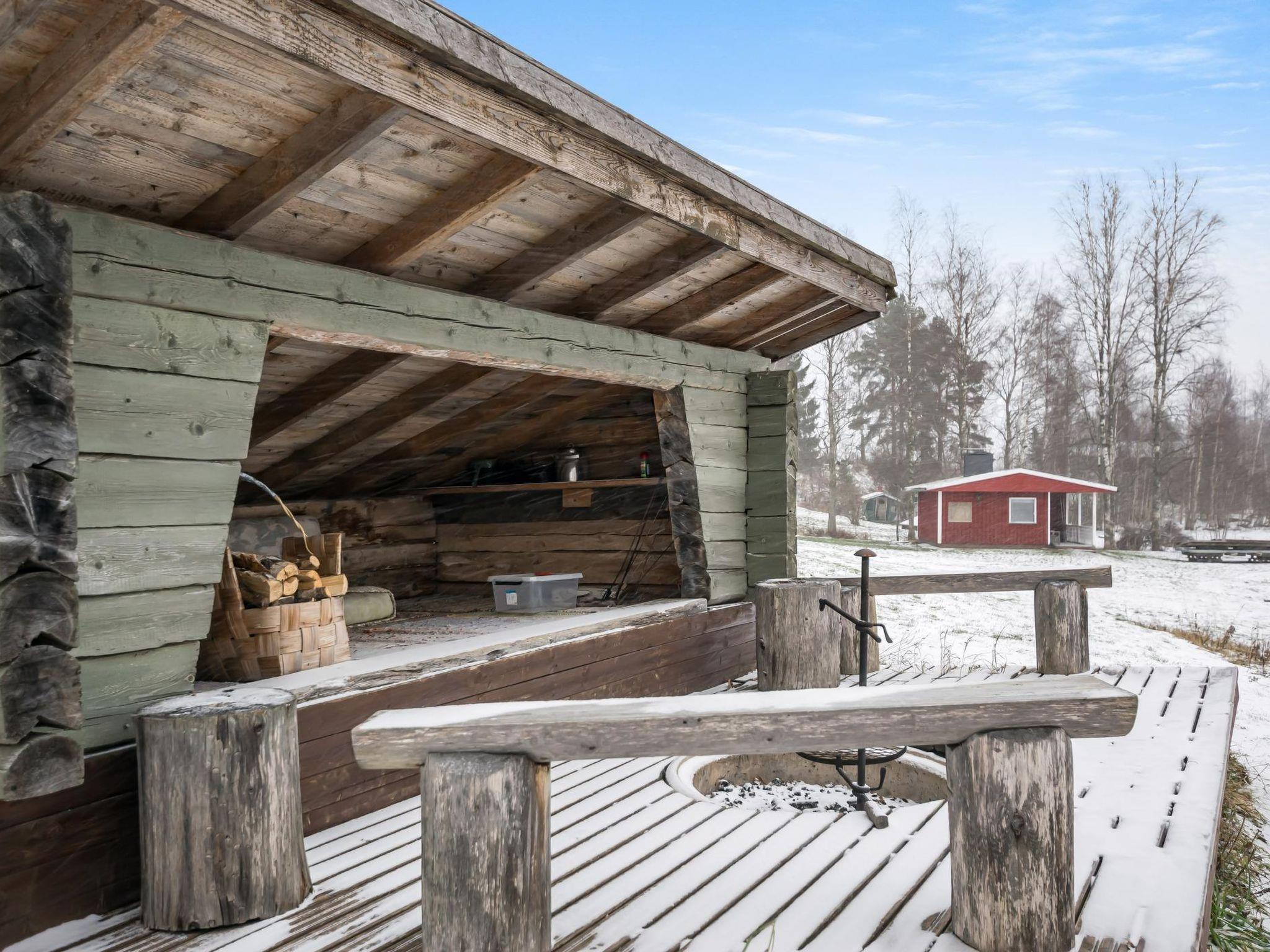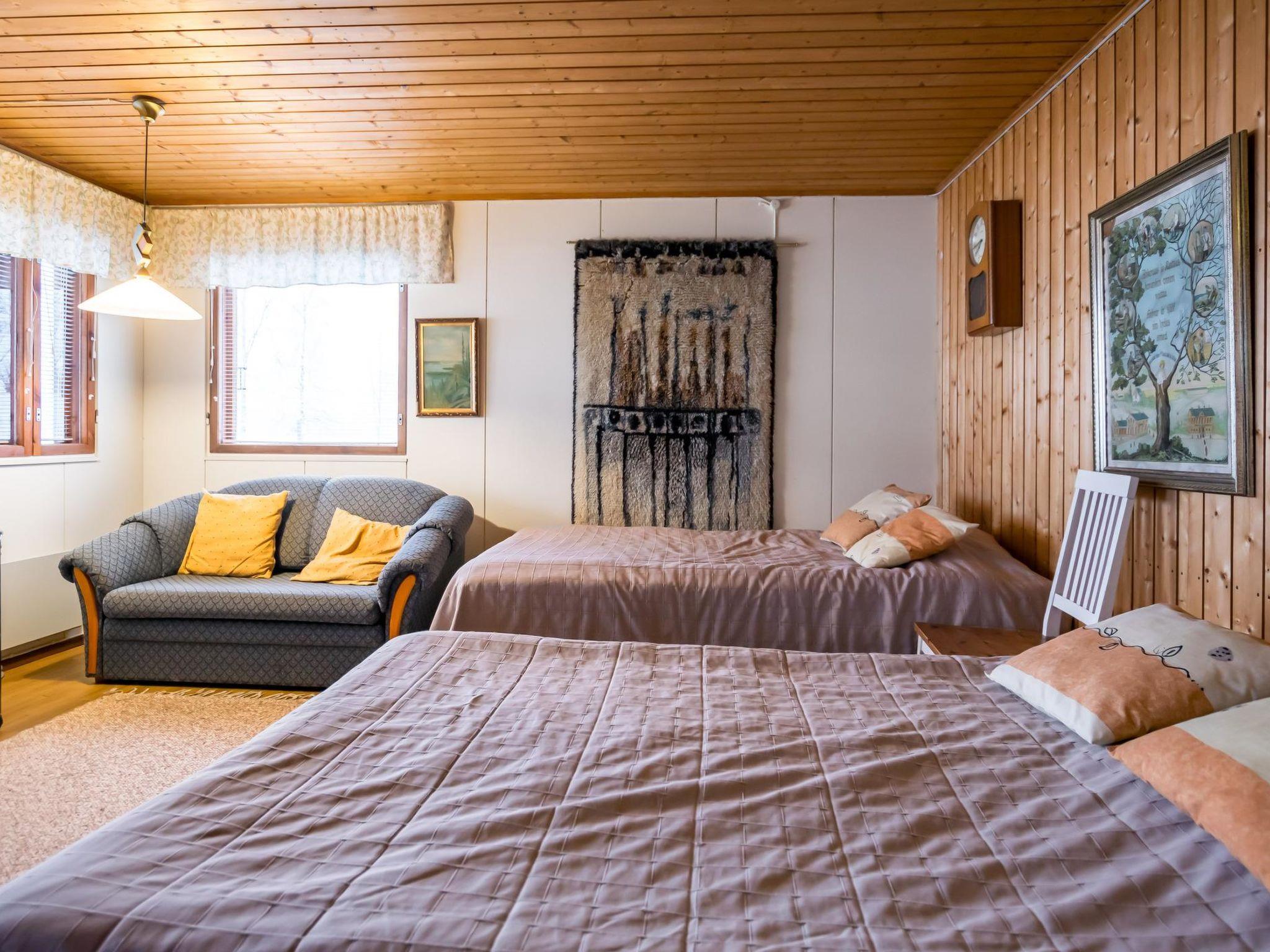 By the shore, there is a separate wood-heated lakeside sauna. In the summer, cold water is available from a tap, and it is drinkable. Water can be heated in a stove-attached water tank when needed. In winter, water must be carried from the lake or the main building. The lakeside sauna includes a living room with electricity, a fireplace, a refrigerator, and an electric stove. The room also has two double beds and a sofa bed that can be used as alternative sleeping places during summer, though they are not included in the official bed count. The lakeside sauna is not heated in winter, but the owner can preheat it upon request.