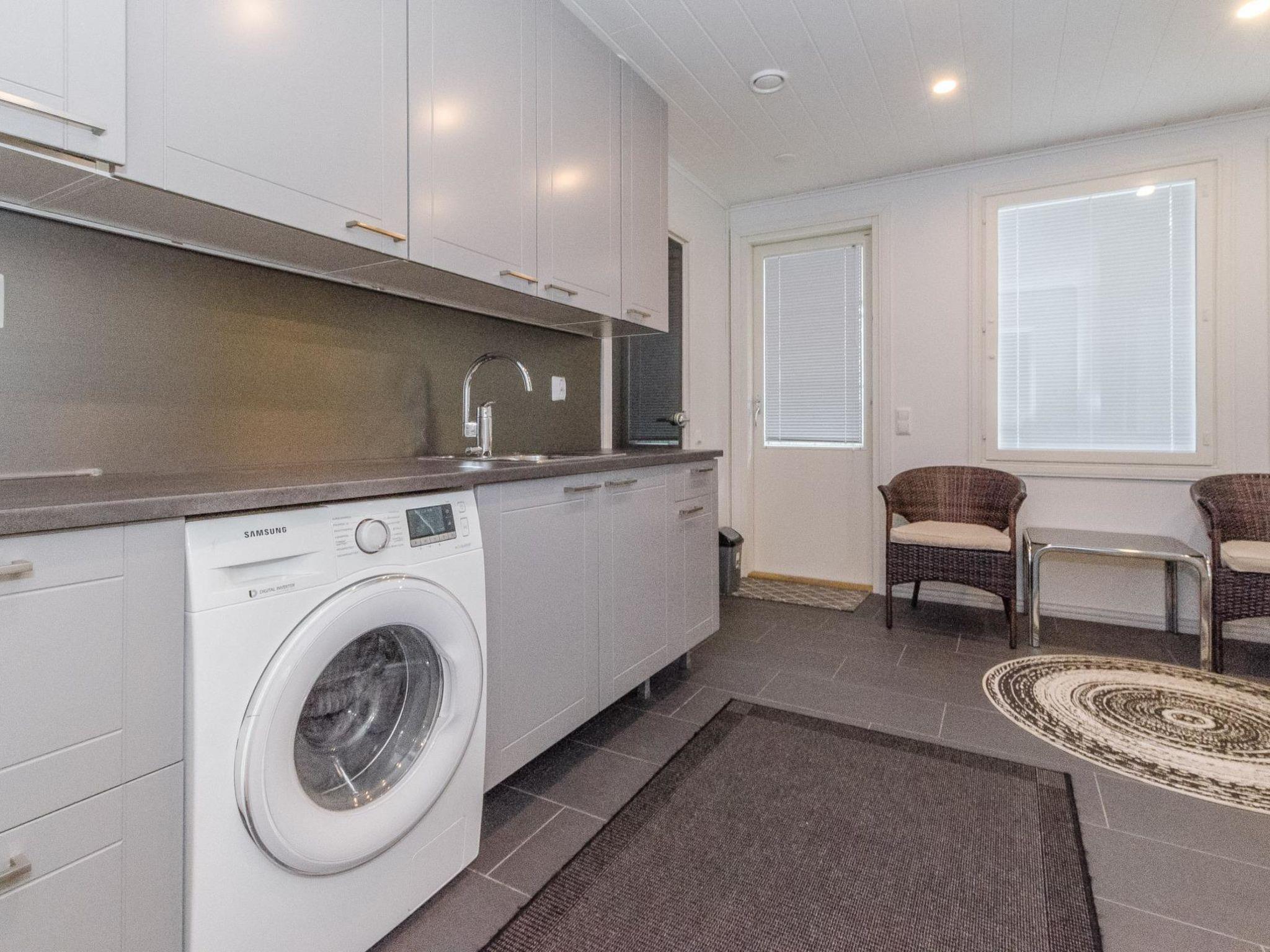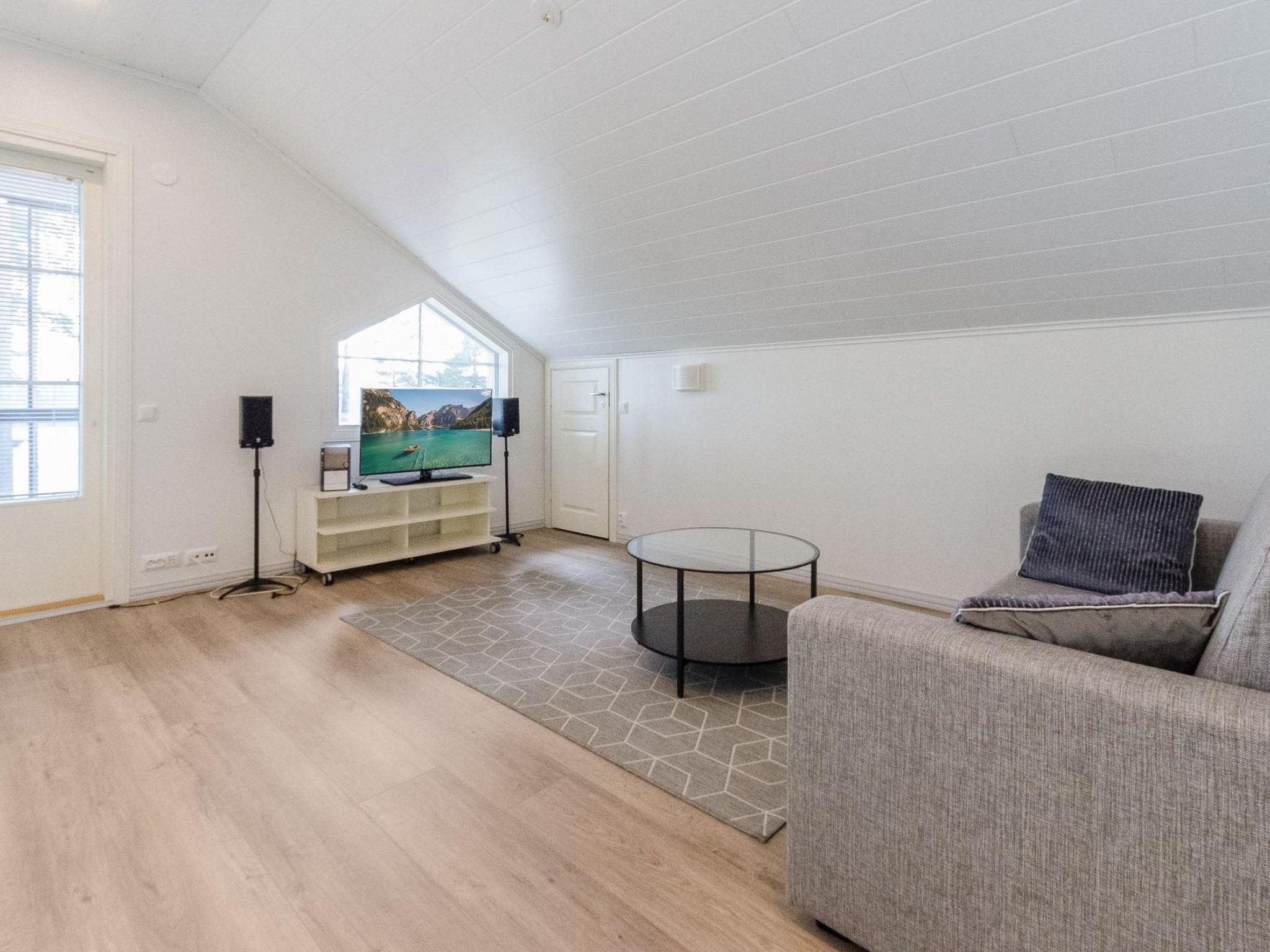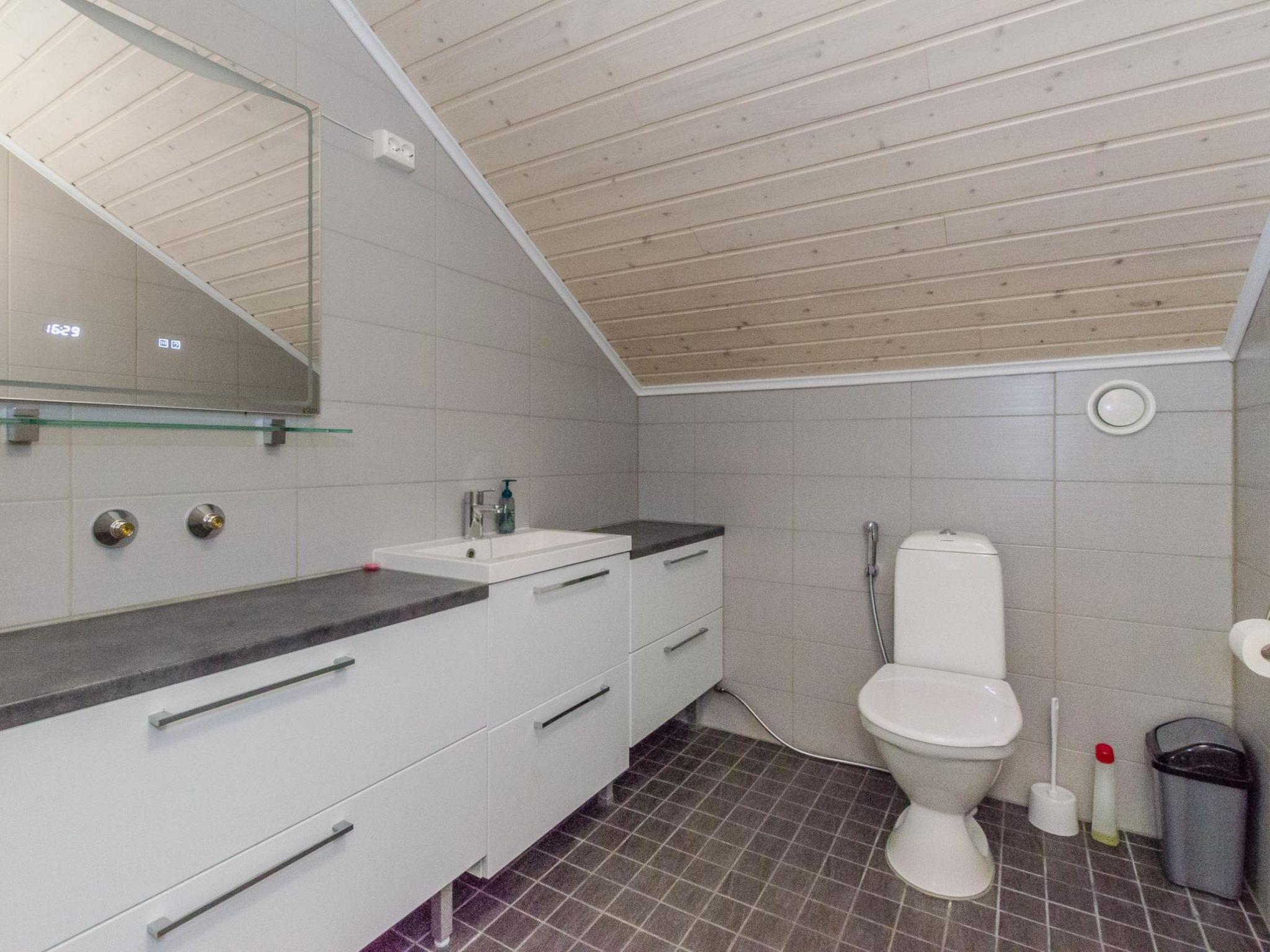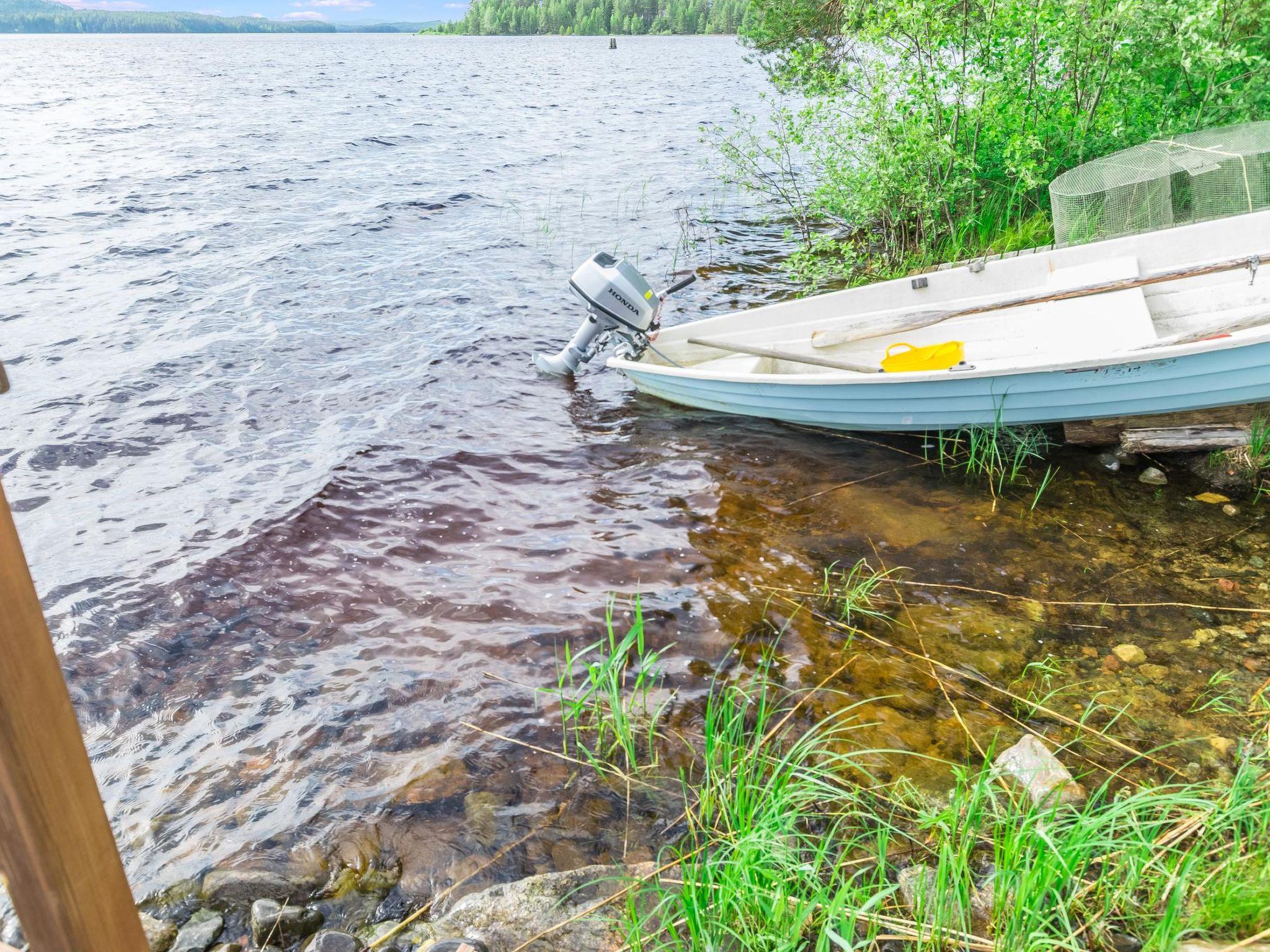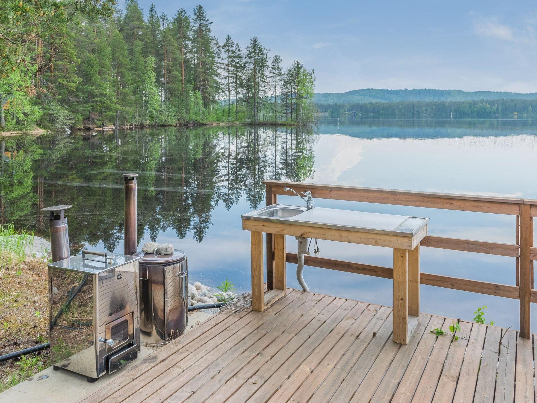 The well-equipped lakeside sauna has a wood-burning sauna stove and a bathroom with a shower and a WC. The sauna's fireplace room has a fully equipped kitchen with an electric stove, dishwasher, microwave, refrigerator, coffee maker, and wine cabinet. Additionally, it has an air-source heat pump, TV, and radio. The loft in the fireplace room has 2 mattresses.