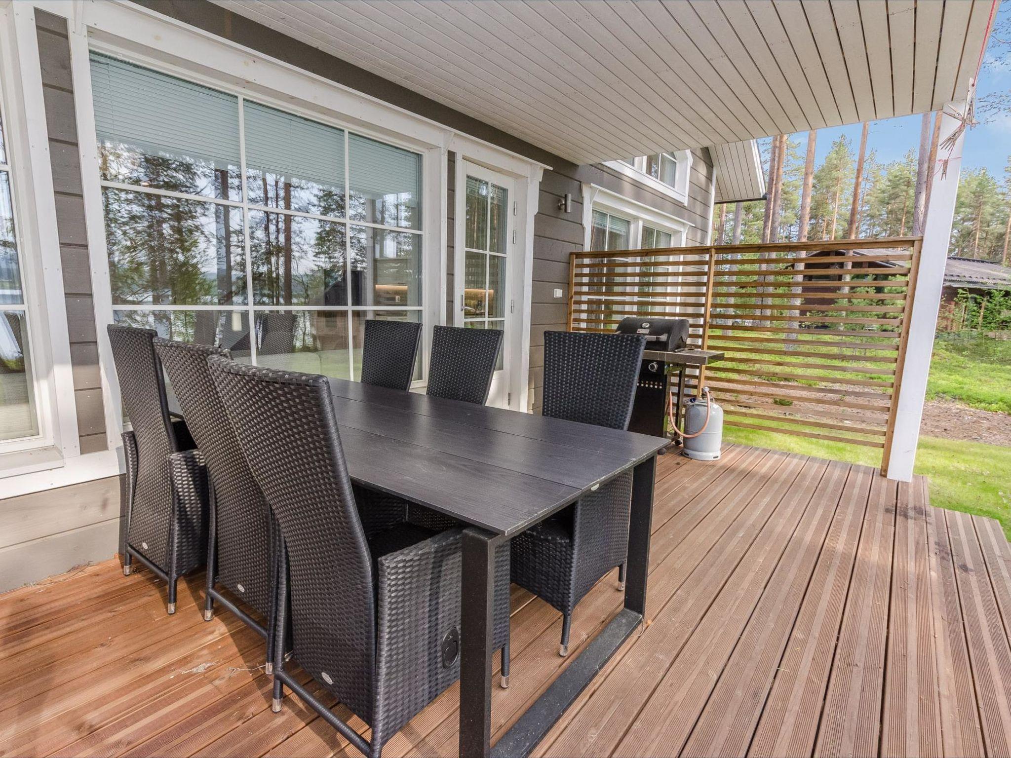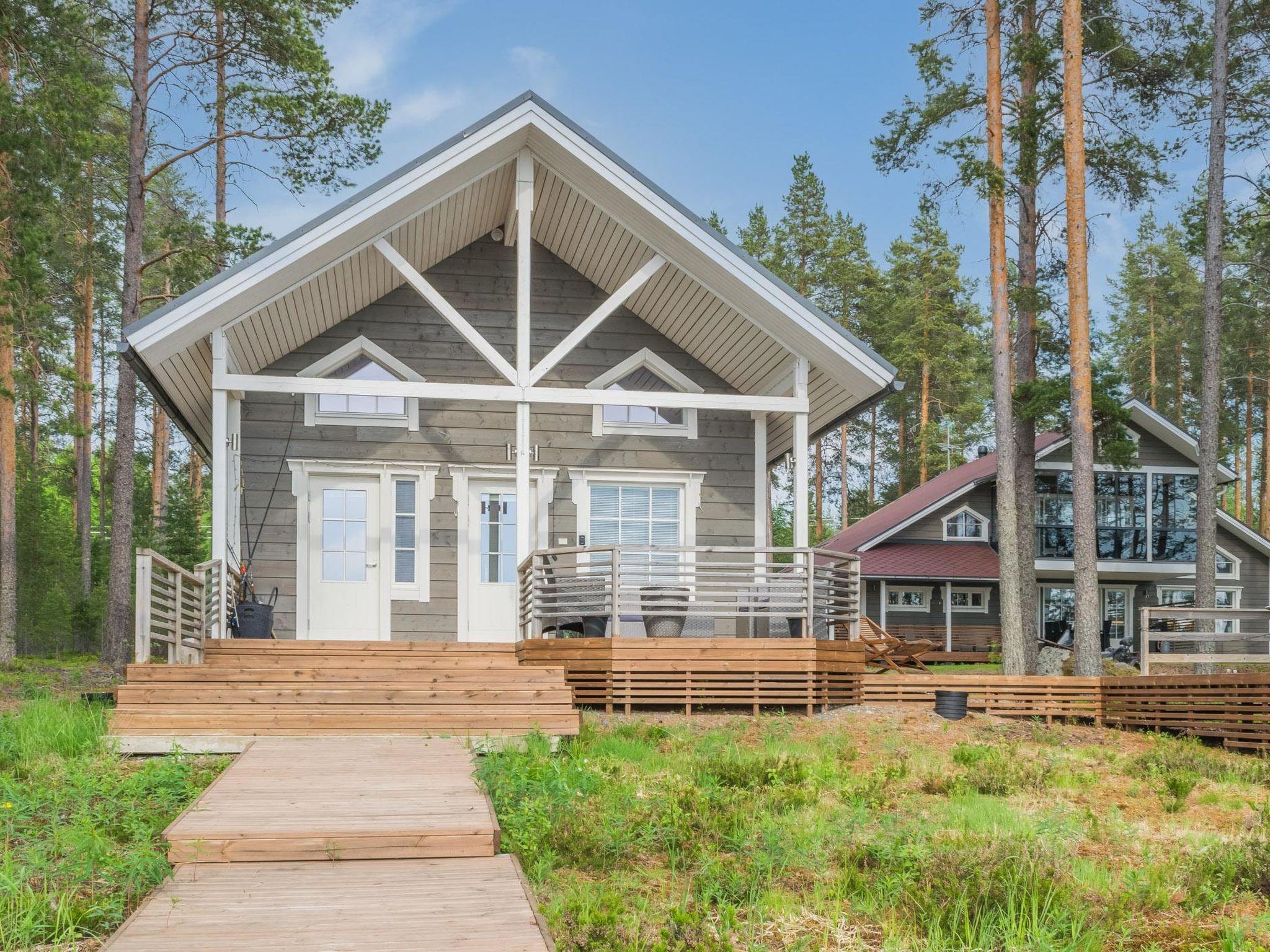 49 km northeast of Joensuu, Lake Pielinen (871.2 km²) 30 m, shallow sandy beach with some small stones, own beach, a private boat, and a large pier. An outboard motor can be requested from the owner free of charge if you know how to use it. The holiday home was built in 2020. The ground floor features a living room/kitchen and two bedrooms, each with 2 beds. The ground floor also has a large utility/dressing room, a bathroom, an electric sauna, and a WC. The upper floor includes two bedrooms, each with 2 beds, a lounge area with a TV, and a WC. The terrace has a gas grill and terrace furniture for 8 people. The holiday home is equipped with mechanical ventilation and the sauna building has an air-source heat pump.