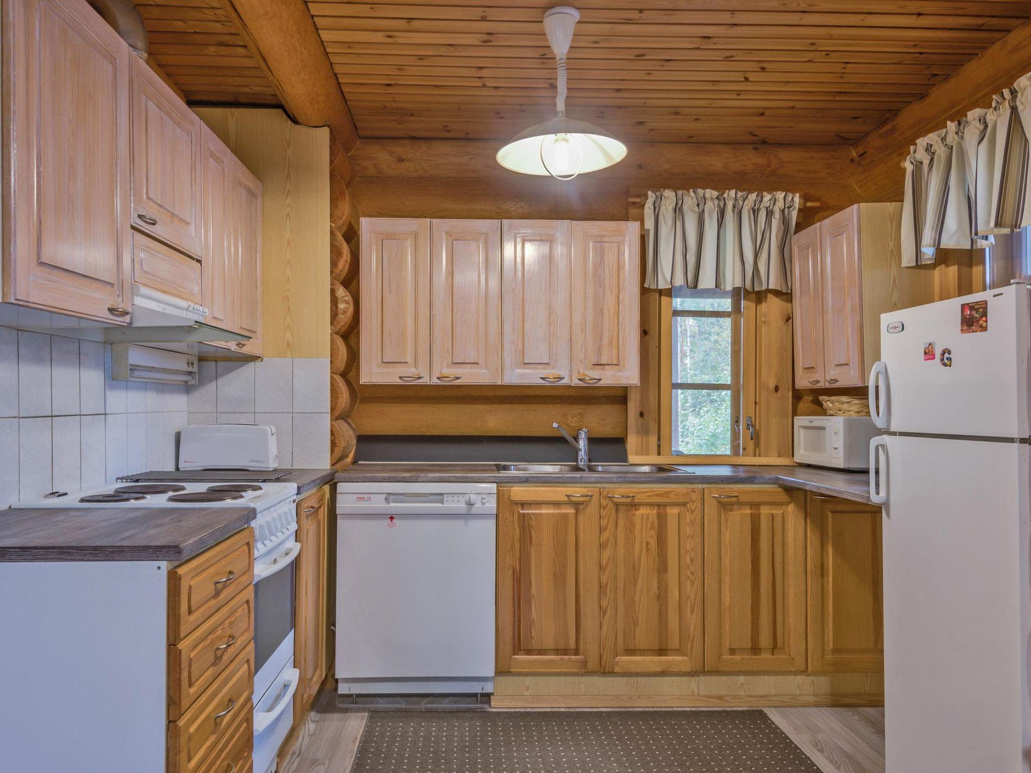 Log cabin 1995, living room/kitchen, 2 bedrooms with 2 beds in each, sleeping loft with 4 beds, dressing room, washroom, sauna, foyer, open veranda.