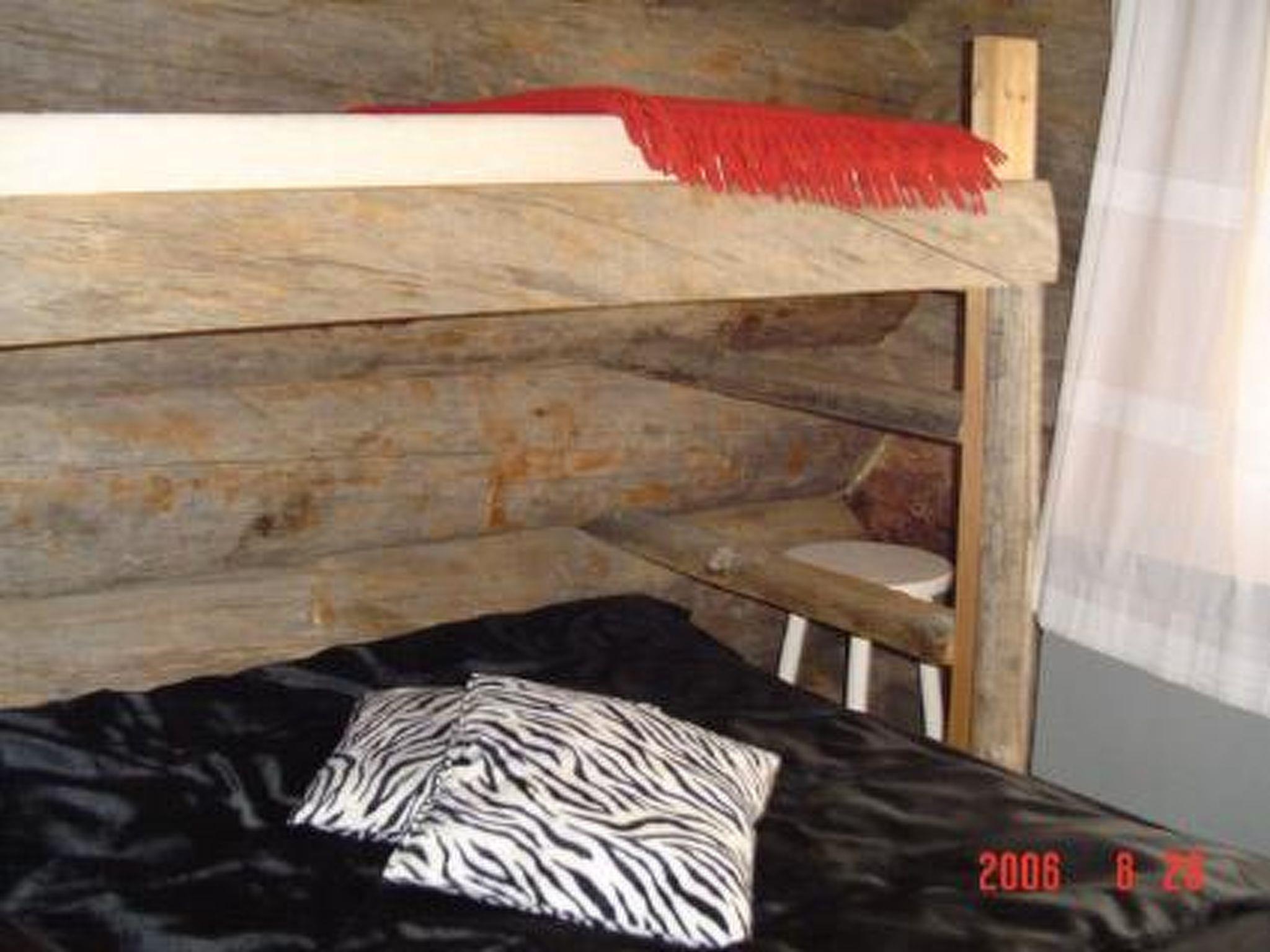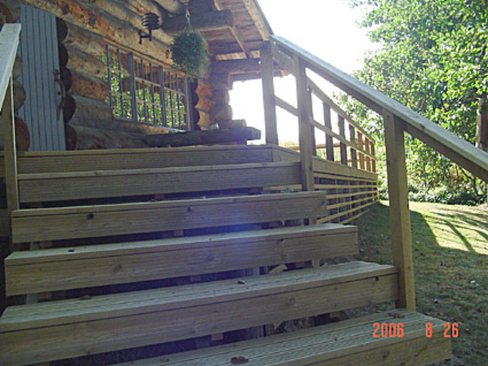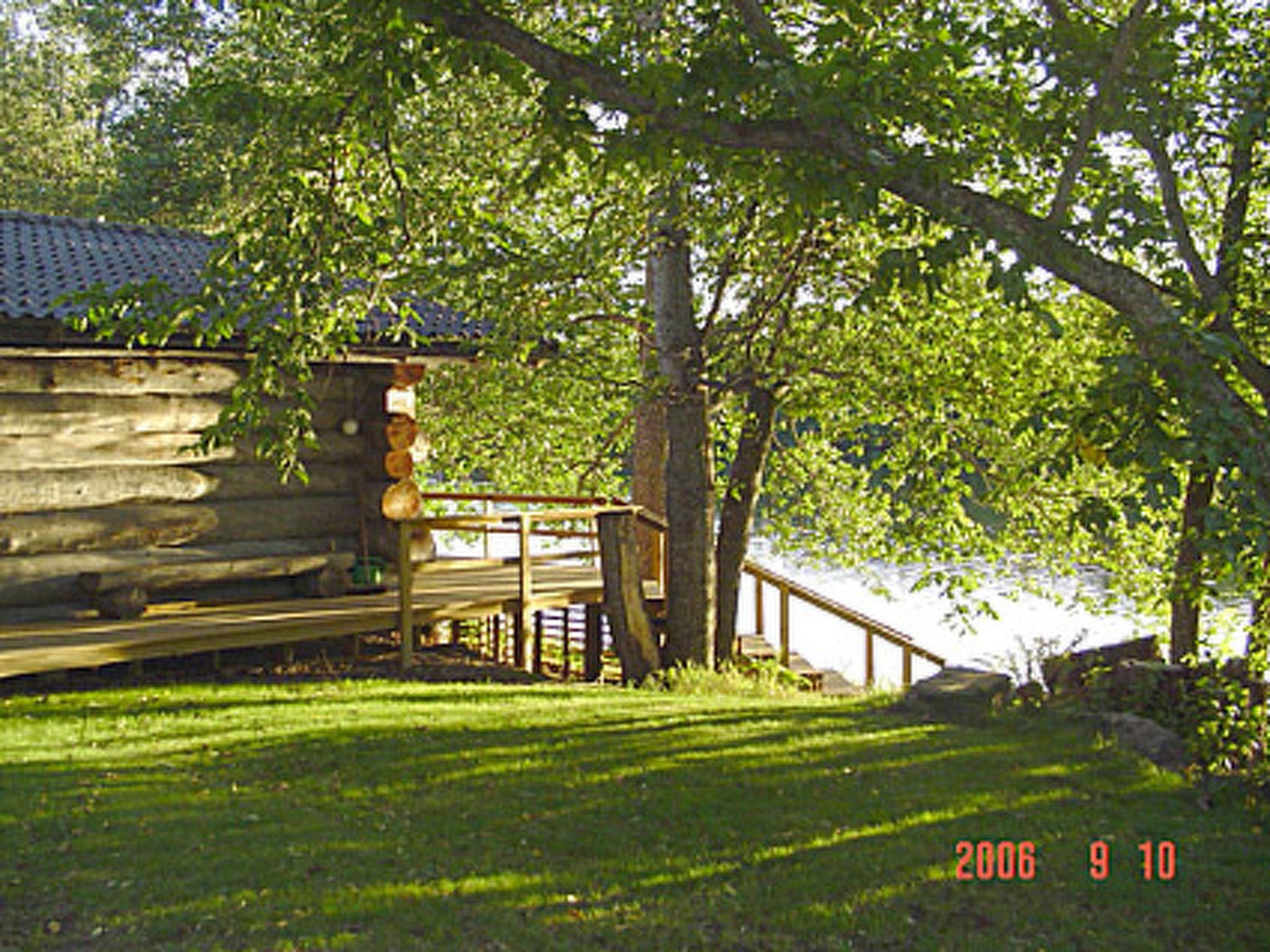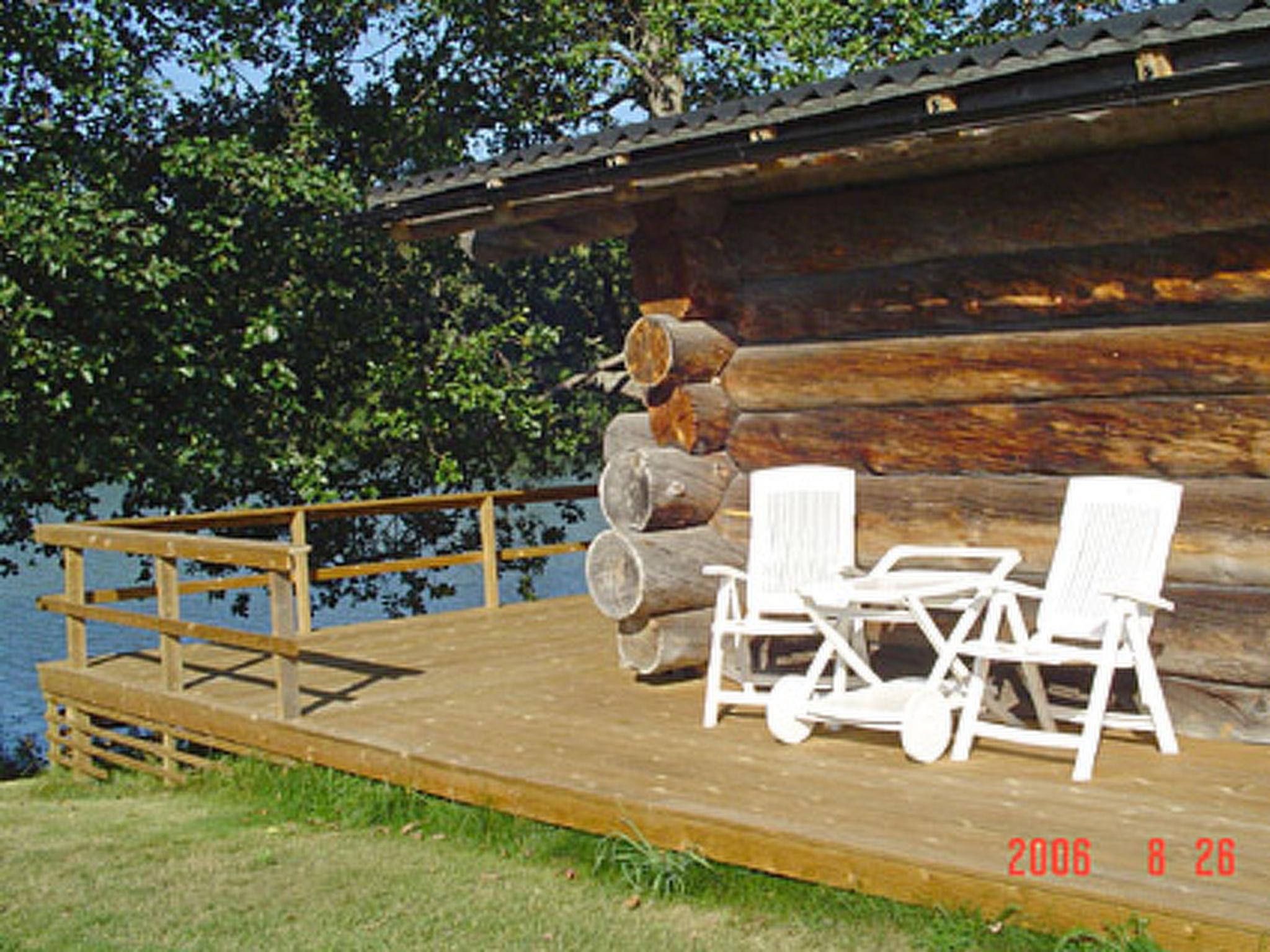 39 km south of Jyväskylä. Lake Veijonjärvi 10 m (length 2 km, breadth 200 m), deep water, soft sanded mud bottom. 2 boats. Log cabin 1975, kitchenette, living room with 2 extra beds, bedroom with 2 beds, dressing room, sauna, verandas on 3 sides of the cottage. Entrance to the toilet from the outside/from terrace.