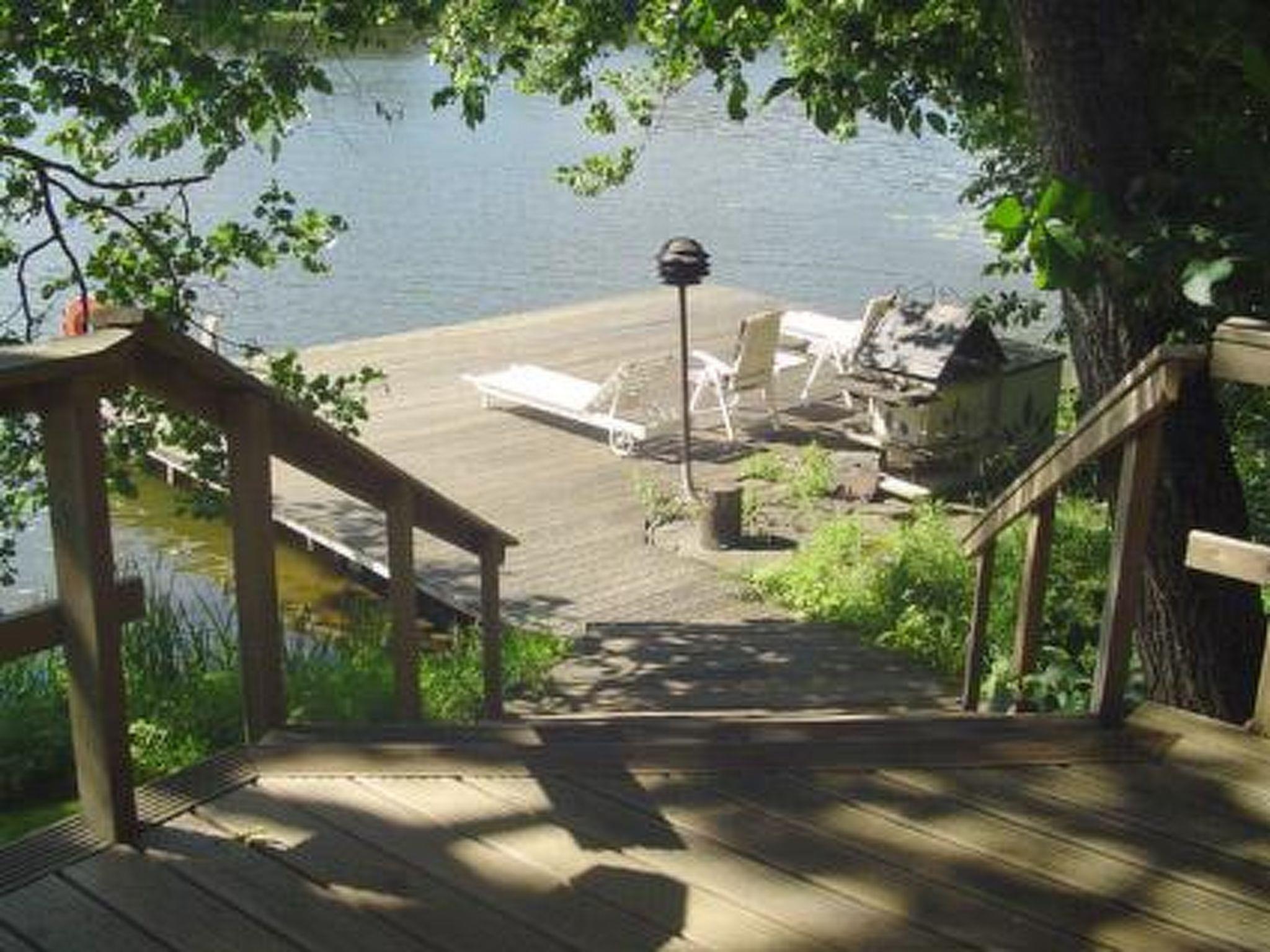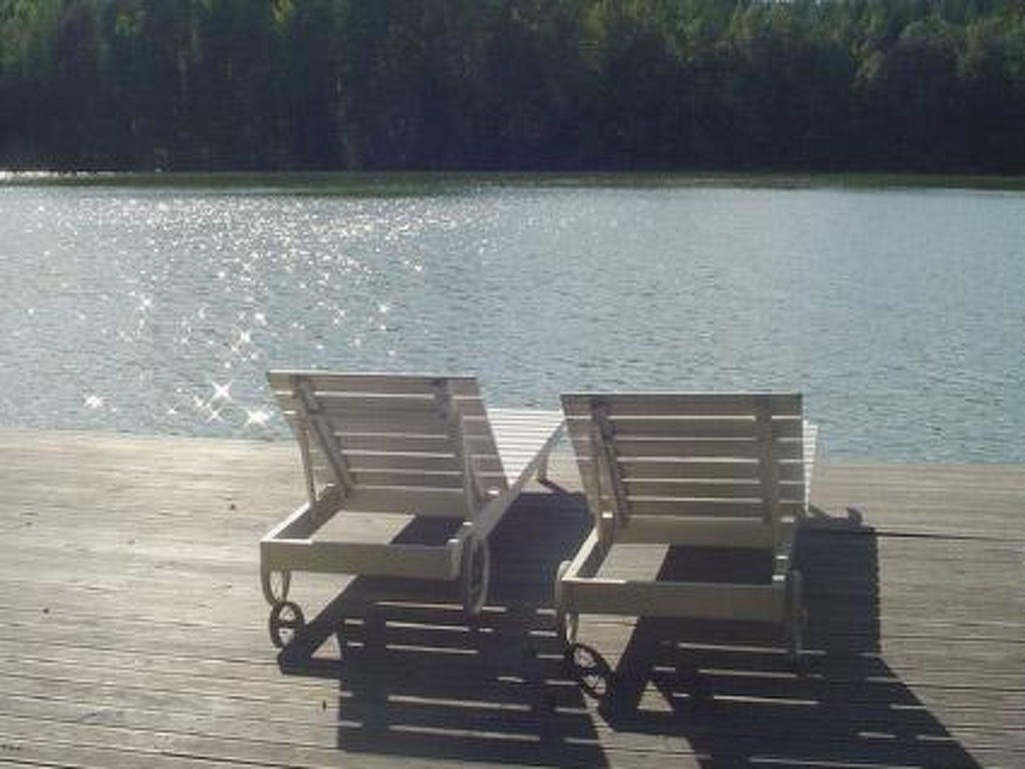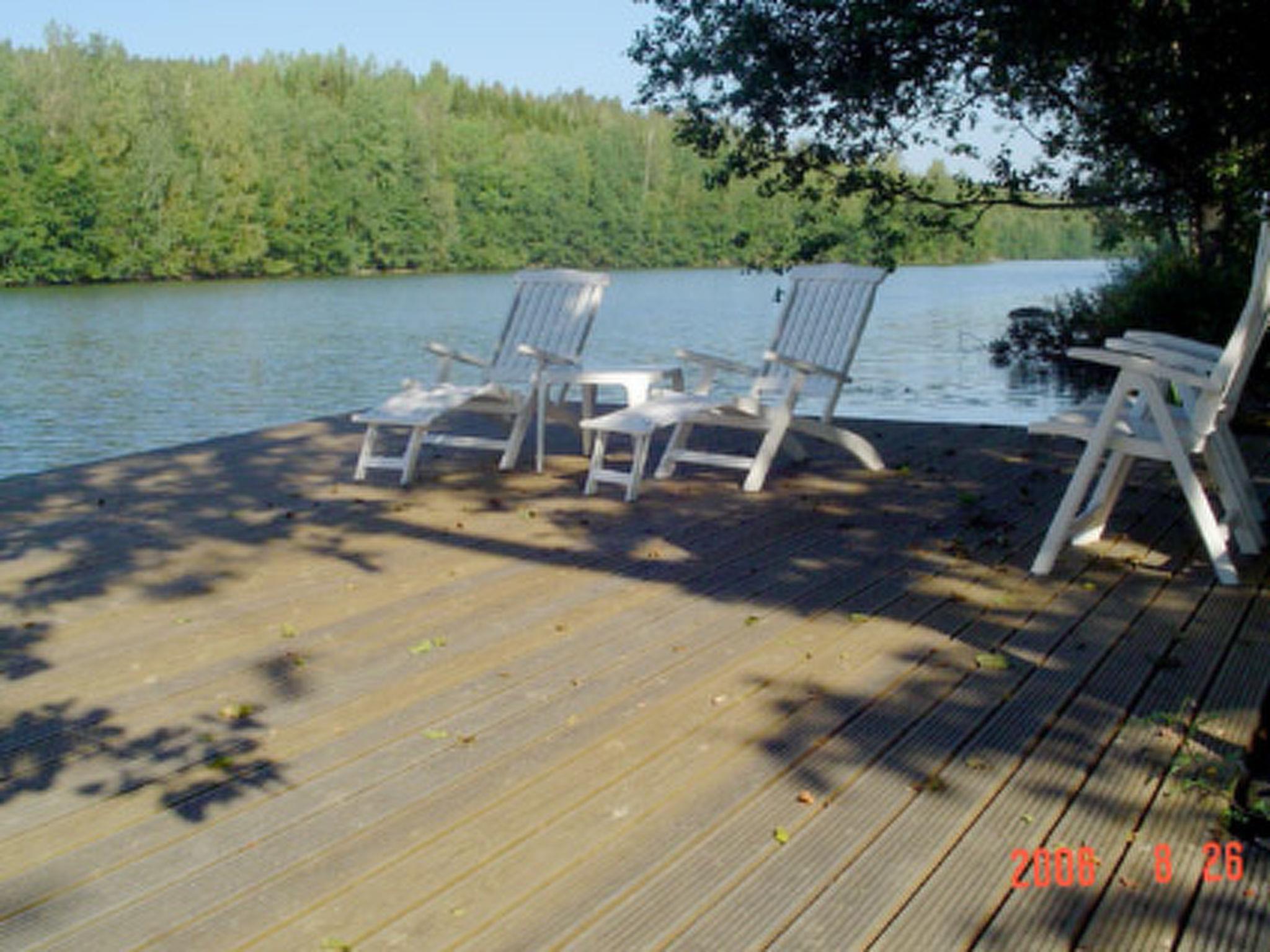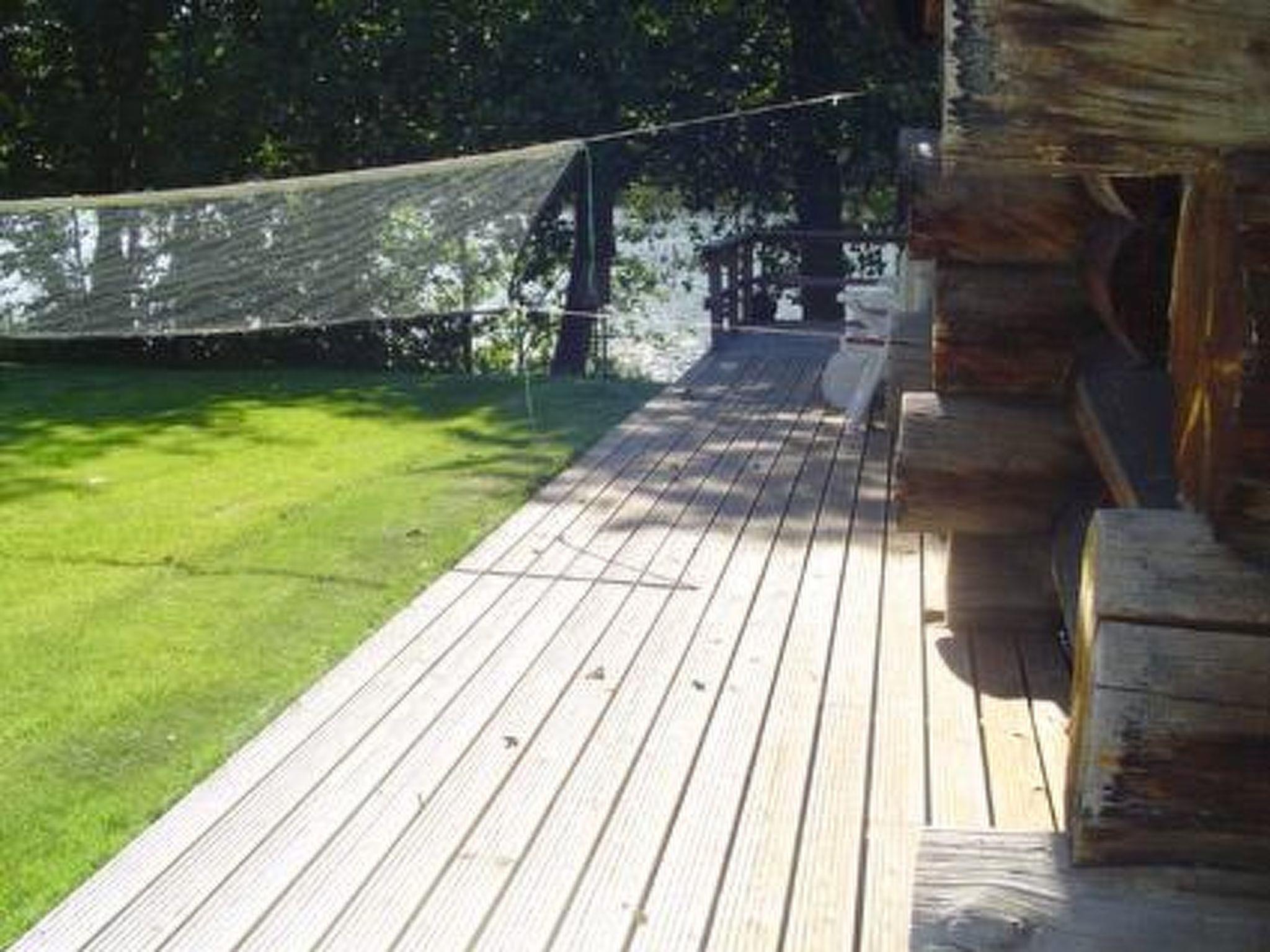39 km south of Jyväskylä. Lake Veijonjärvi 10 m (length 2 km, breadth 200 m), deep water, soft sanded mud bottom. 2 boats. Log cabin 1975, kitchenette, living room with 2 extra beds, bedroom with 2 beds, dressing room, sauna, verandas on 3 sides of the cottage. Entrance to the toilet from the outside/from terrace.