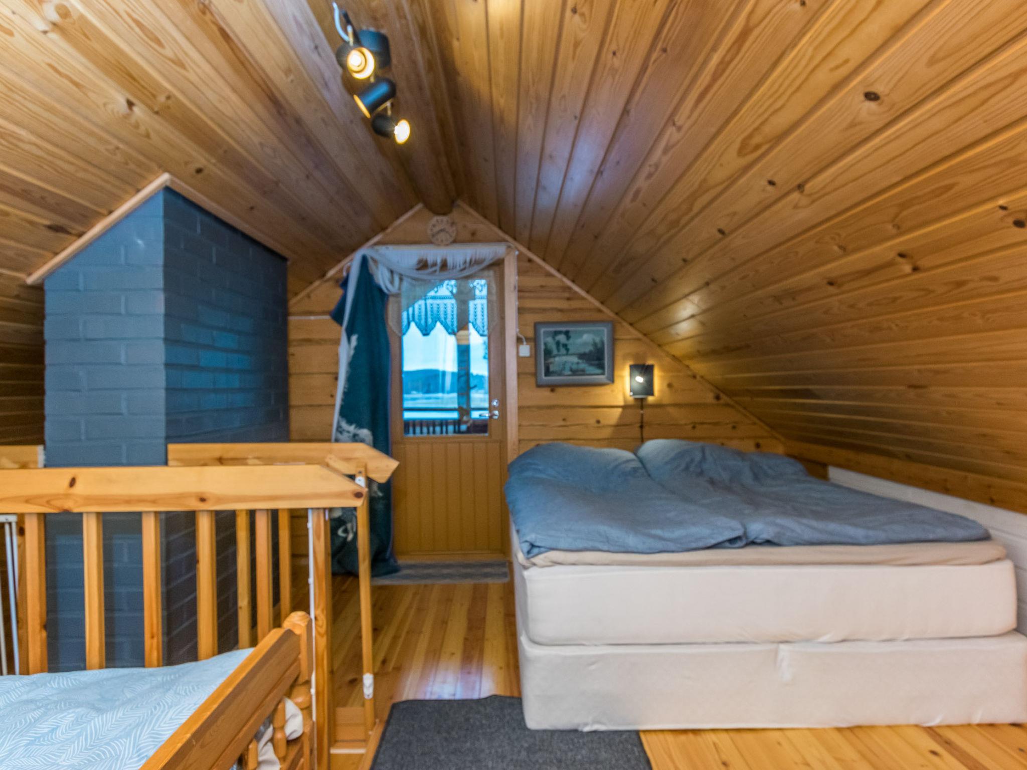 The upper floor has two double beds. The ~10 m² upper floor has sloping ceilings and relatively steep stairs. The bedside lamps are equipped with USB-A ports for charging phones and other devices. A 120/10 Mbps internet connection and wireless internet connection (Wi-Fi modem) are available.