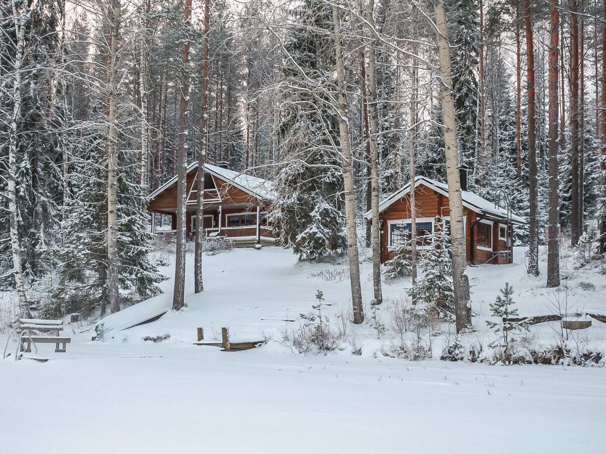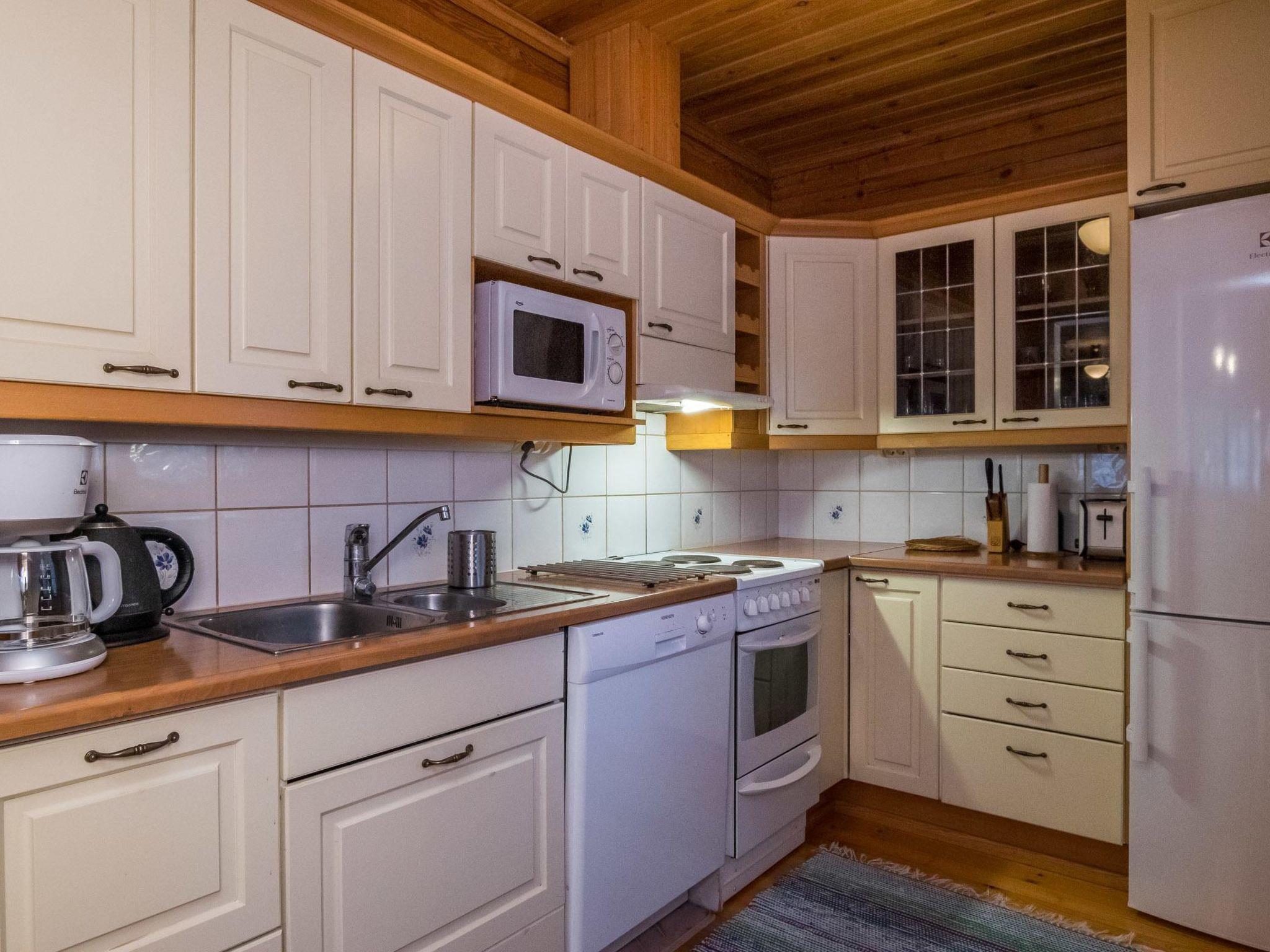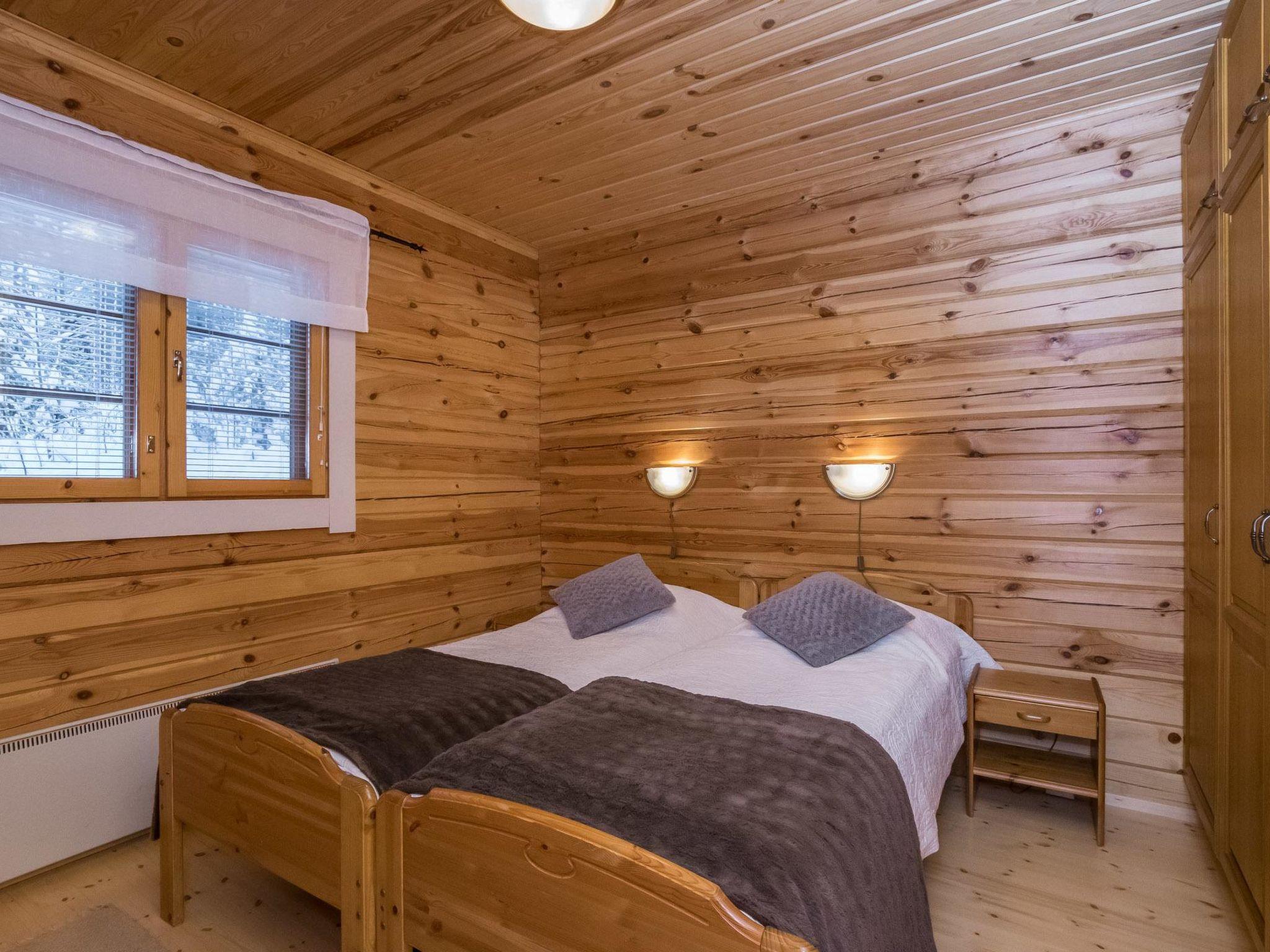 Log cabin 2001, partly renovated in 2017, kitchen, living room, bedroom with double bed and bedroom with 2 single beds, dressing room with toilet, washroom, sauna with electric stove, covered terrace. Air source heat pump, WiFi internet connection. Upstairs: bedroom with one 120 cm wide bed, supstairs lobby with 2 beds, balcony. Steep stairs to the loft, downstairs child safety gate. An additional table and chair are also available by prior arrangement, eg for teleworking.