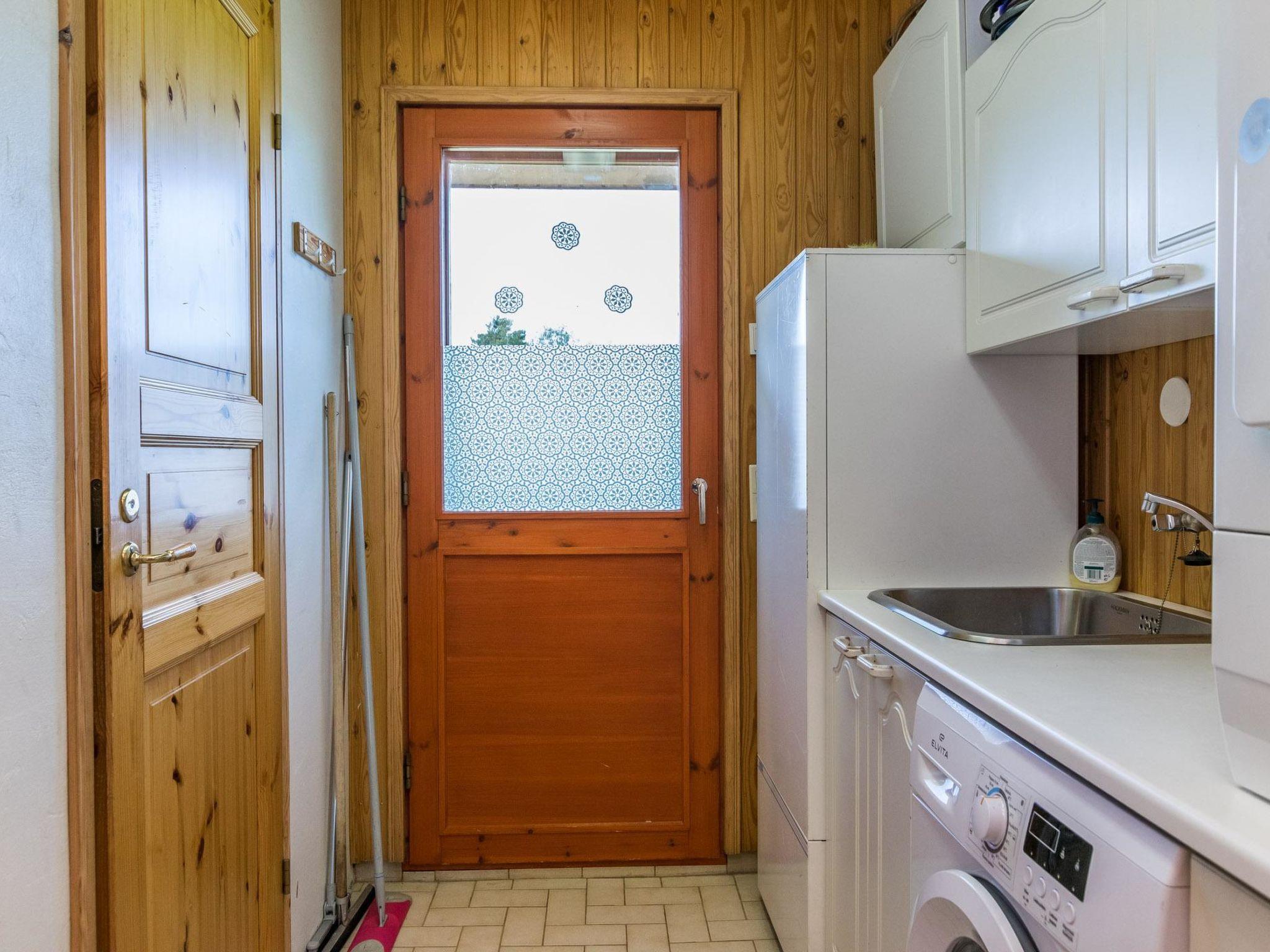 The brick-clad house was built in 1991 and includes a living room/kitchen with a sofa bed for two, 2 bedrooms—one with a double bed and the other with two single beds. Utility room, a bathroom, and a sauna with a wood-burning sauna stove. Separate WC.