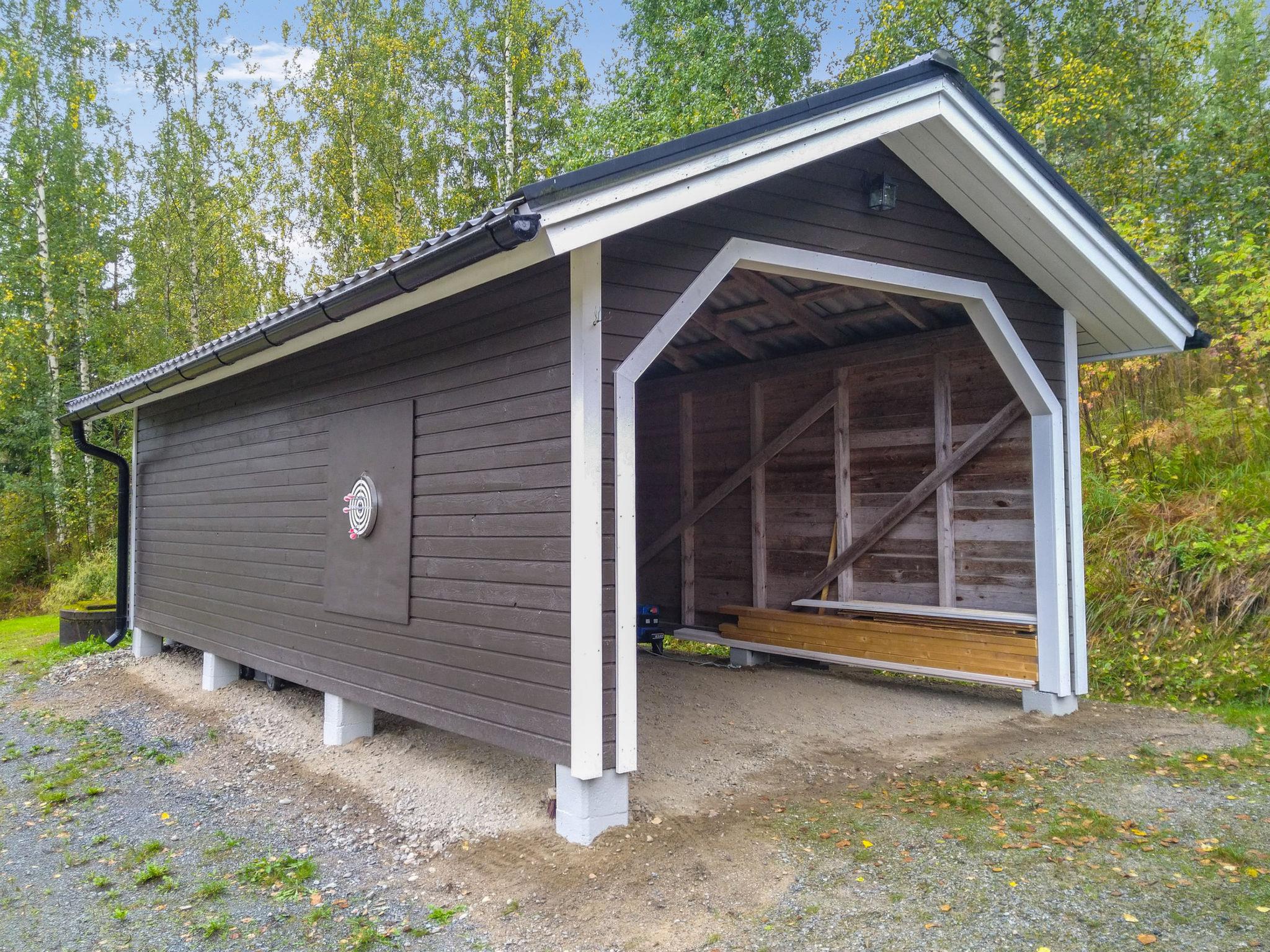 A cooking hut (10 m²) is available, equipped with a campfire site and grilling grates. There is also a carport on the property.