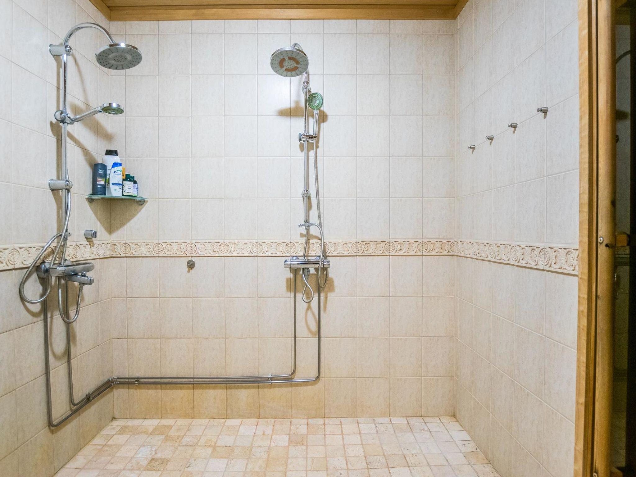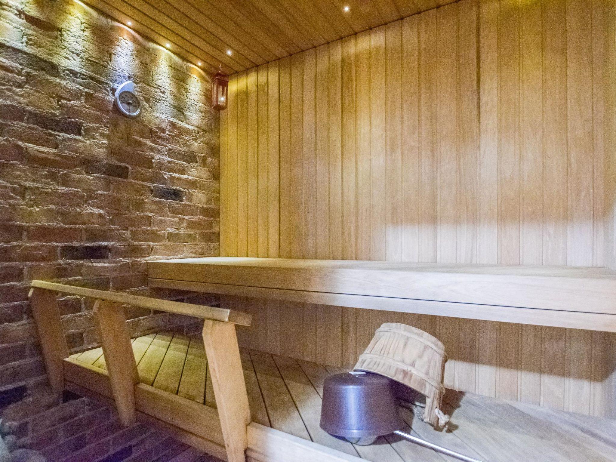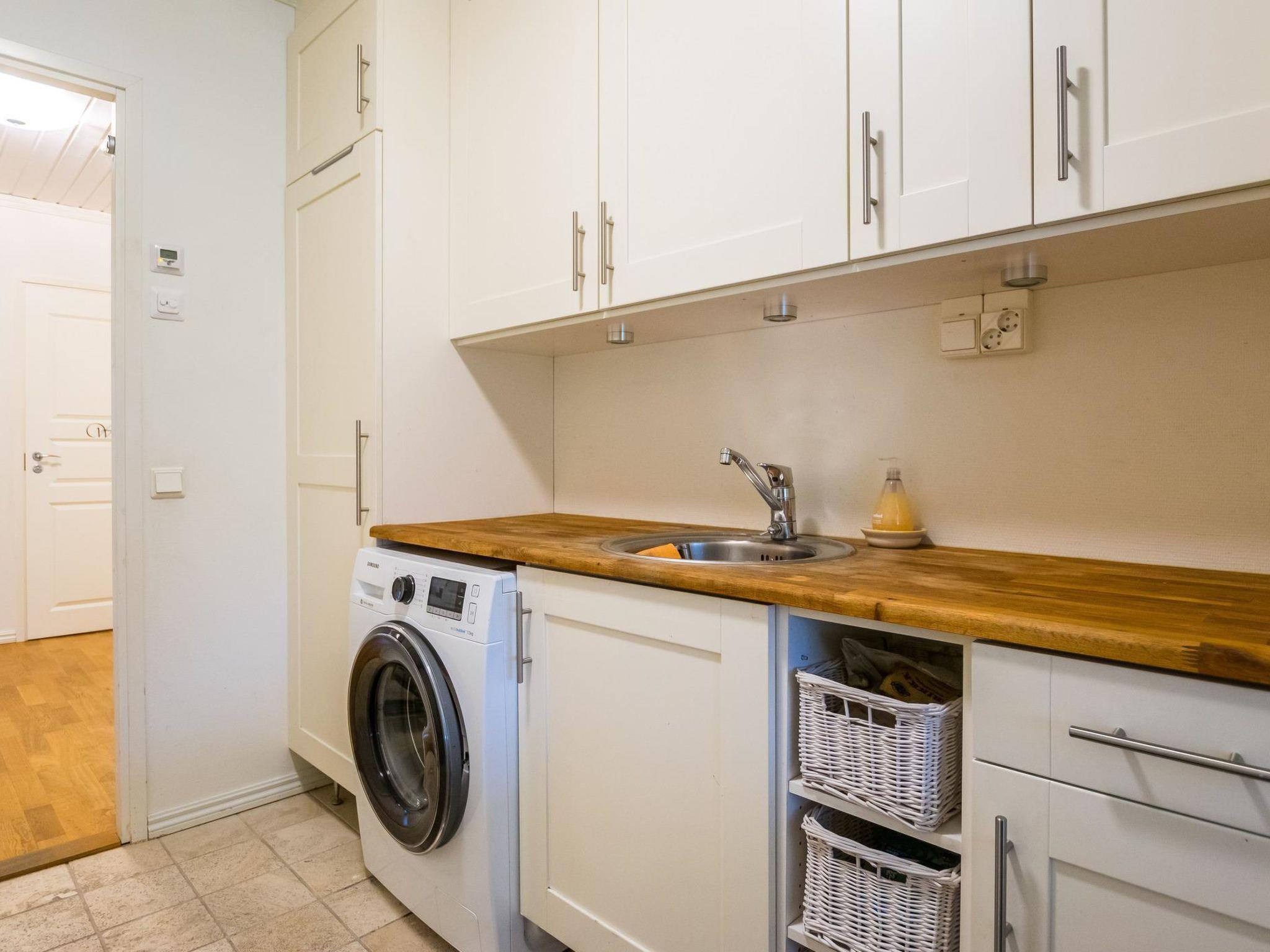 The villa includes a separate WC, a utility room with a washing machine, and a sauna (with an electric stove). The washroom features two showers.