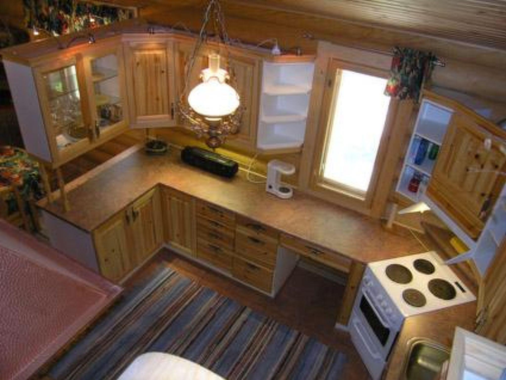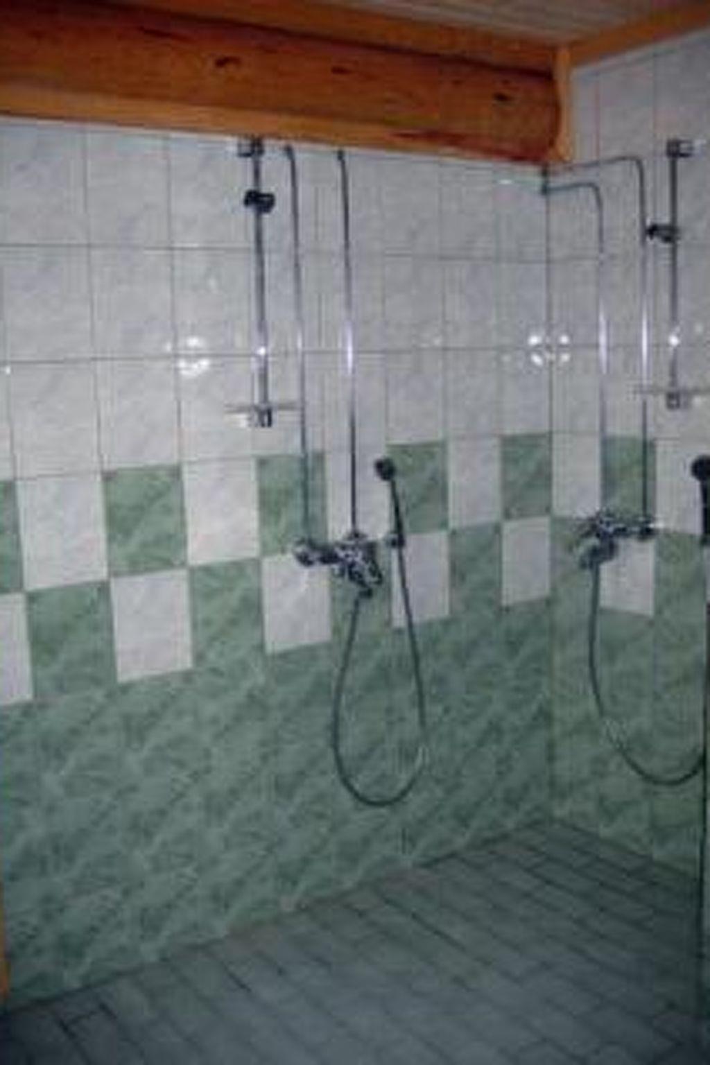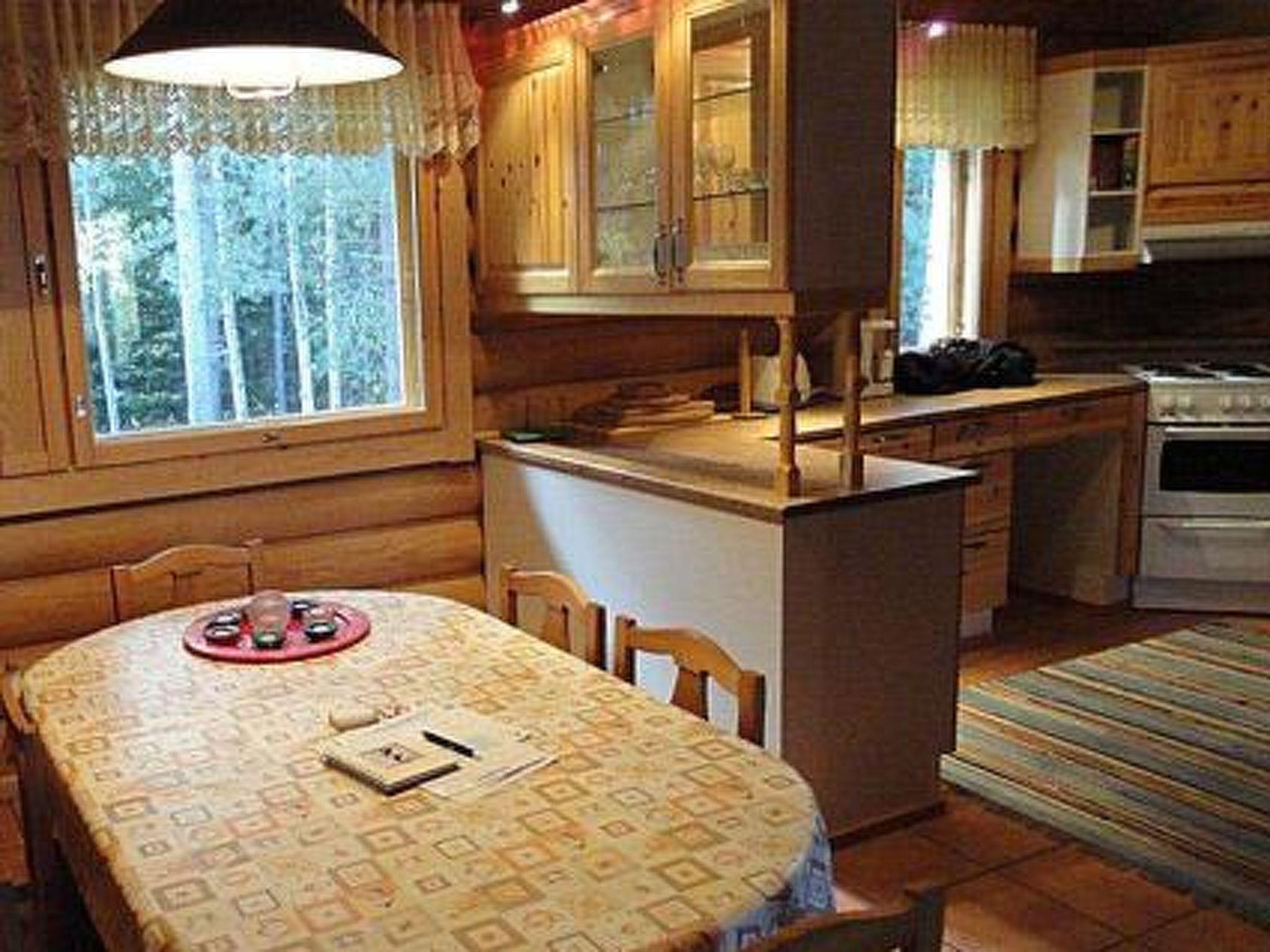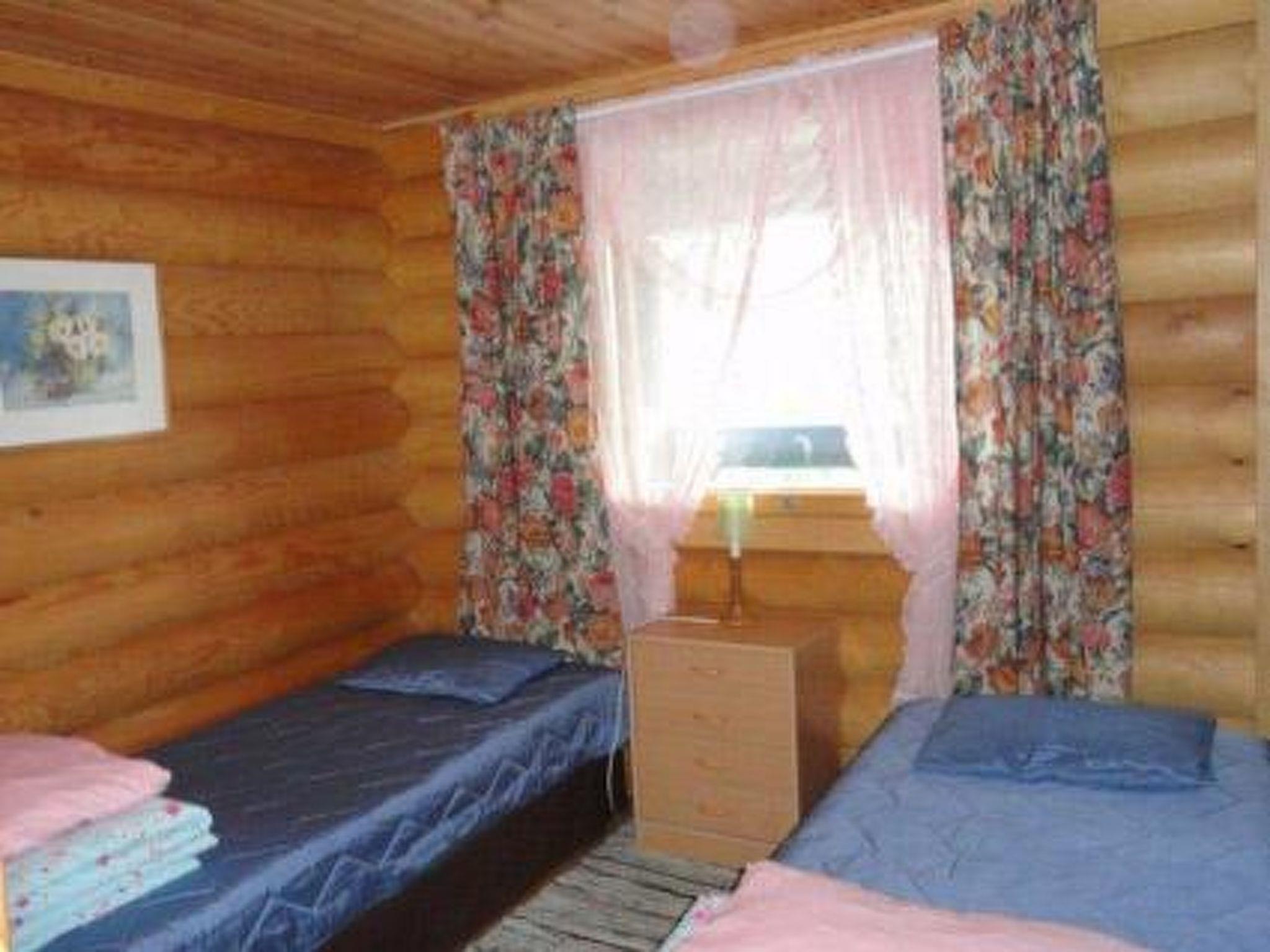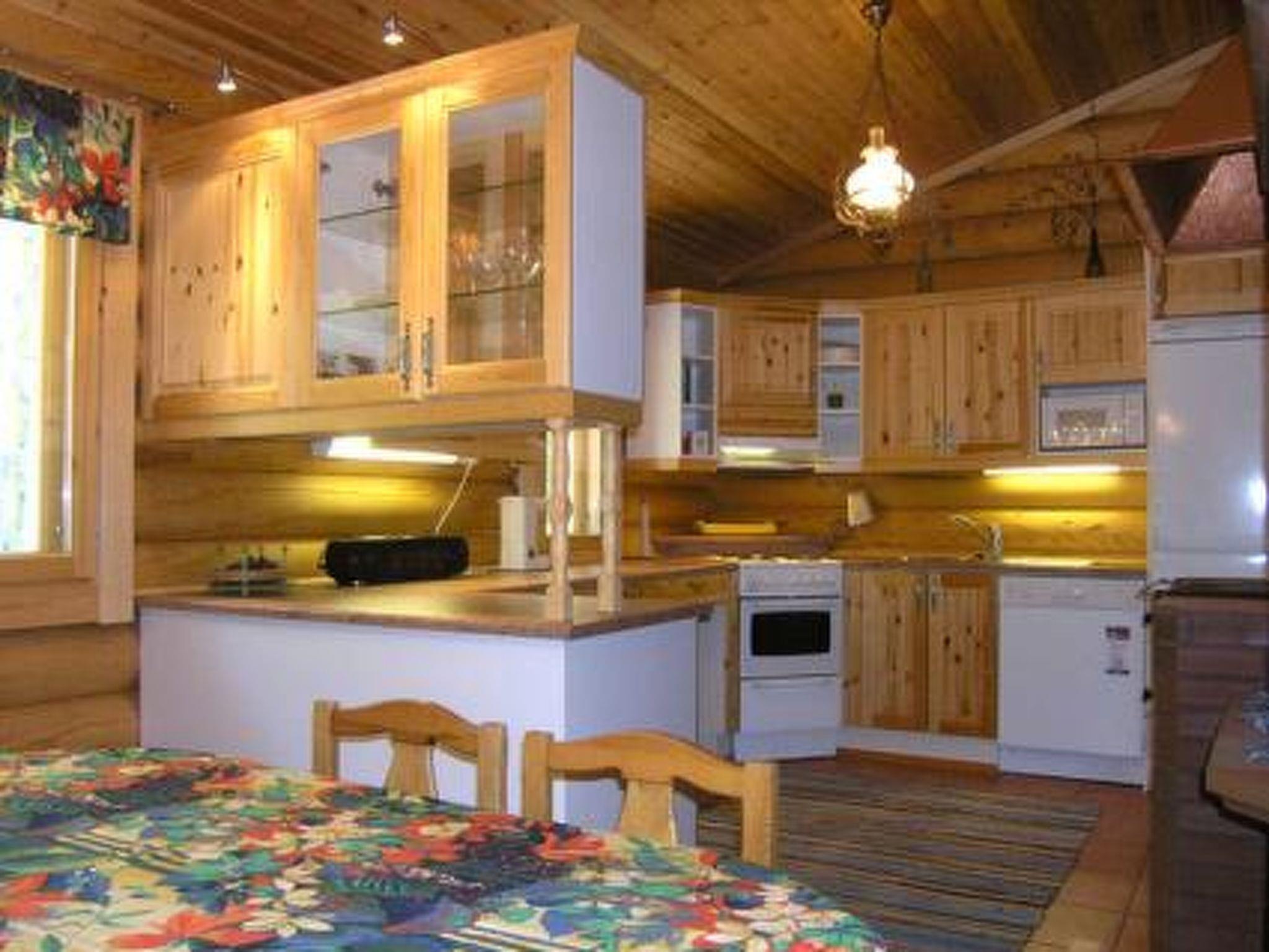 Log chalet 2004, living room/kitchen (wood-burning kitchen stove), living room convertible sofa/bed (heat-storing fireplace and baking oven), bedroom 2 beds, bedroom 2 beds (access to low sleeping loft), shallow sleeping loft with mattresses for 2, sauna (electric stove, washroom 2 showers, dressing room, 2 separate WCs. Building has underfloor heating.
