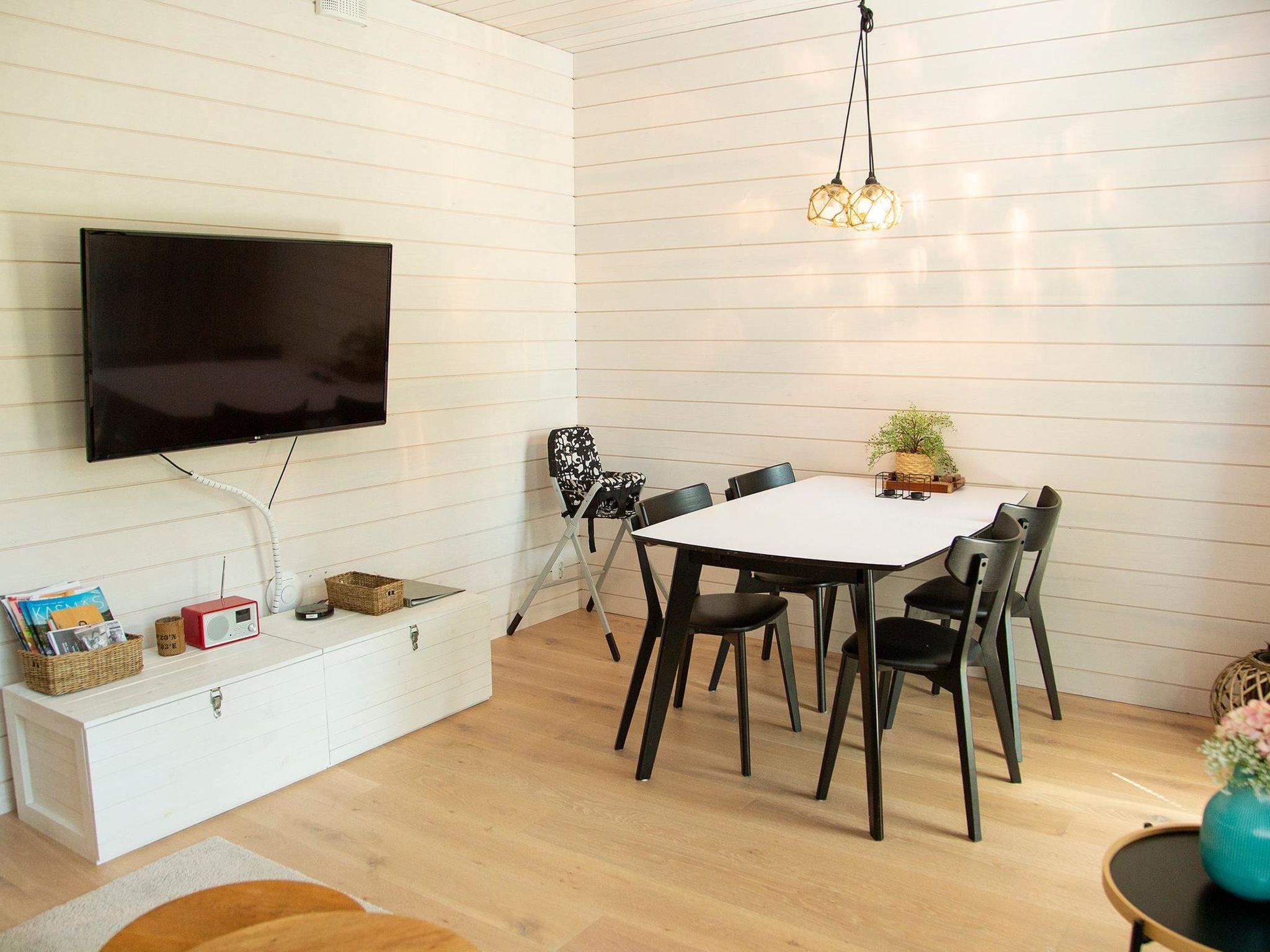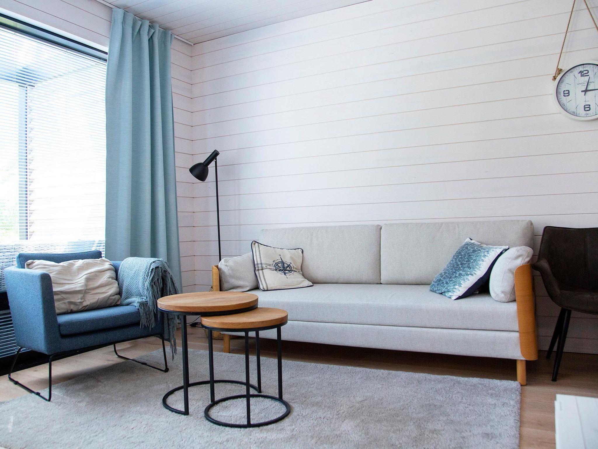 Magnificent 45 m² holiday apartment, built in May 2019. Living room with sofa bed for two, living room/kitchen, bedroom with two 90 cm wide beds, electric sauna, shower, separate WC,