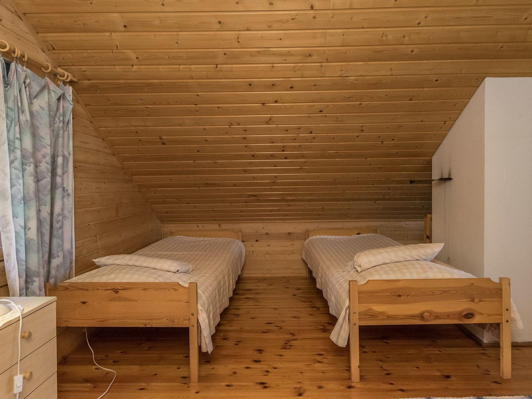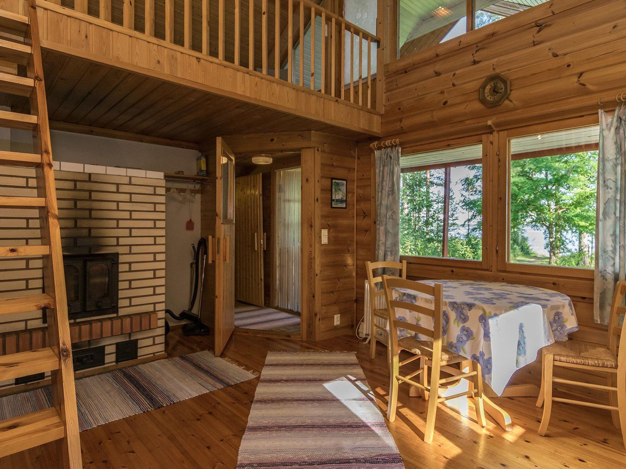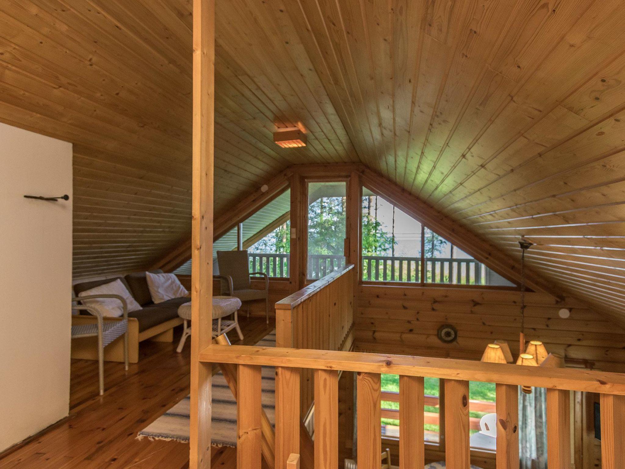 Log cabin 1993, kitchen, living room, bedroom with 2 beds, sleeping loft (steep stairs) with 4 beds, washroom, sauna, toilet, veranda, balcony.
