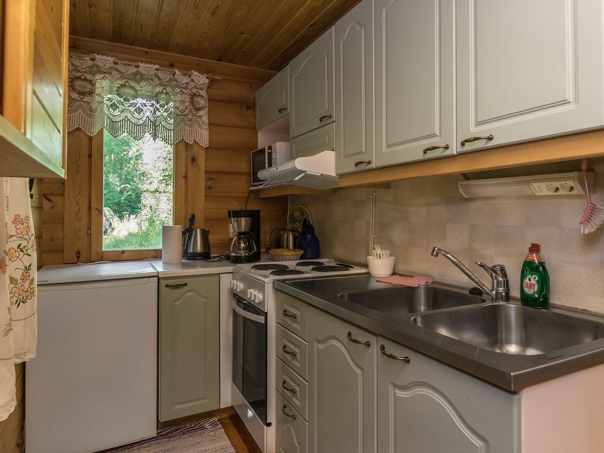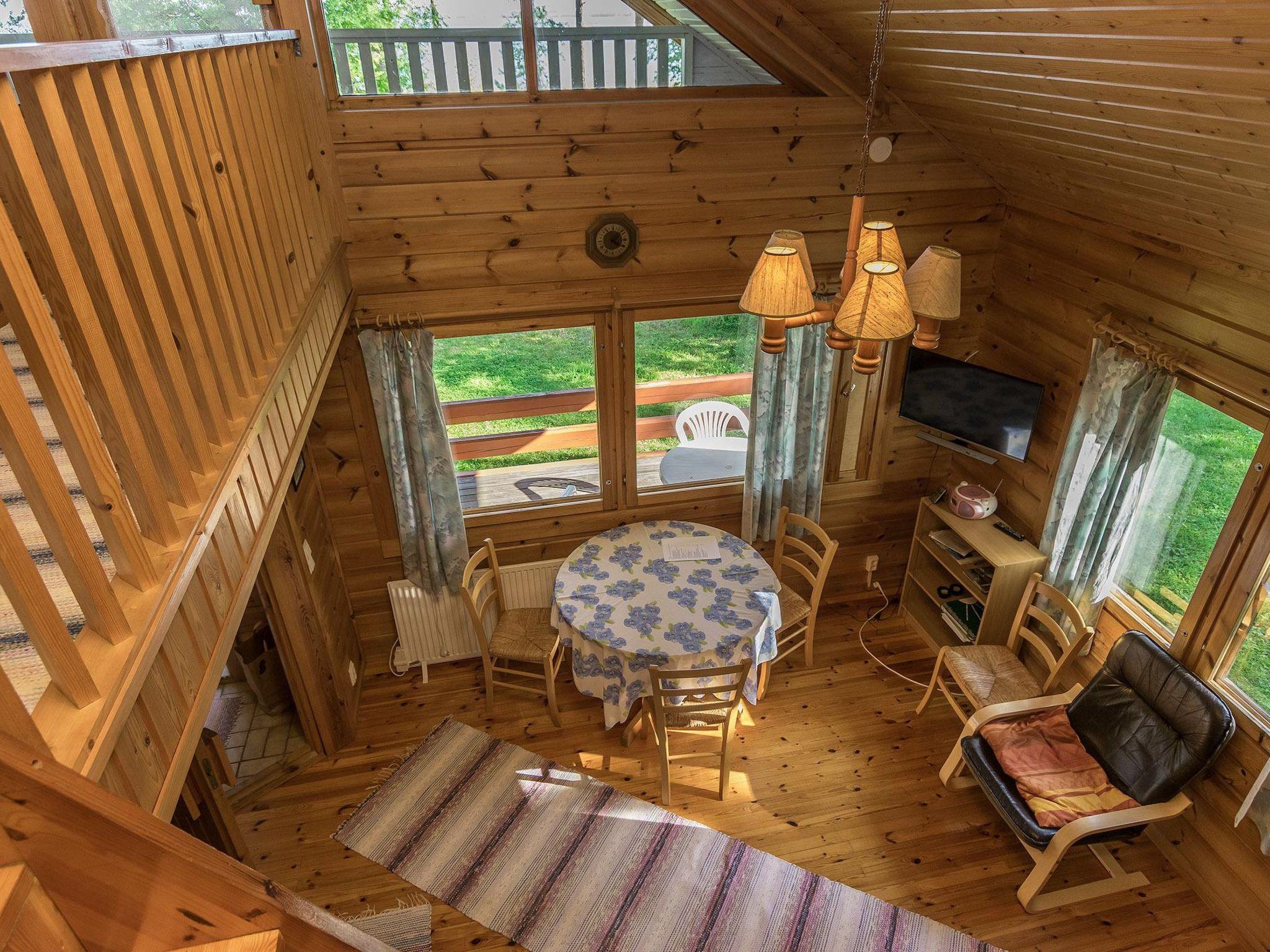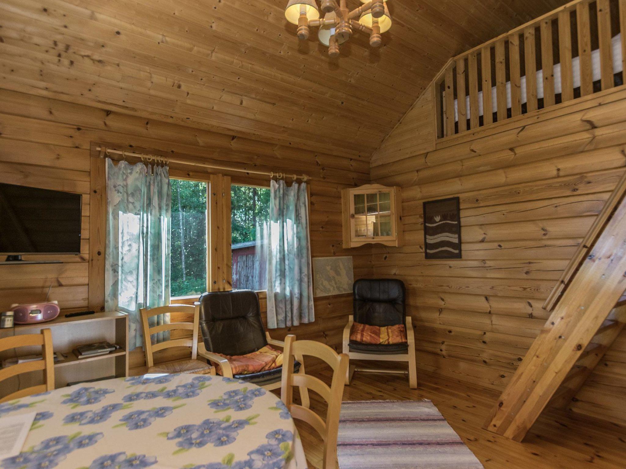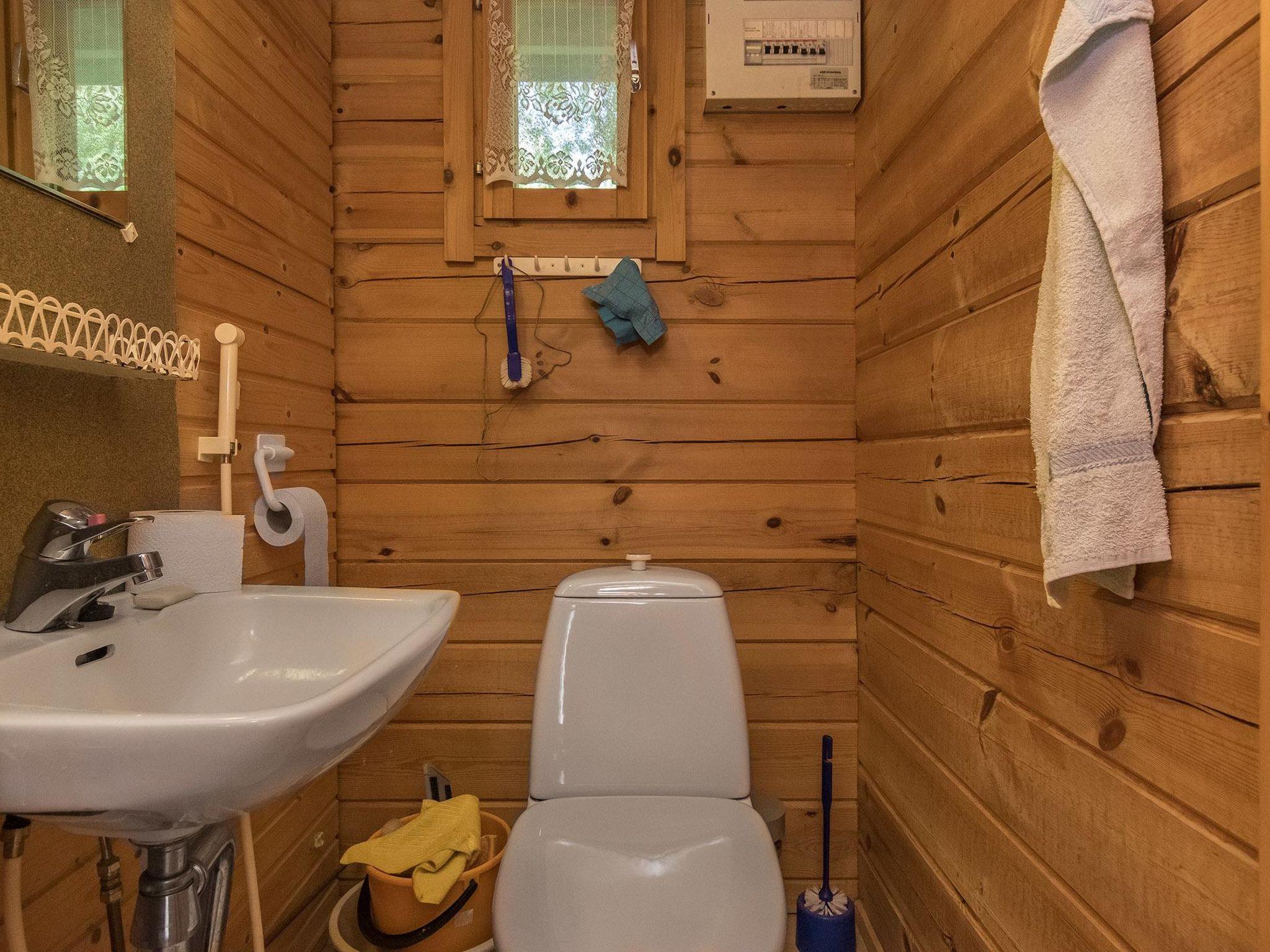 Log cabin 1993, kitchen, living room, bedroom with 2 beds, sleeping loft (steep stairs) with 4 beds, washroom, sauna, toilet, veranda, balcony.