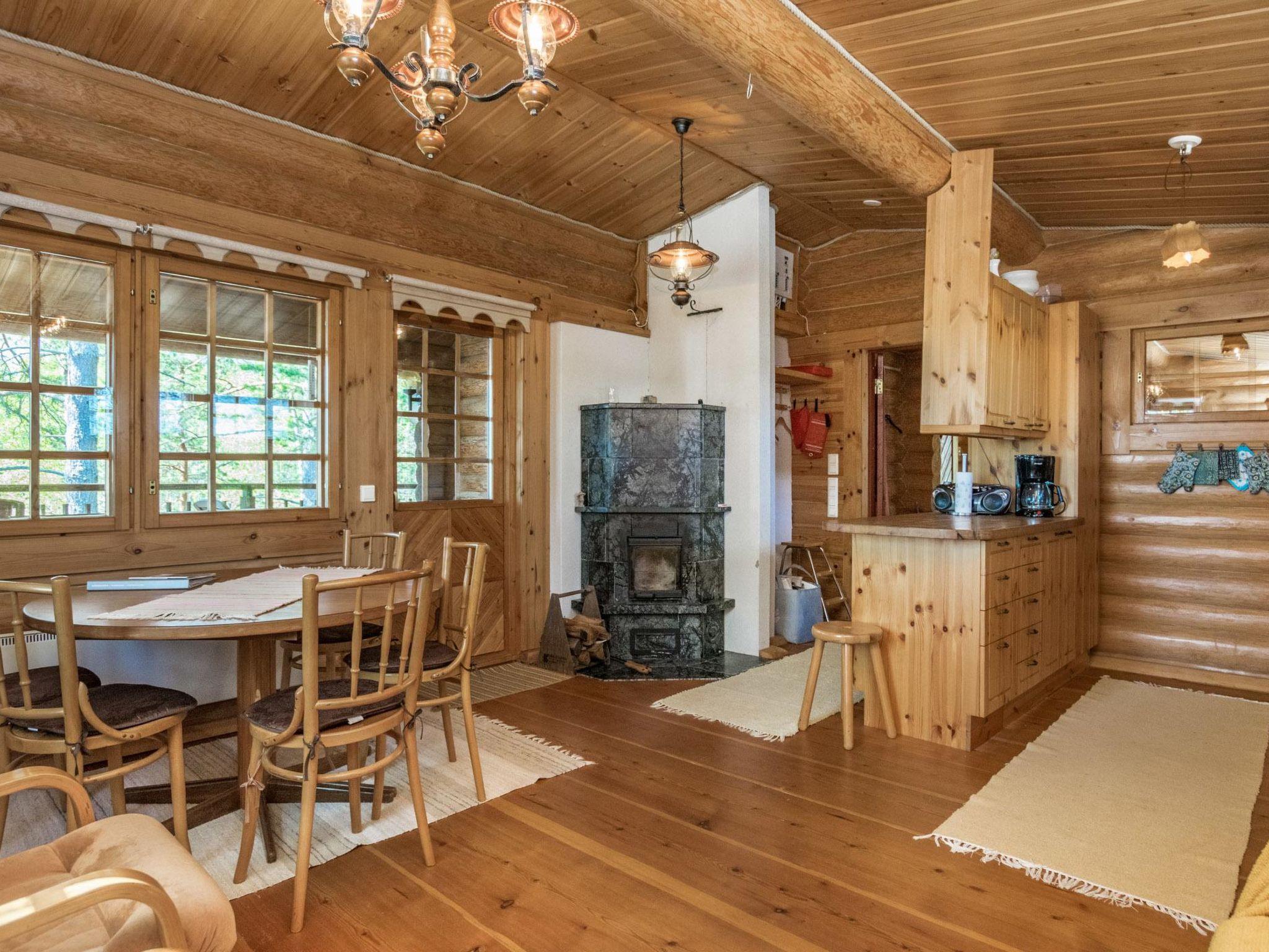 Log cottage 2000, partly renovated 2013-2014, hall, living room-kitchen with convertible sofa bed, small bedroom (7 m²) with double bed, sauna, washroom with shower and washing machine (it is under sauna's benches), dressing room/sauna's living room with sofa-bed for 1, wc, 2 terraces. Air source heat pump.
