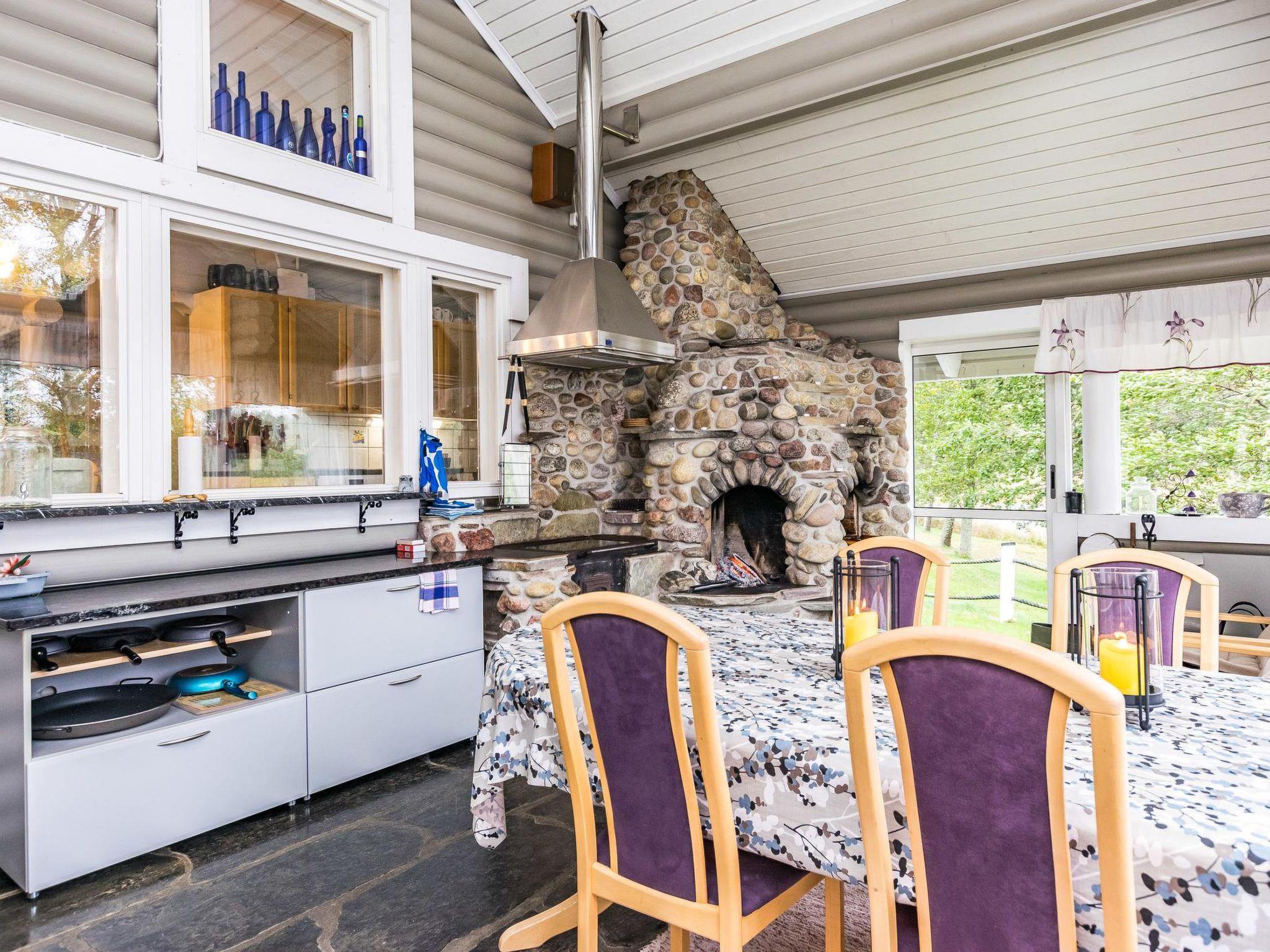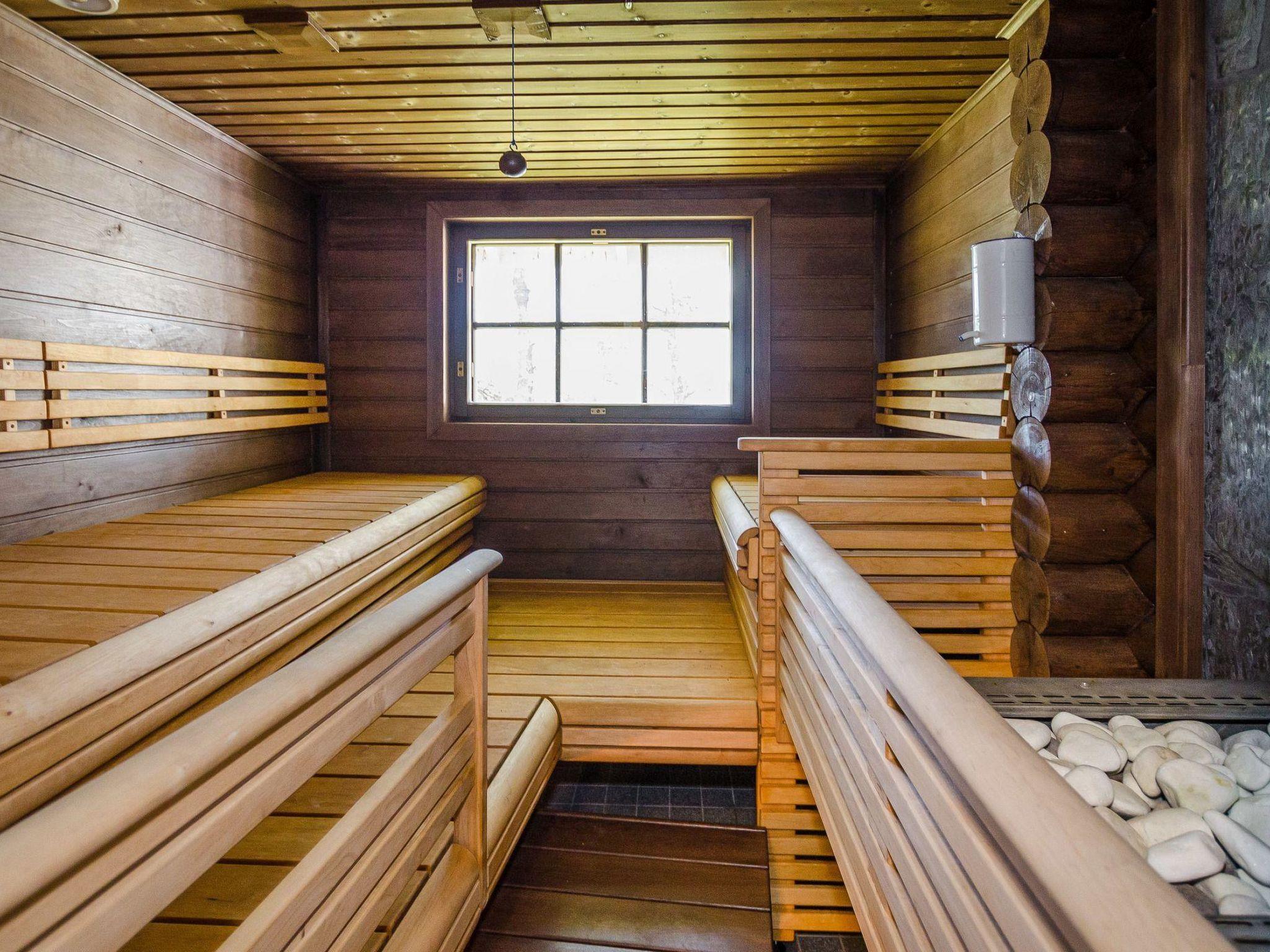 Separate sauna building 37 m², fireplace room with spreadable sofa bed, air source heat pump, fridge, washing machine, wood-burning sauna stove (heating from the fireplace room), washroom with 2 rain showers, toilet and glazed terrace 15 m². Sauna building completely renovated in 2018.
