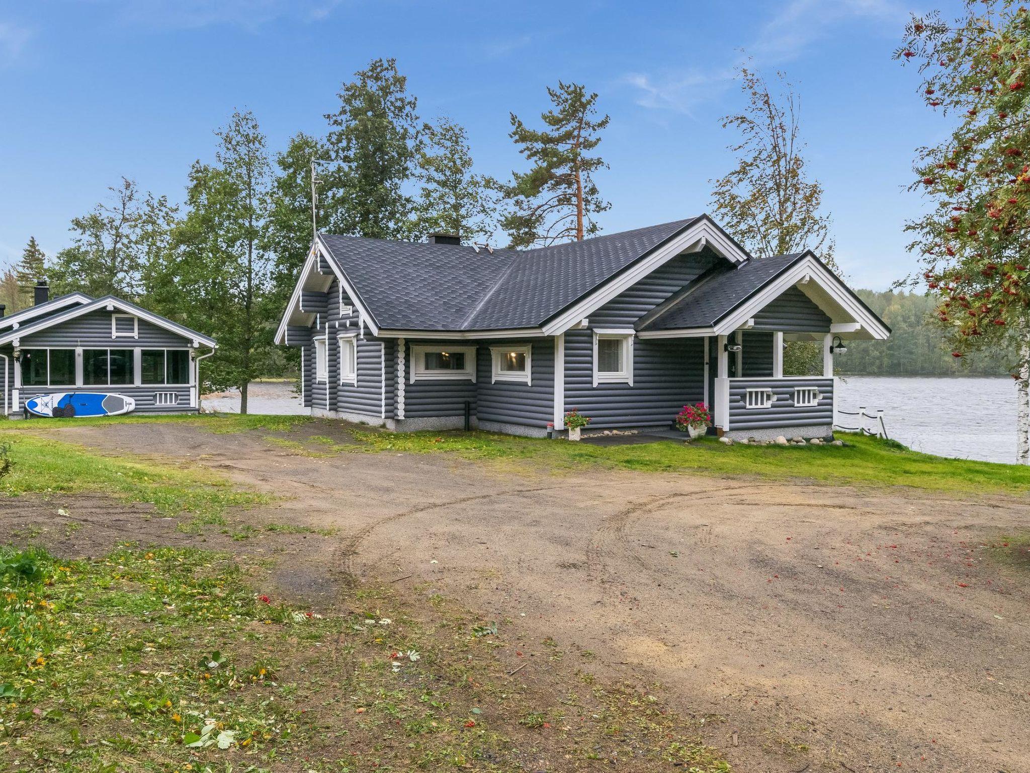 74 km to the south from Joensuu, lake Pyhäjärvi (Karelia) 15 m (206,79 km²), own beach. Holiday cabin 1984, extended in 2005 and renovated in 2008 and 2021. Living room-kitchen, bedroom with double bed, bed room with sofa bed (width 140 cm), in the loft, a double bed made of two 90 cm wide frame mattresses with a single mattress pad, mattress thickness 25 cm.