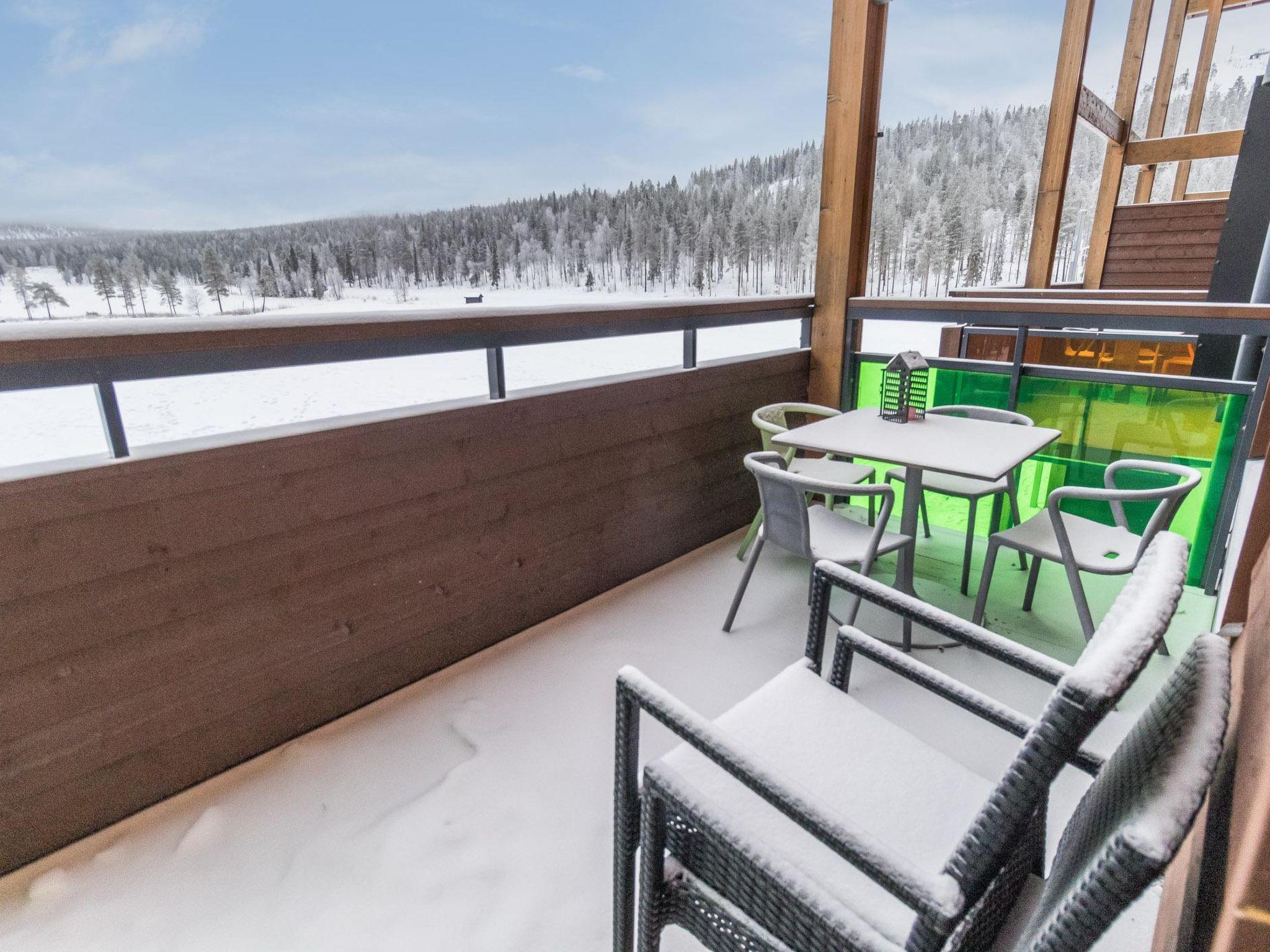 After an active day outdoors, you can unwind in the living room/kitchen area or warm up in the sauna. The bedroom features a comfortable 160 cm wide double bed, while the sleeping alcove has a 120 cm wide bed. The sofa bed in the living room is 160 cm wide (when opened). The spacious balcony offers breathtaking views of the fells, allowing you to take in the fresh mountain air from the comfort of your own space.