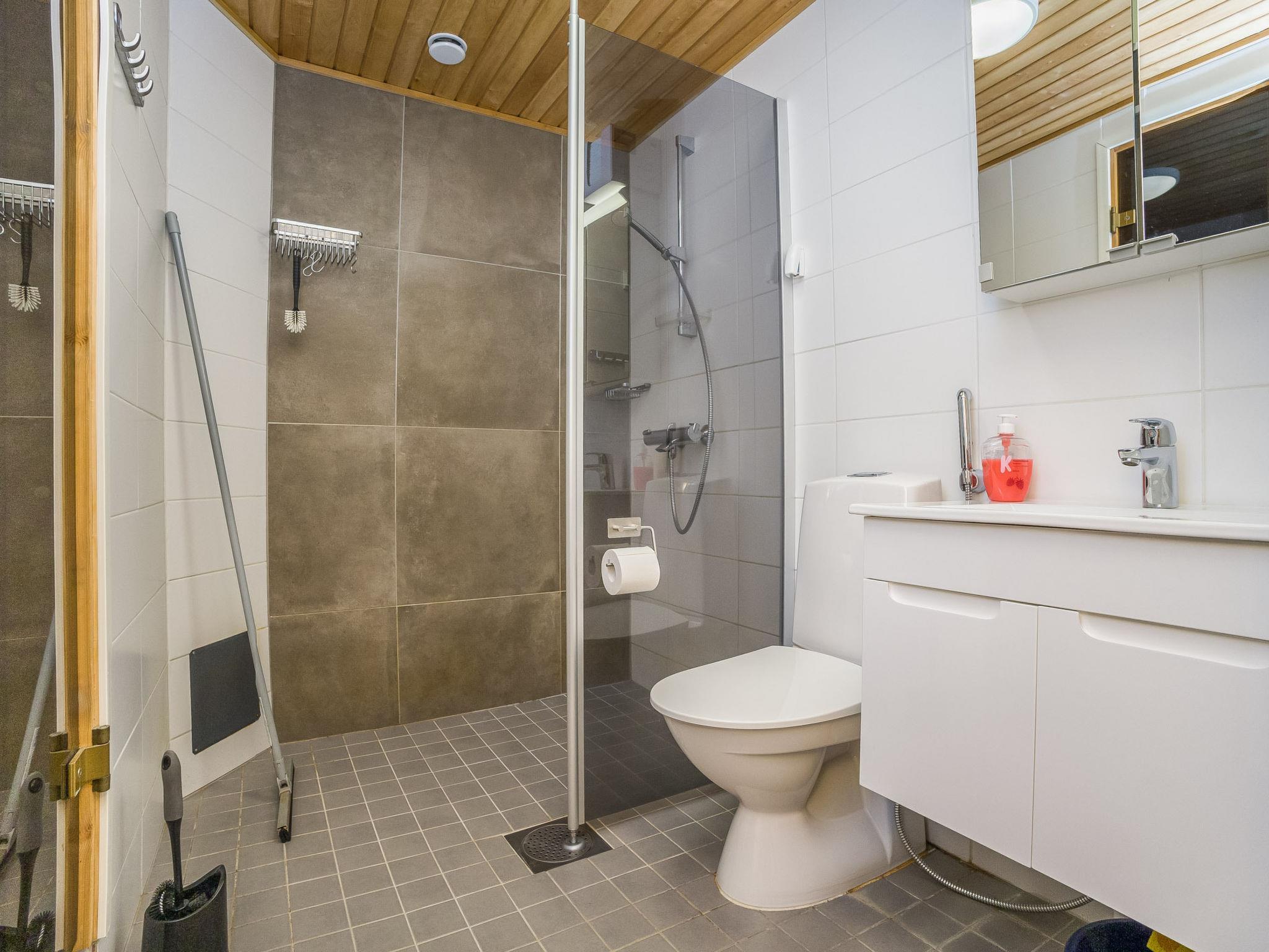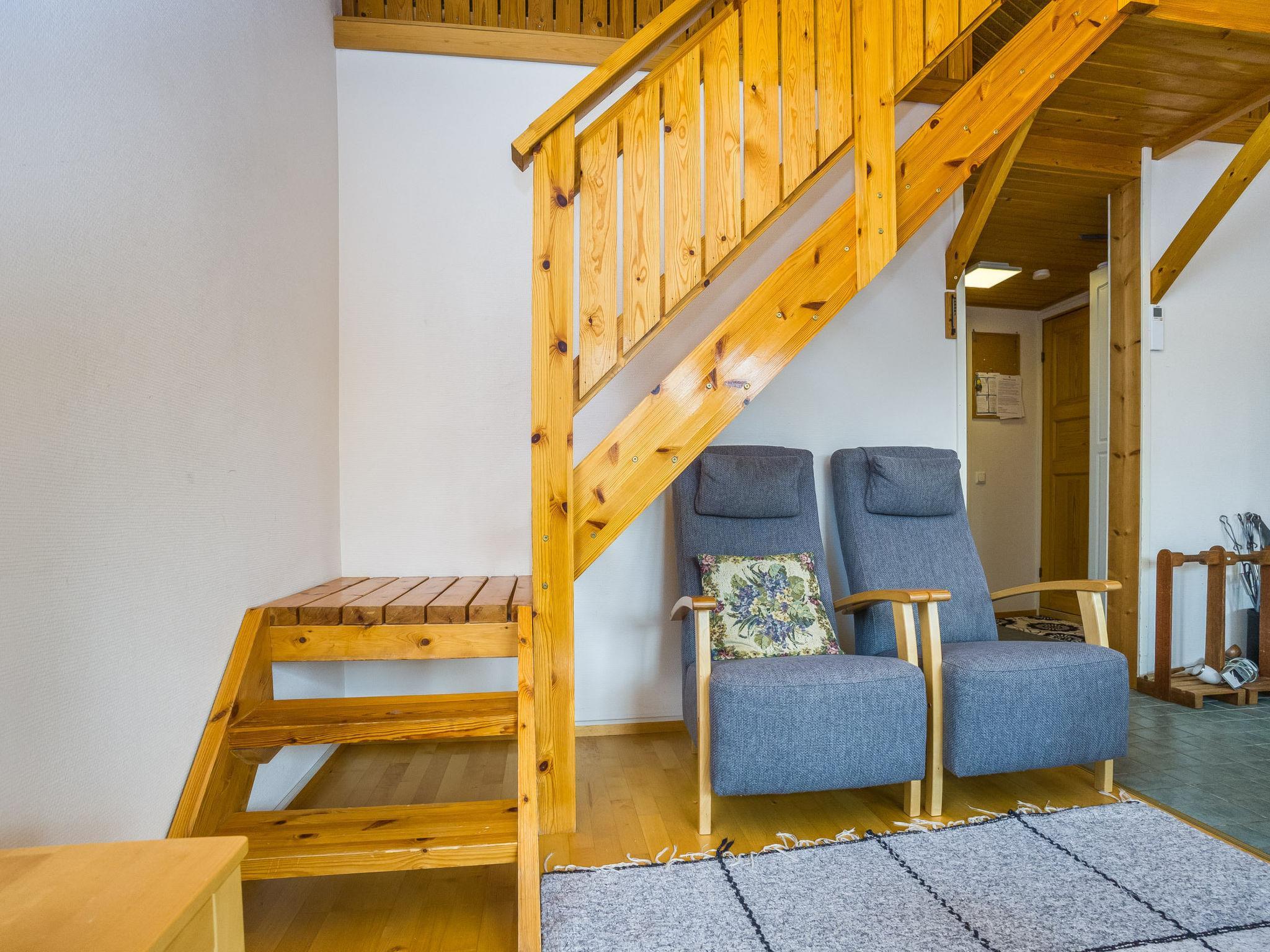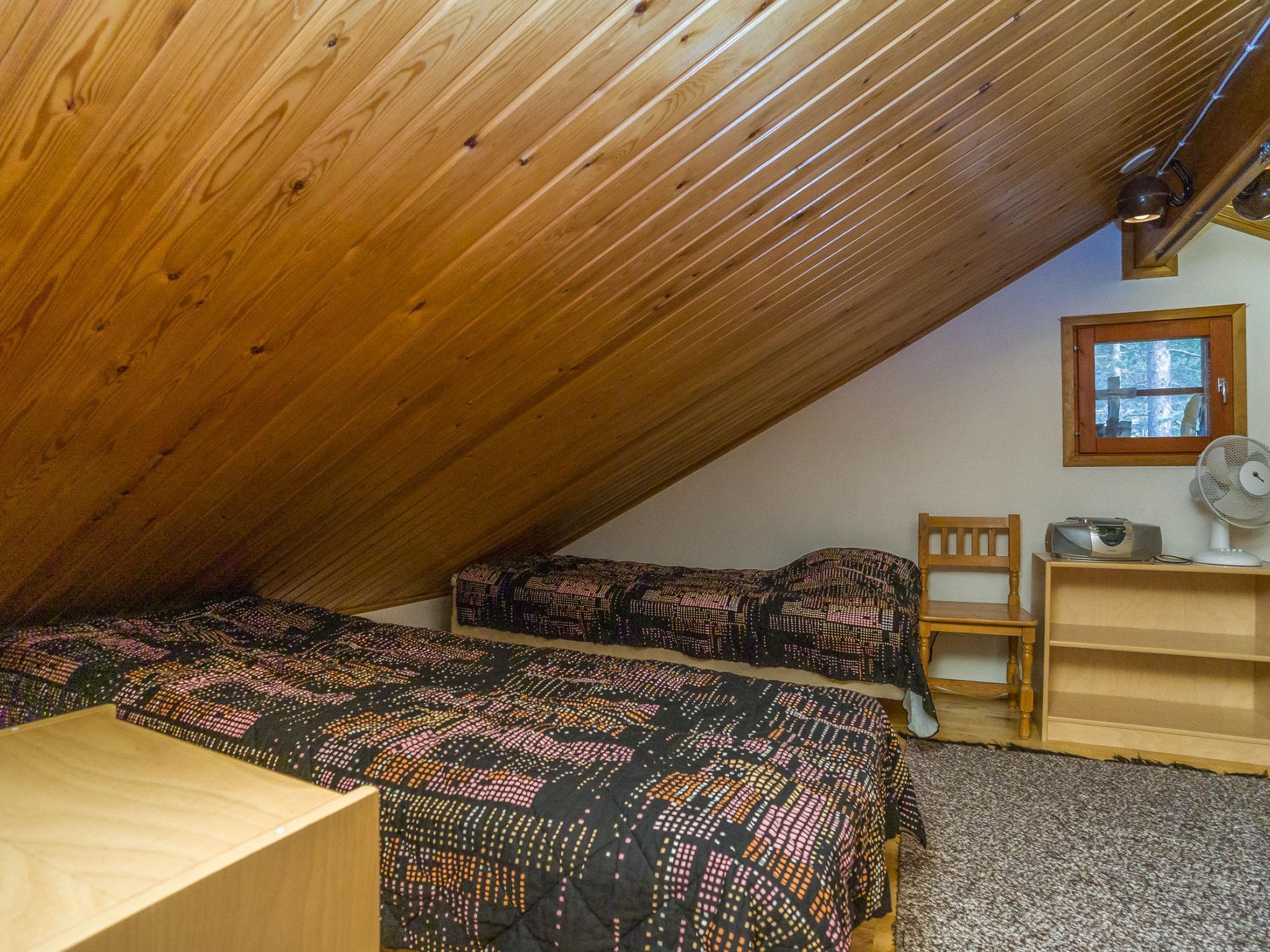 A cozy apartment built in 1980 in Koutamaa, Levi. The apartment's lower level features one bedroom with a 160 cm wide double bed. Upstairs, in the open loft, there are four 80 cm wide beds.