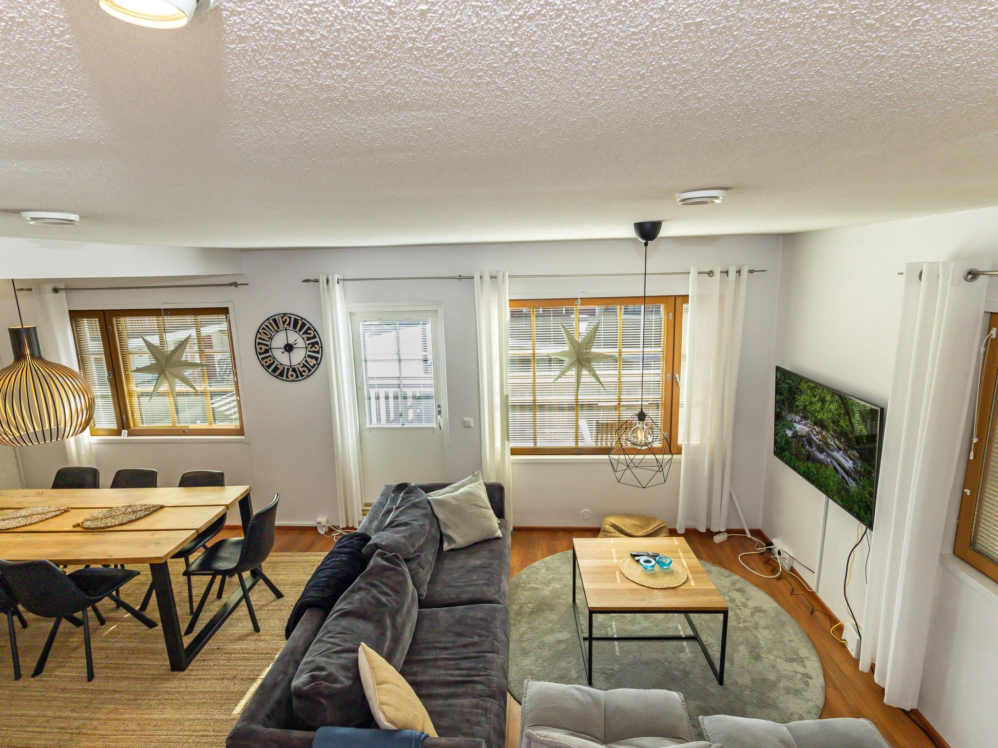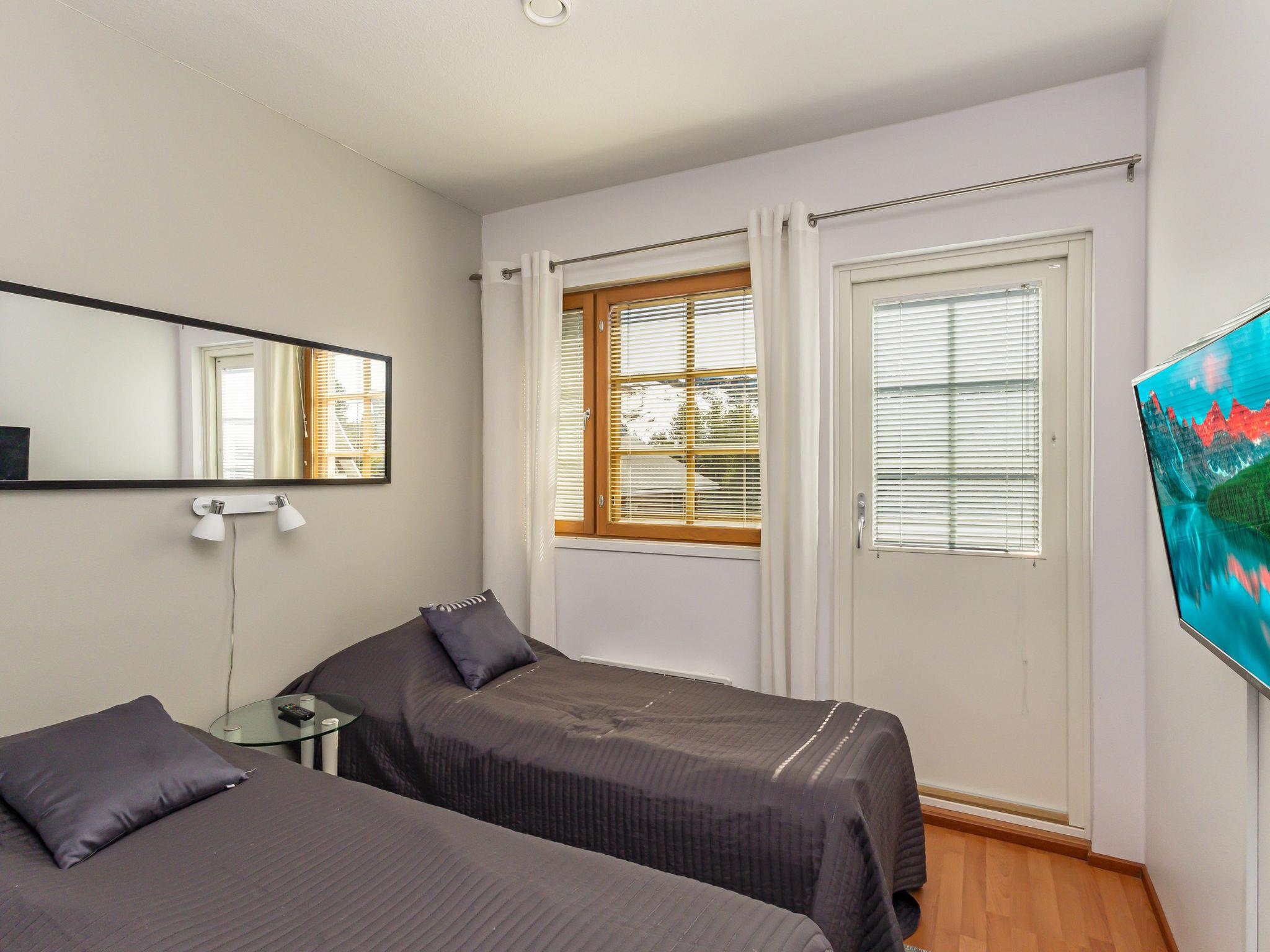This cozy alpine-style house, completed in 2009, offers an excellent setting for a relaxing holiday in the scenic landscapes of Levi. With five bedrooms, there's plenty of space for larger families or groups of friends. The main bedroom on the ground floor is furnished with a 160 cm wide double bed. The upstairs bedrooms feature two single beds (80 cm wide). The bright and spacious living room/kitchen is ideal for dining, socializing, and spending time together.