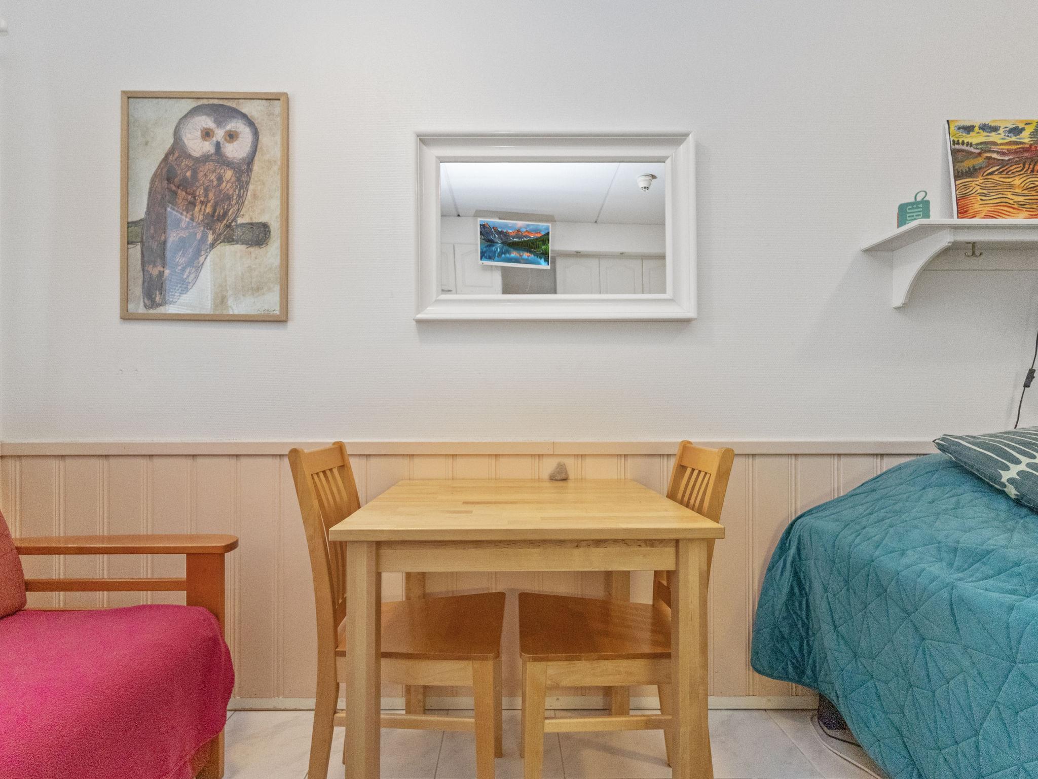 Compact apartment built in 2004, centrally located in Levi Ski Resort. The living room/kitchen features two 80 cm wide beds that can be placed together or separated as needed. The apartment also has a sauna and a washroom with WC, plus a small dining group for two.