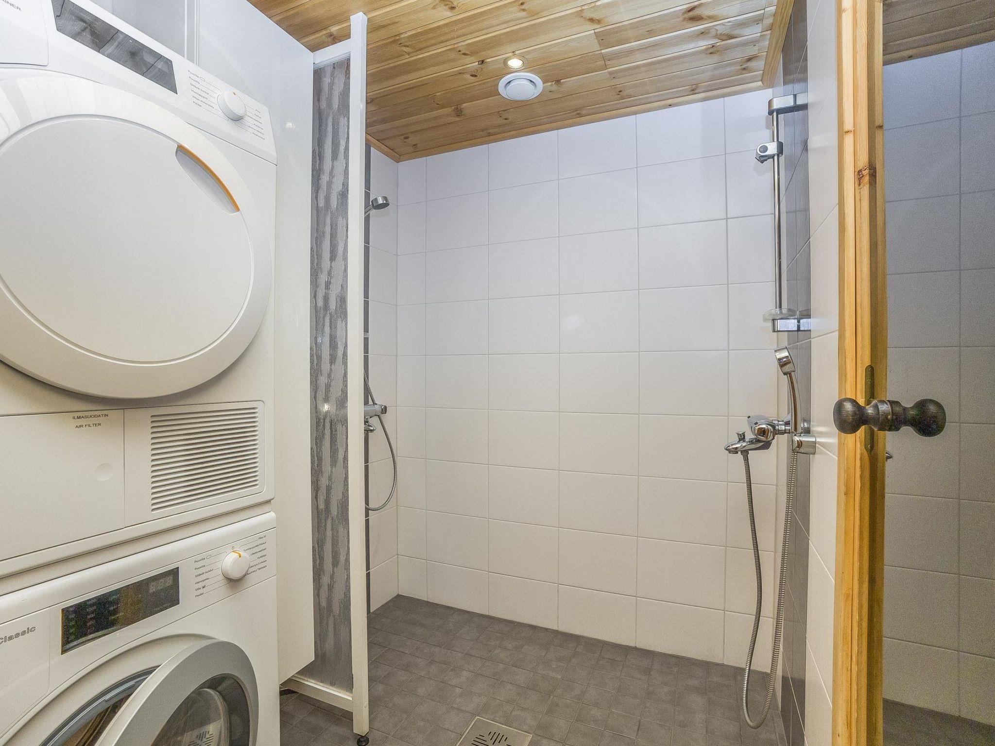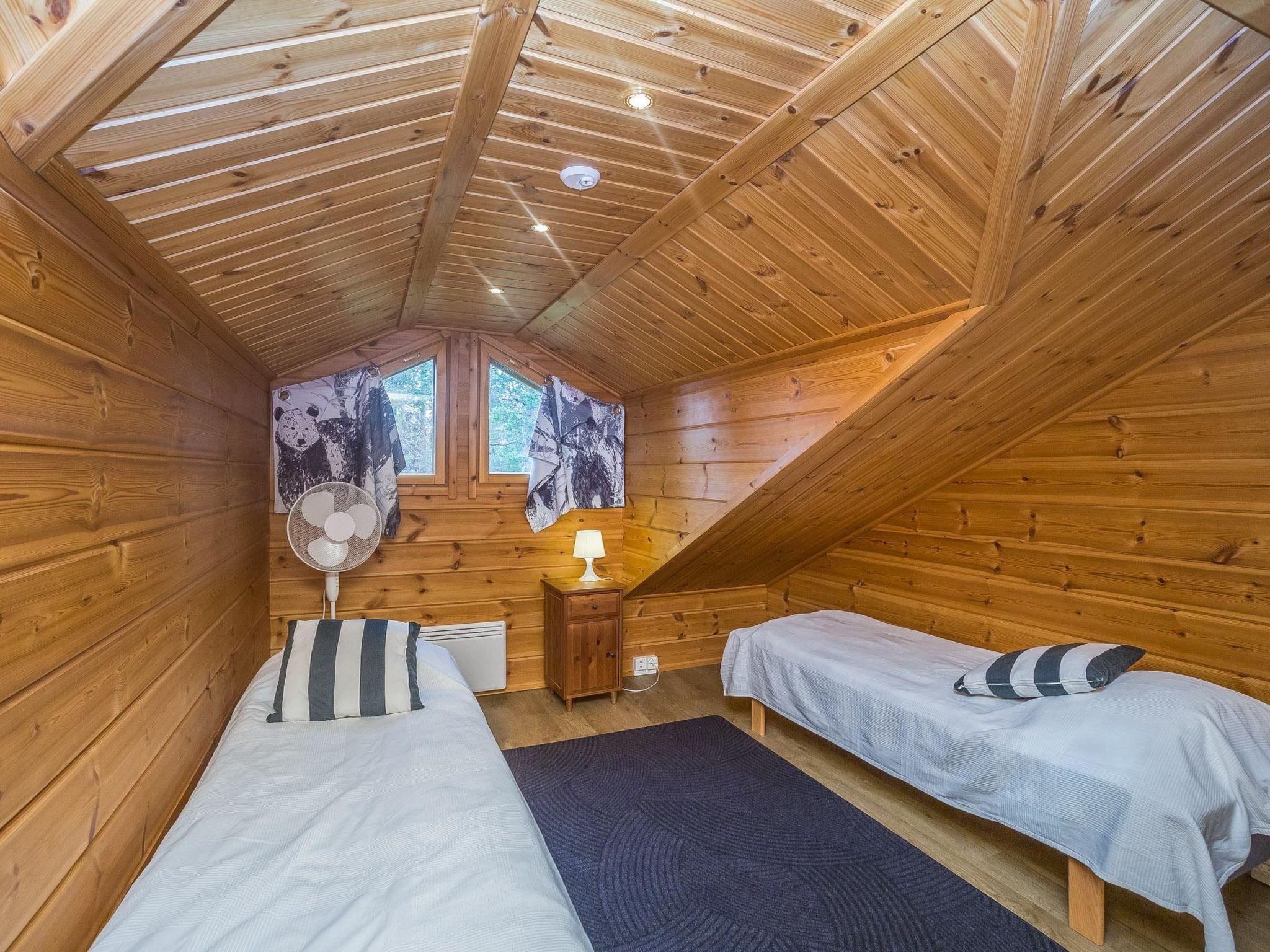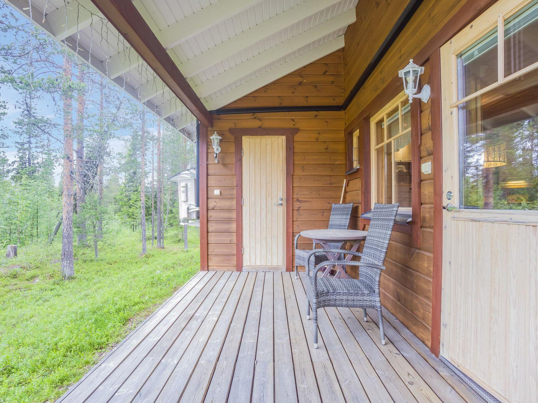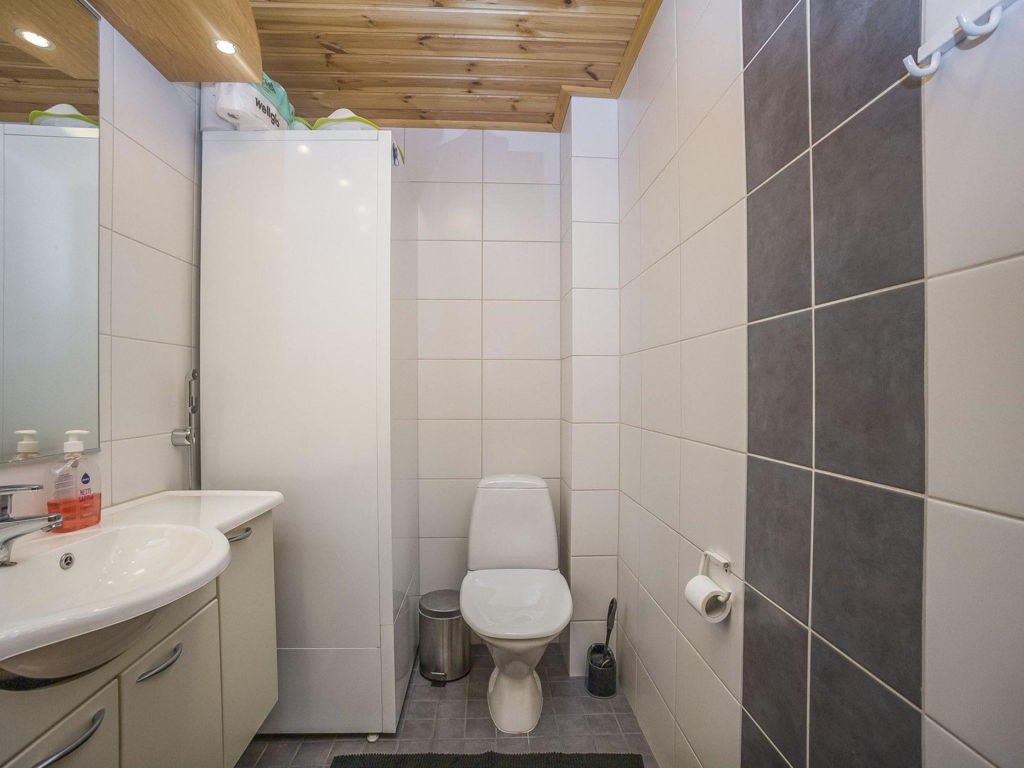 The well-equipped kitchen, cozy living area, and bathroom with an electric sauna provide a great setting for a relaxing vacation.