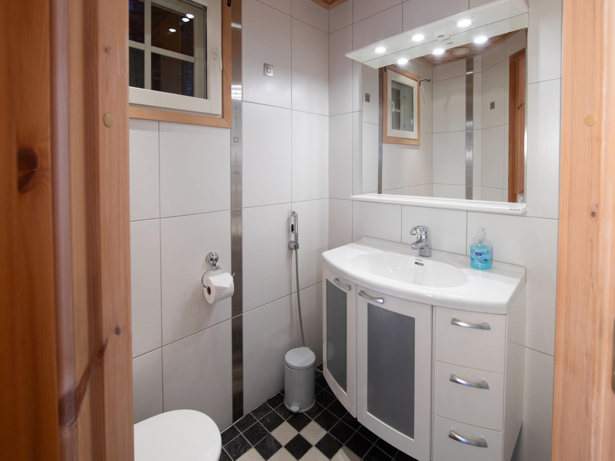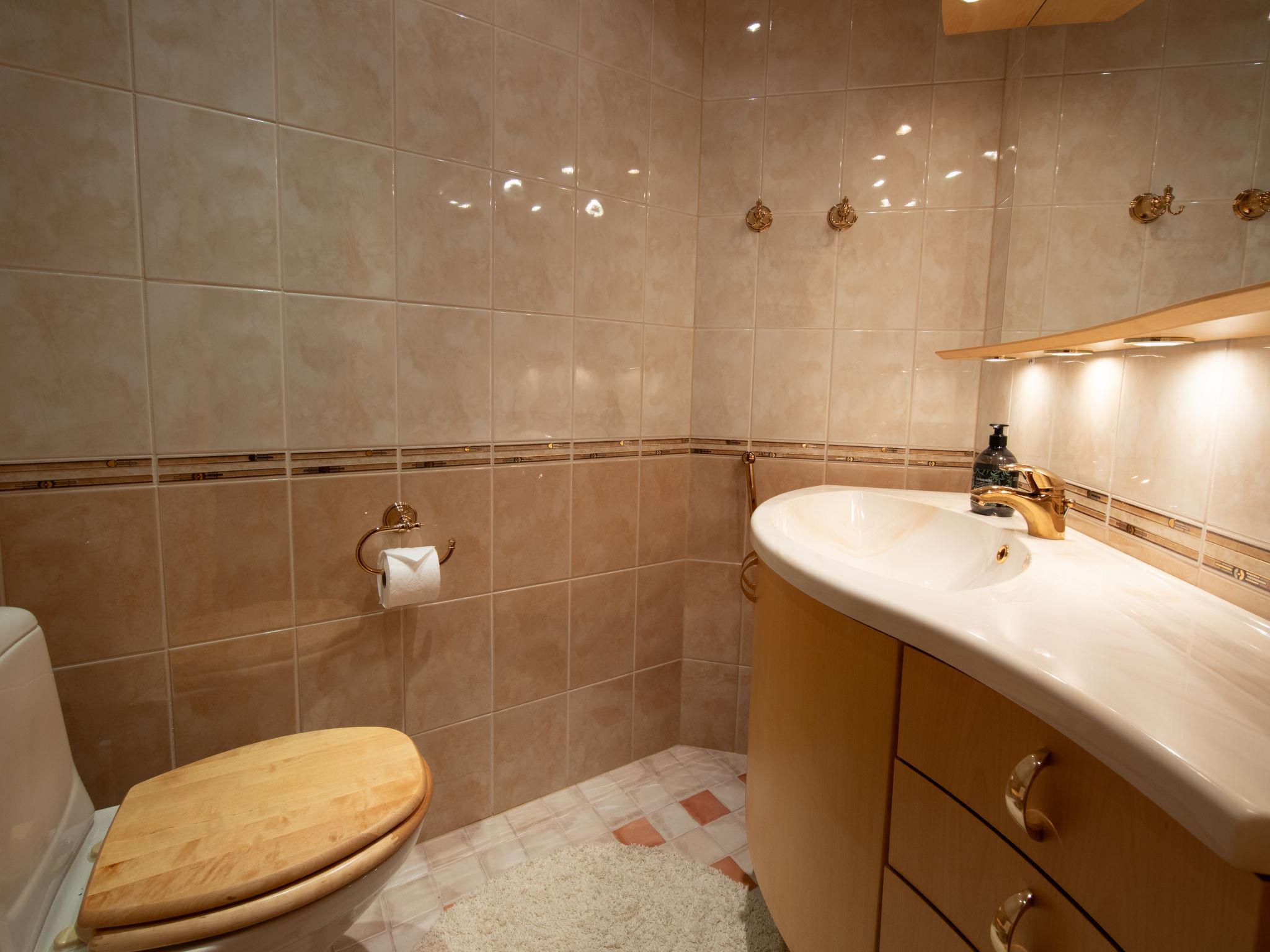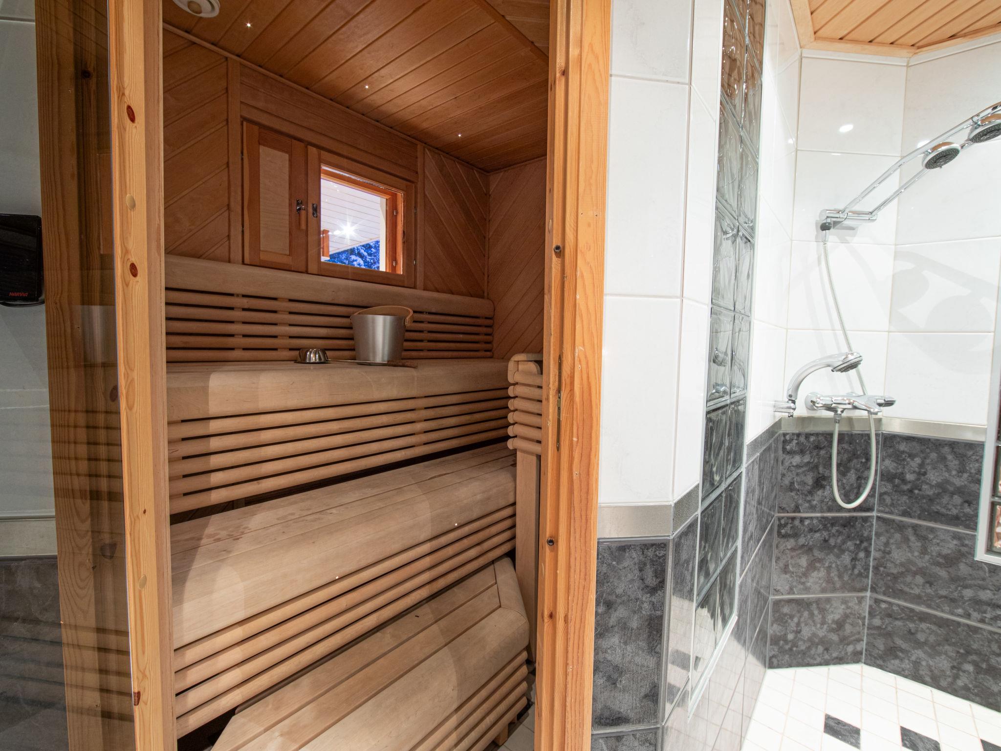 A magnificent sauna area invites you to relax. There is also a separate toilet downstairs.