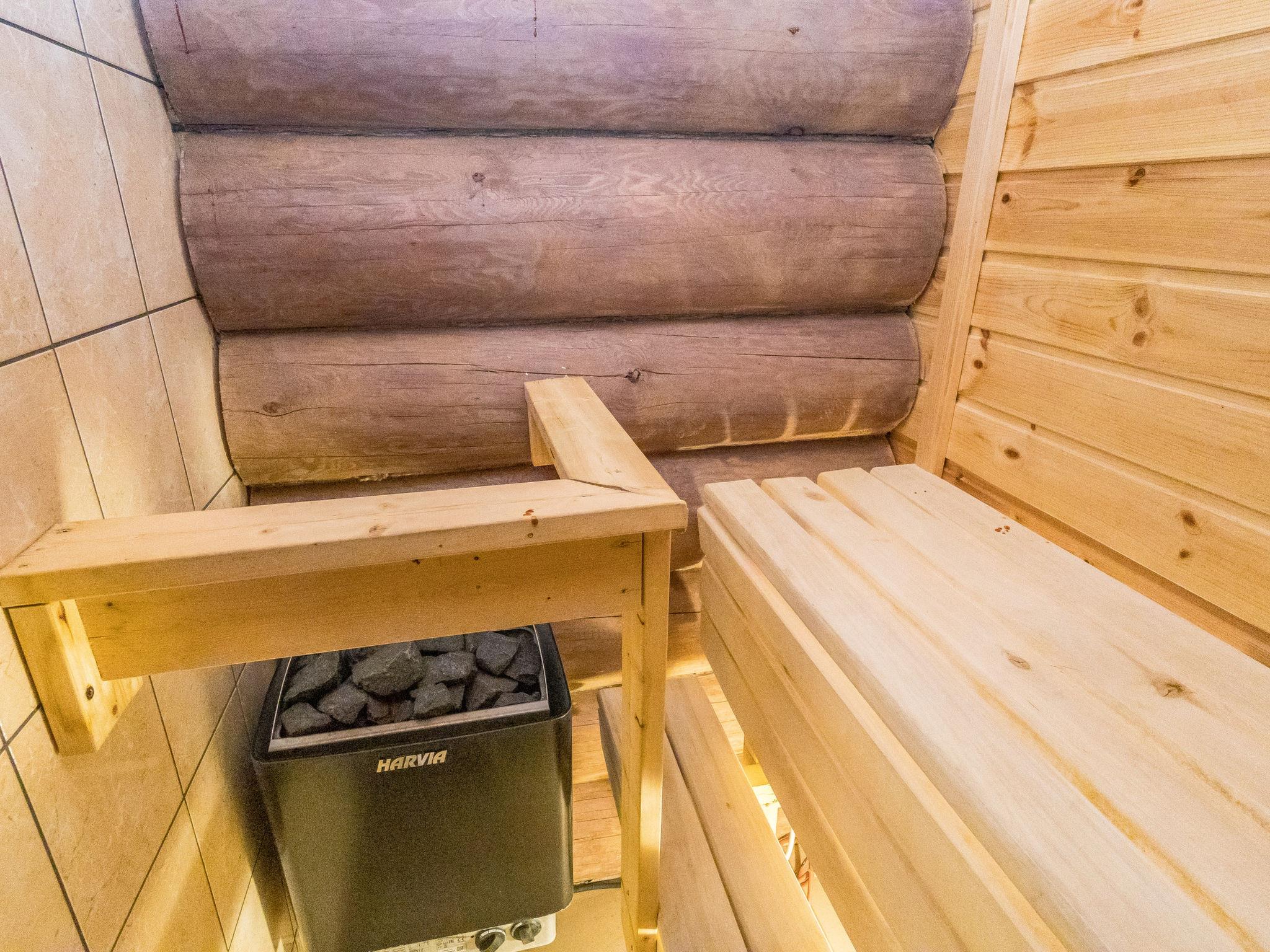 The cabin provides excellent facilities for relaxation year-round, and the location is ideal: the snowmobile trail is just 0.5 km away, and the ski track is only 0.3 km from your door. A spa, shops, and restaurants are all within easy reach, just 3.5 km away.