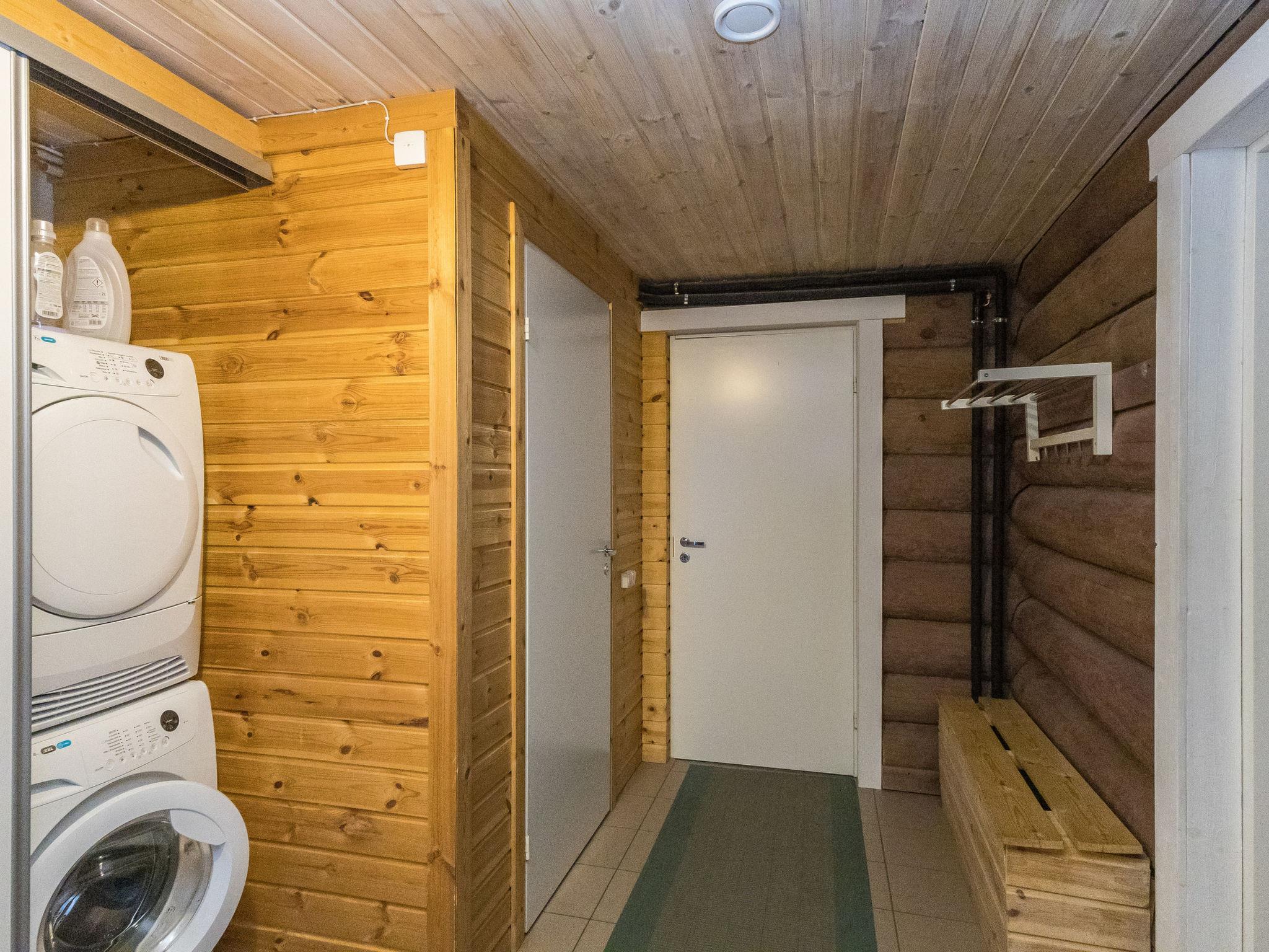 The bright combined kitchen/living room is equipped with everything you need, making cooking and gathering together effortless. A separate toilet, a washroom, and an electric sauna add to the comfort of your stay. Additionally, the entrance area is spacious and practical, featuring a washing machine and dryer, ensuring a smooth experience even for longer stays.