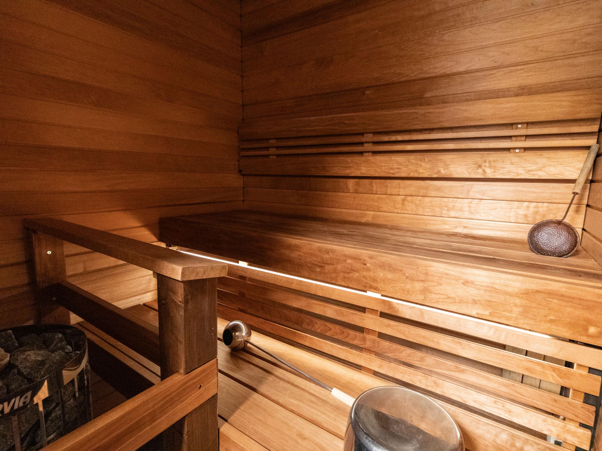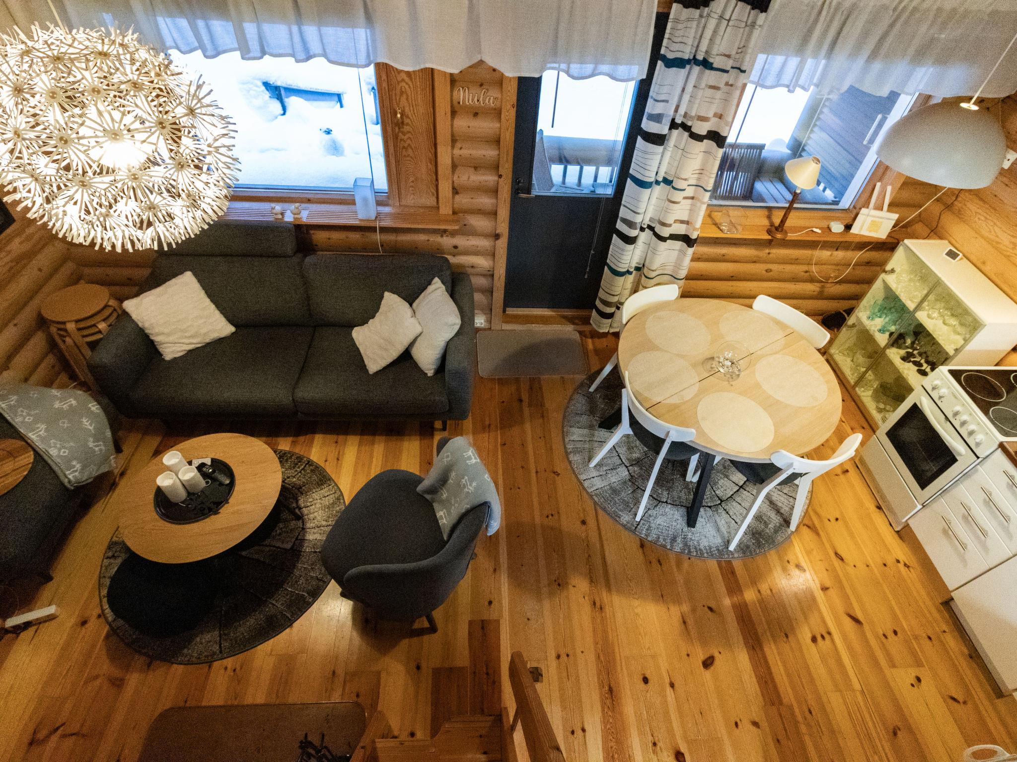 The log apartment, built in 1990, is equipped with a bathroom and an electrically heated sauna. The toilet is located in the bathroom. The living areas provide a comfortable setting for a holiday in all seasons.