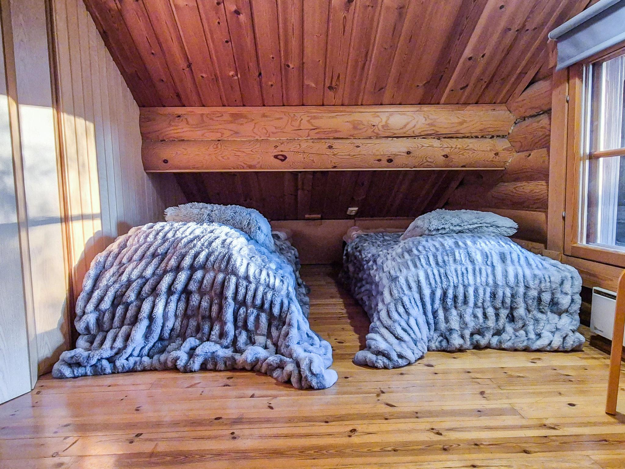 On the ground floor, you’ll find a comfortable bedroom with a 160 cm wide double bed, a spacious living room, and a well-equipped kitchen. For relaxation after an active day, the apartment includes an electric sauna and a washroom.