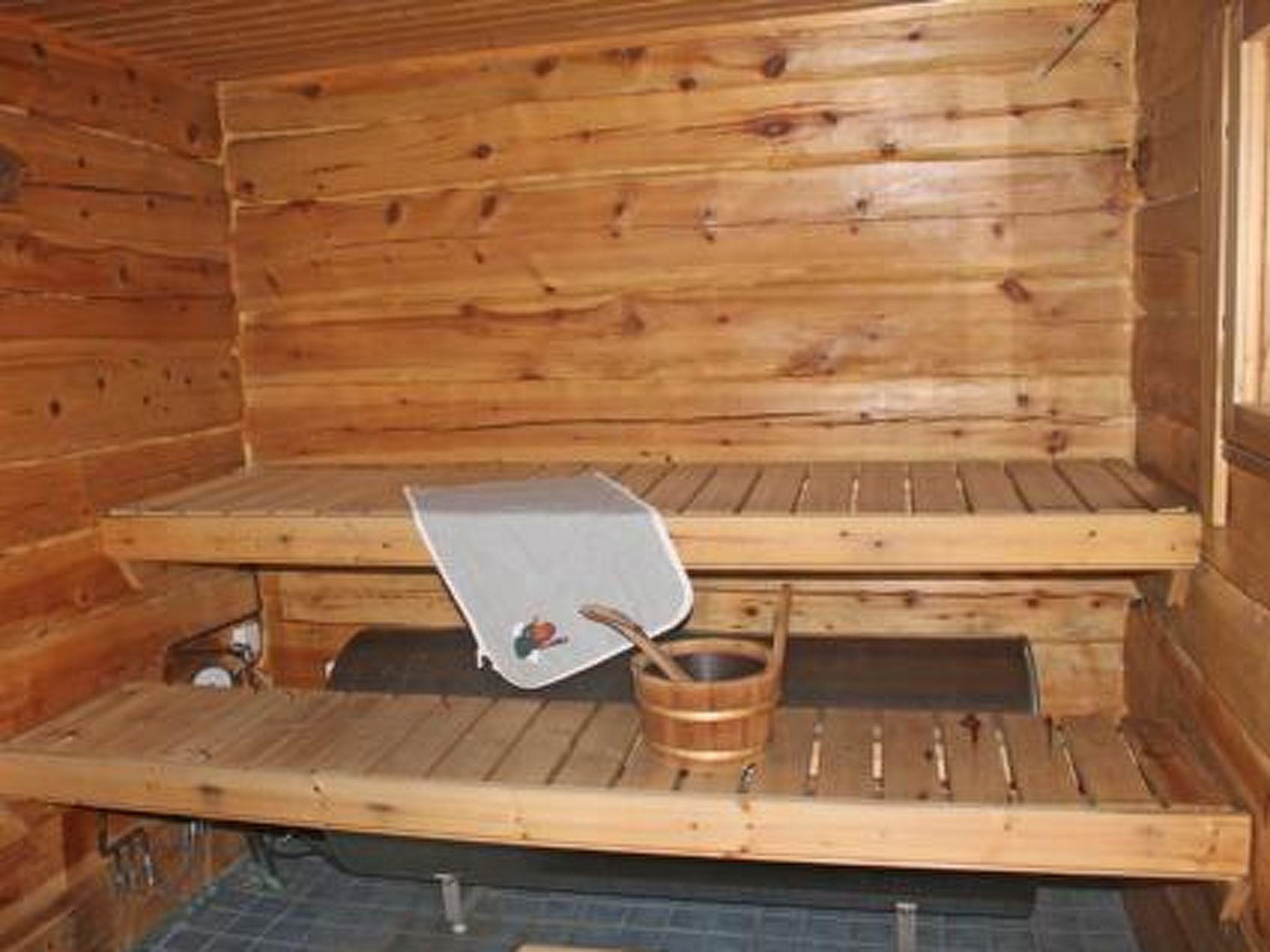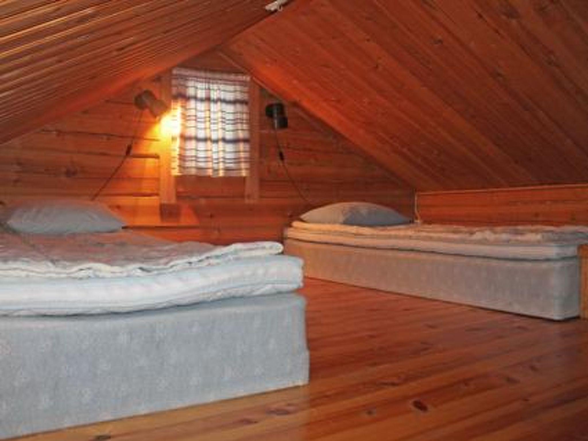 Log cabin 1992, kitchenette, bedroom with 2 beds, sleeping loft (10 m²) with 2 beds, sauna, washroom/dressing room, open veranda.