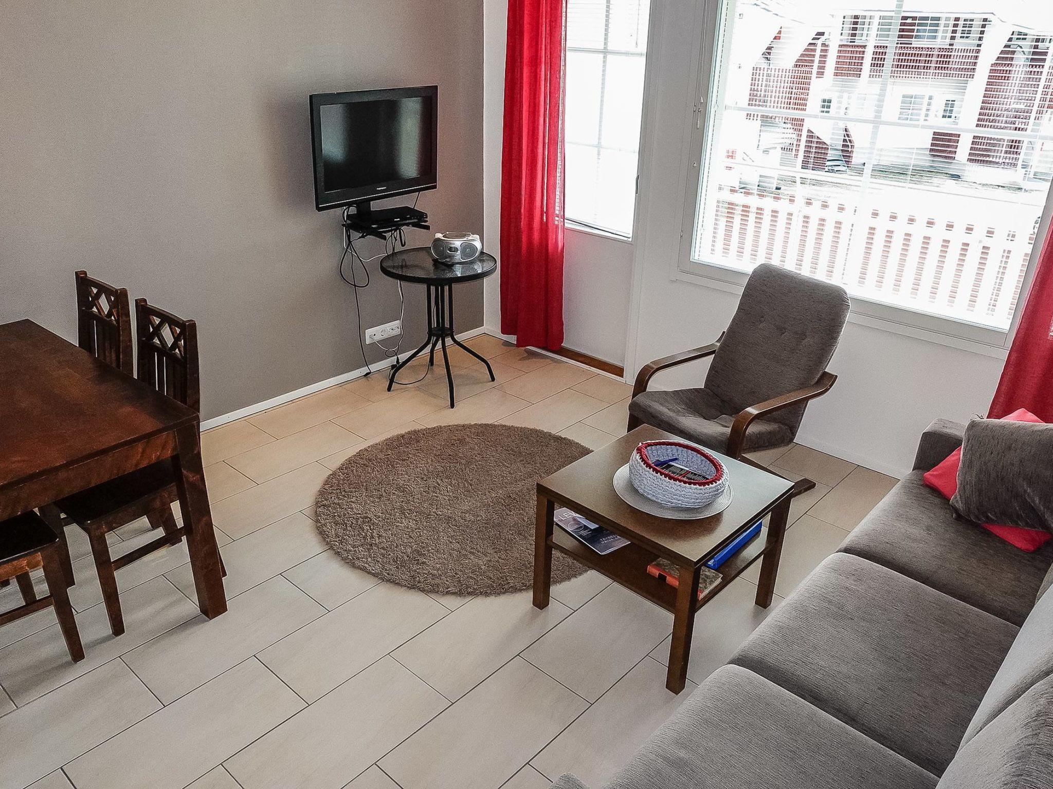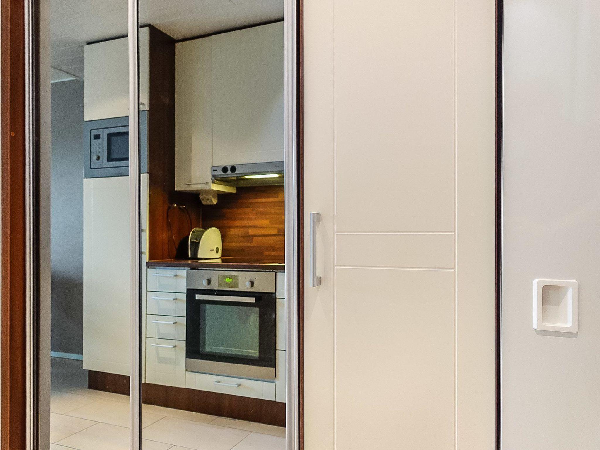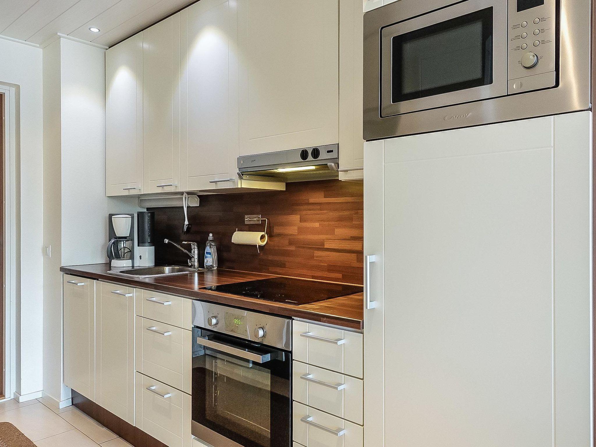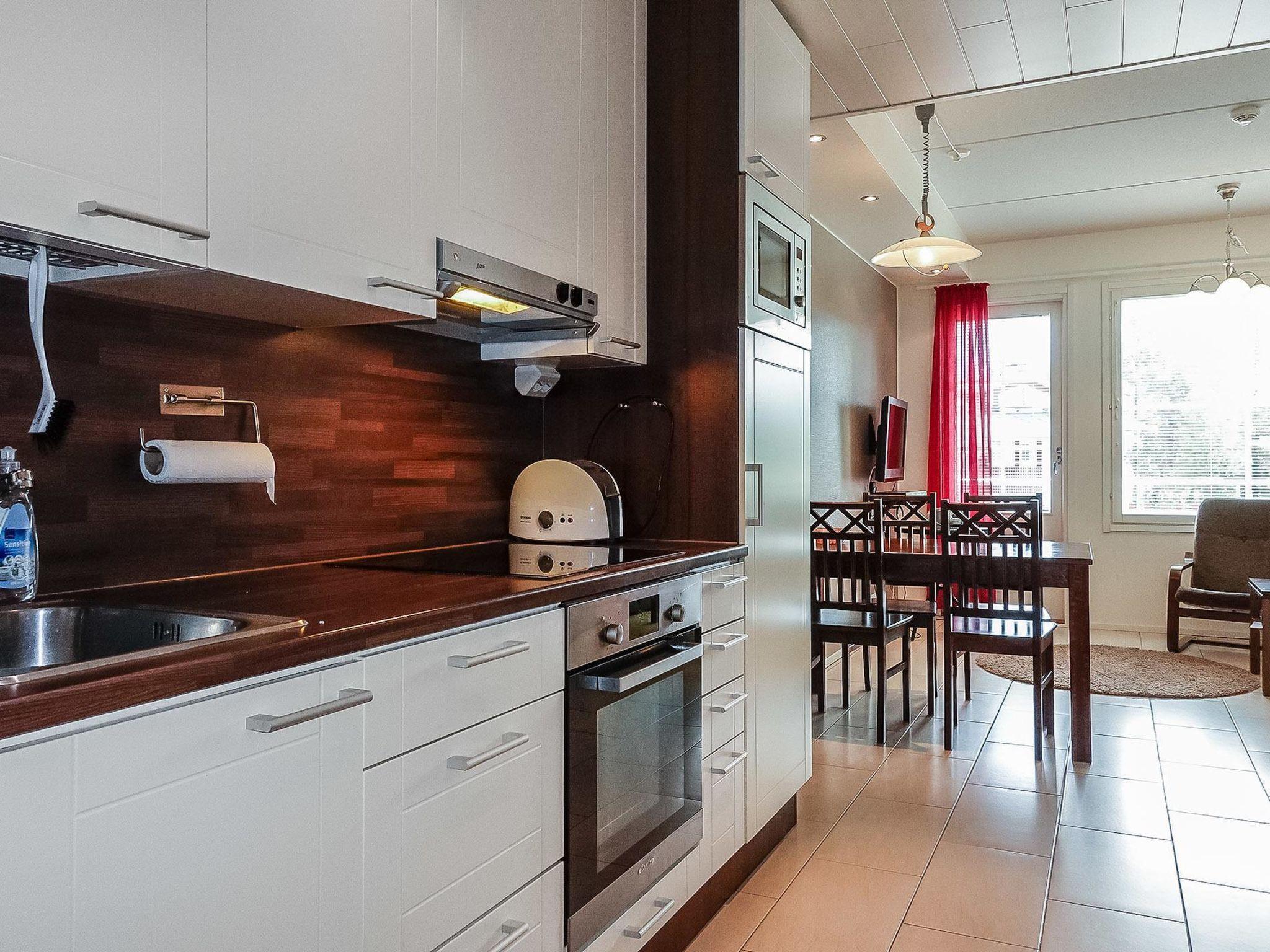 Living room/kitchen with convertible sofa/bed, 1 bedroom with 2 beds, sauna (electric stove), washroom/WC. House also has washing machine, spin drier, heated ski care room; apartment has its own lockable storage locker.